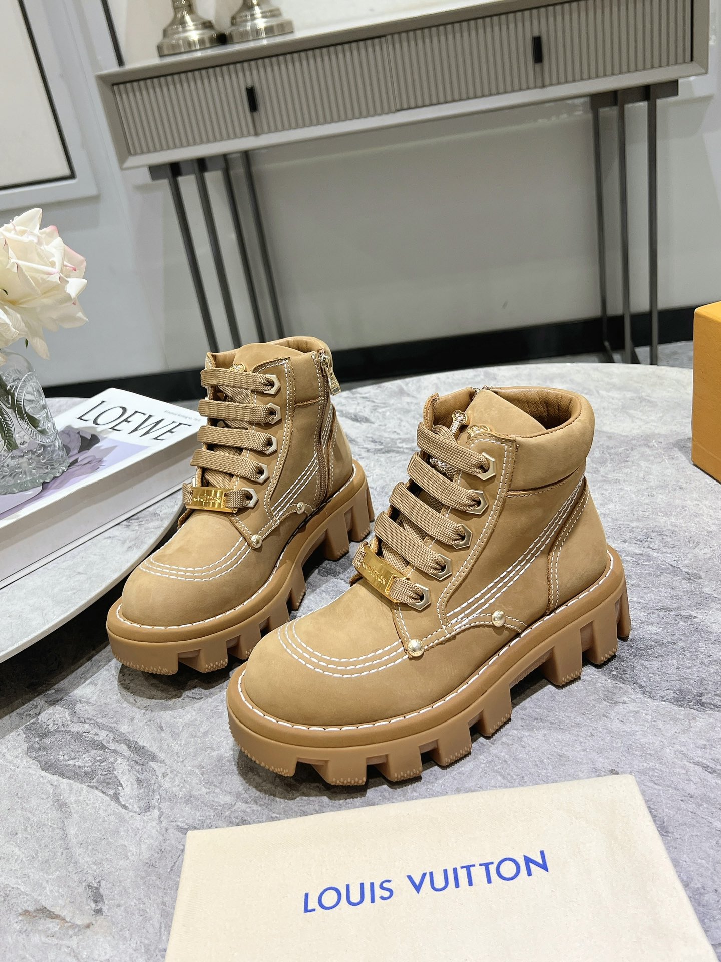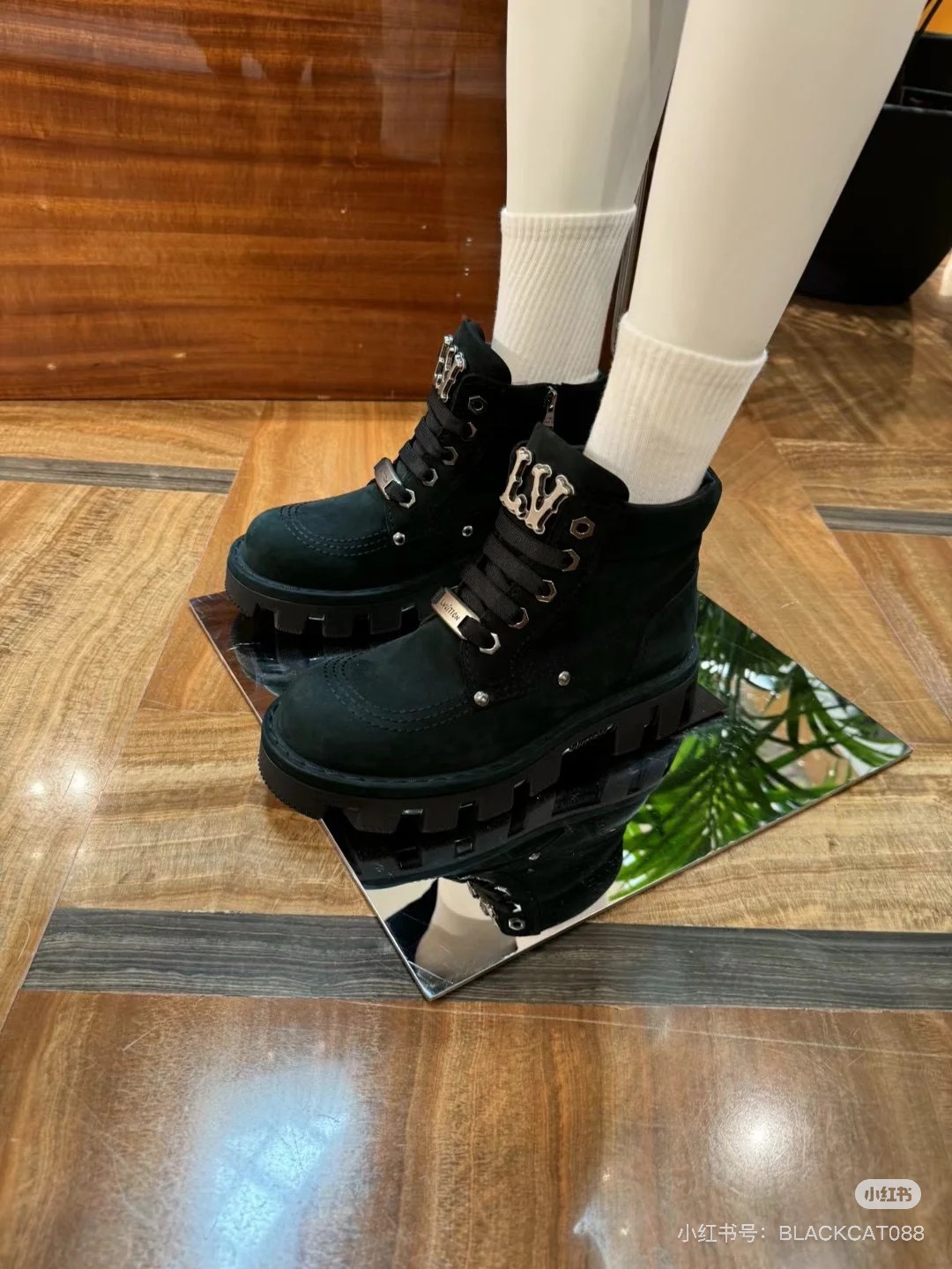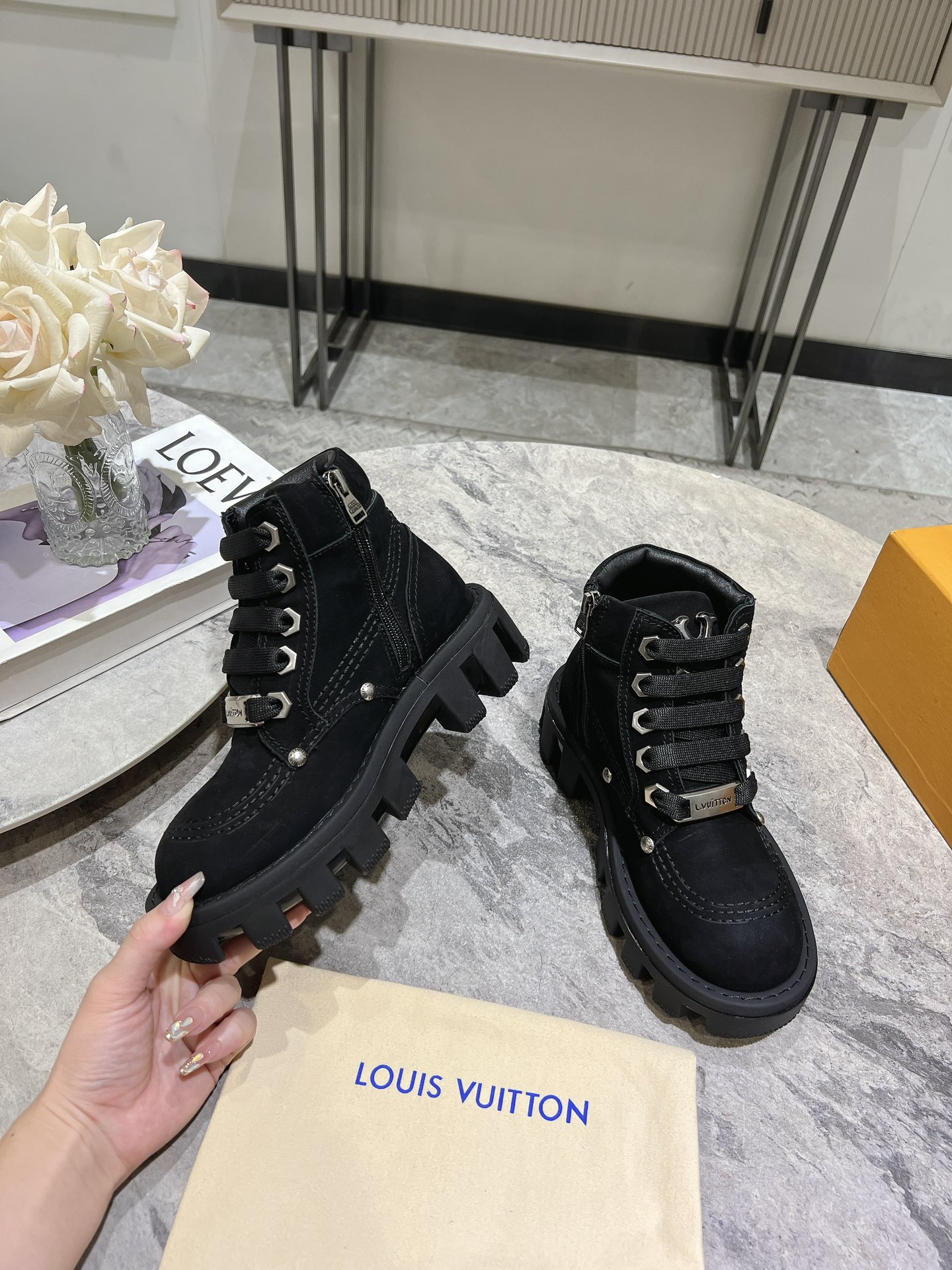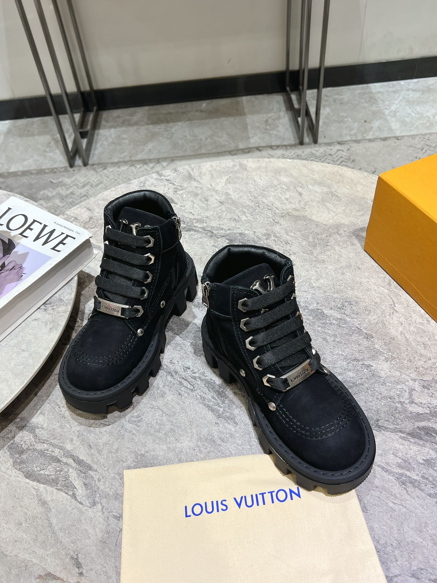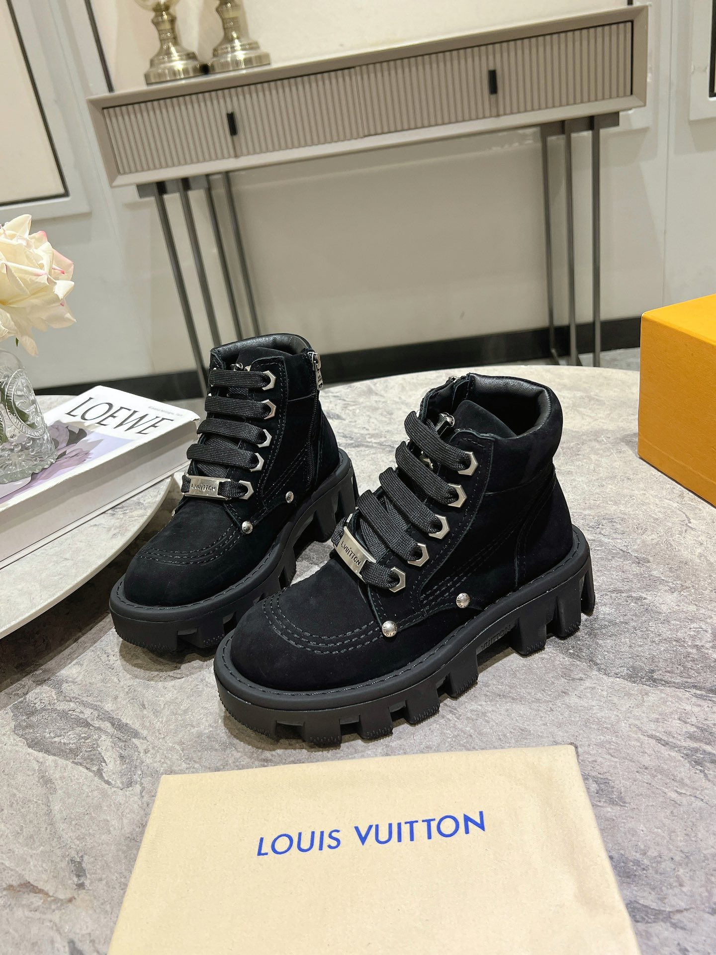 NIGO Louis Vuitton Men's and Women's Solid Color Suede Leather Lace Up Short Martin Boots Shoes #nigo72847