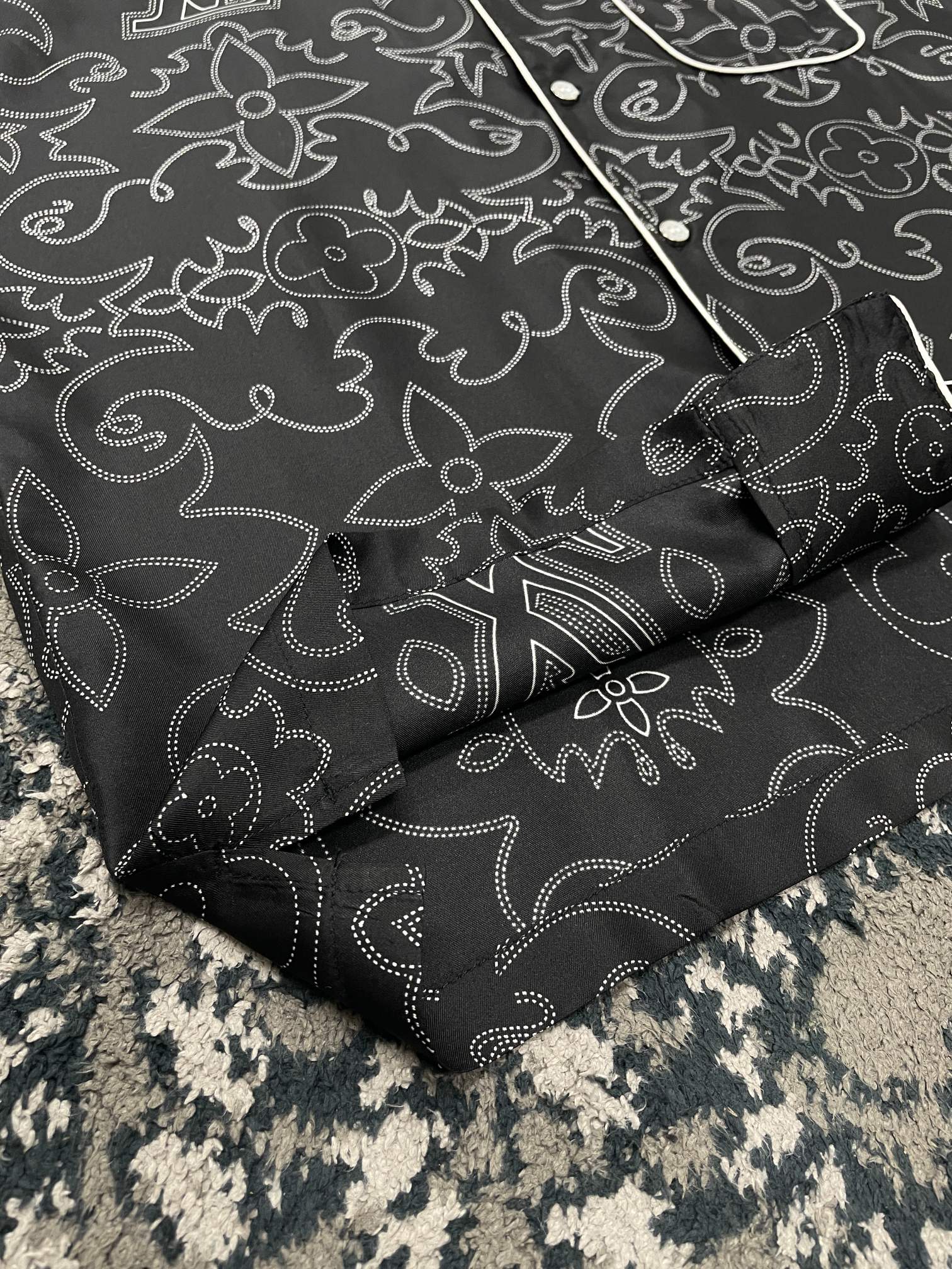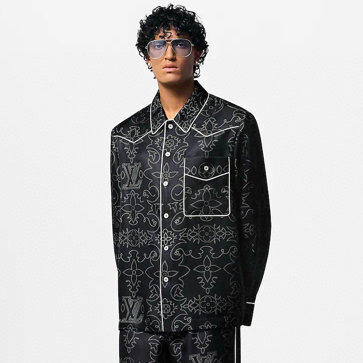 NIGO Louis Vuitton Men's And Women's Spring Summer Autumn And Winter Fashion Casual V-Neck Single-Button Printed Silk Pajamas Long Sleeve Shirt