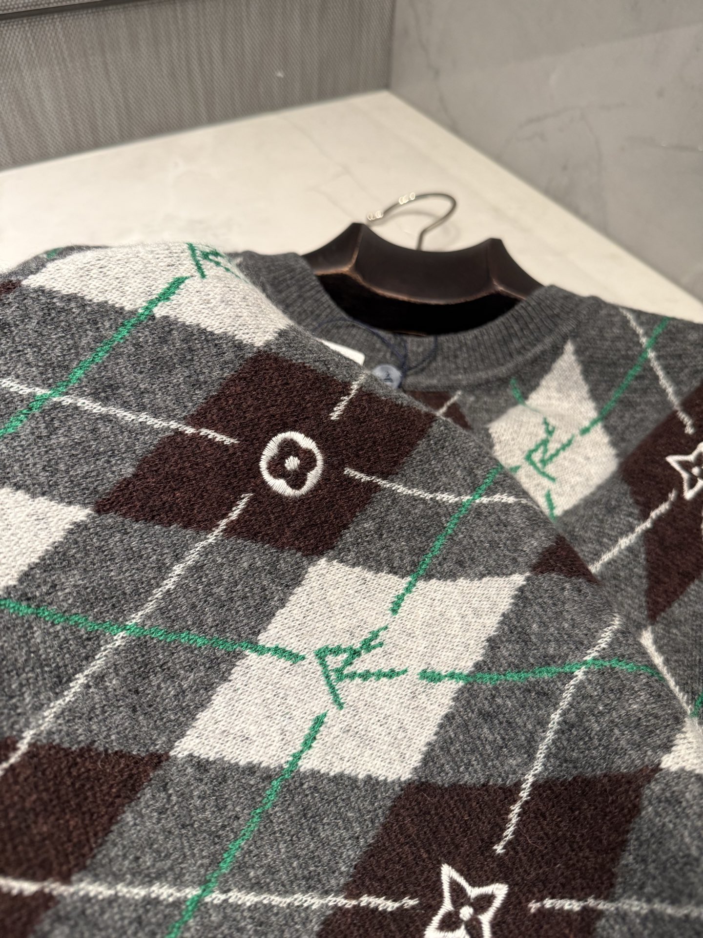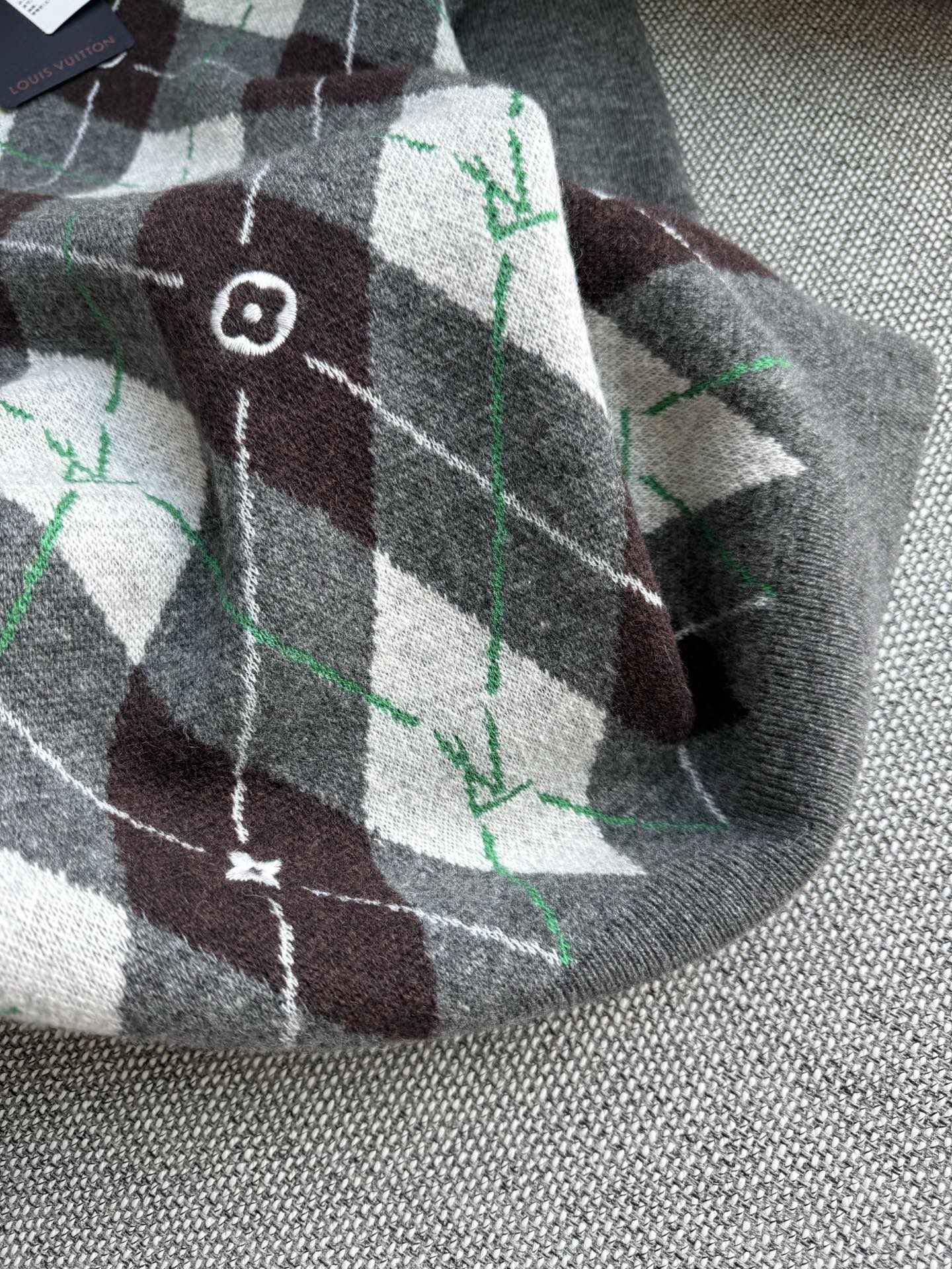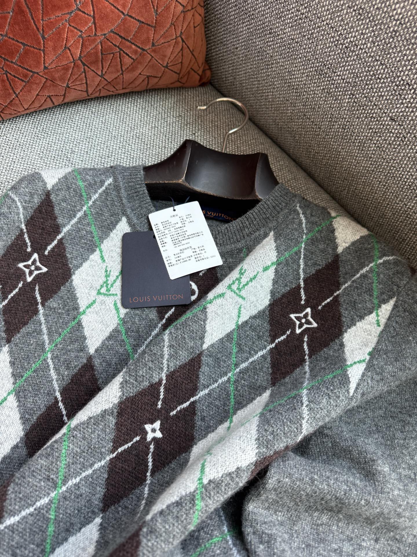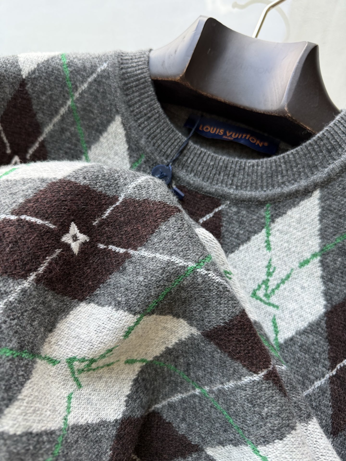 NIGO Louis Vuitton Men's Argyle Crew Neck Sweater Spring/Fall Checkered Embroidered Wool Solid Color Long Sleeve Sweater #nigo81564