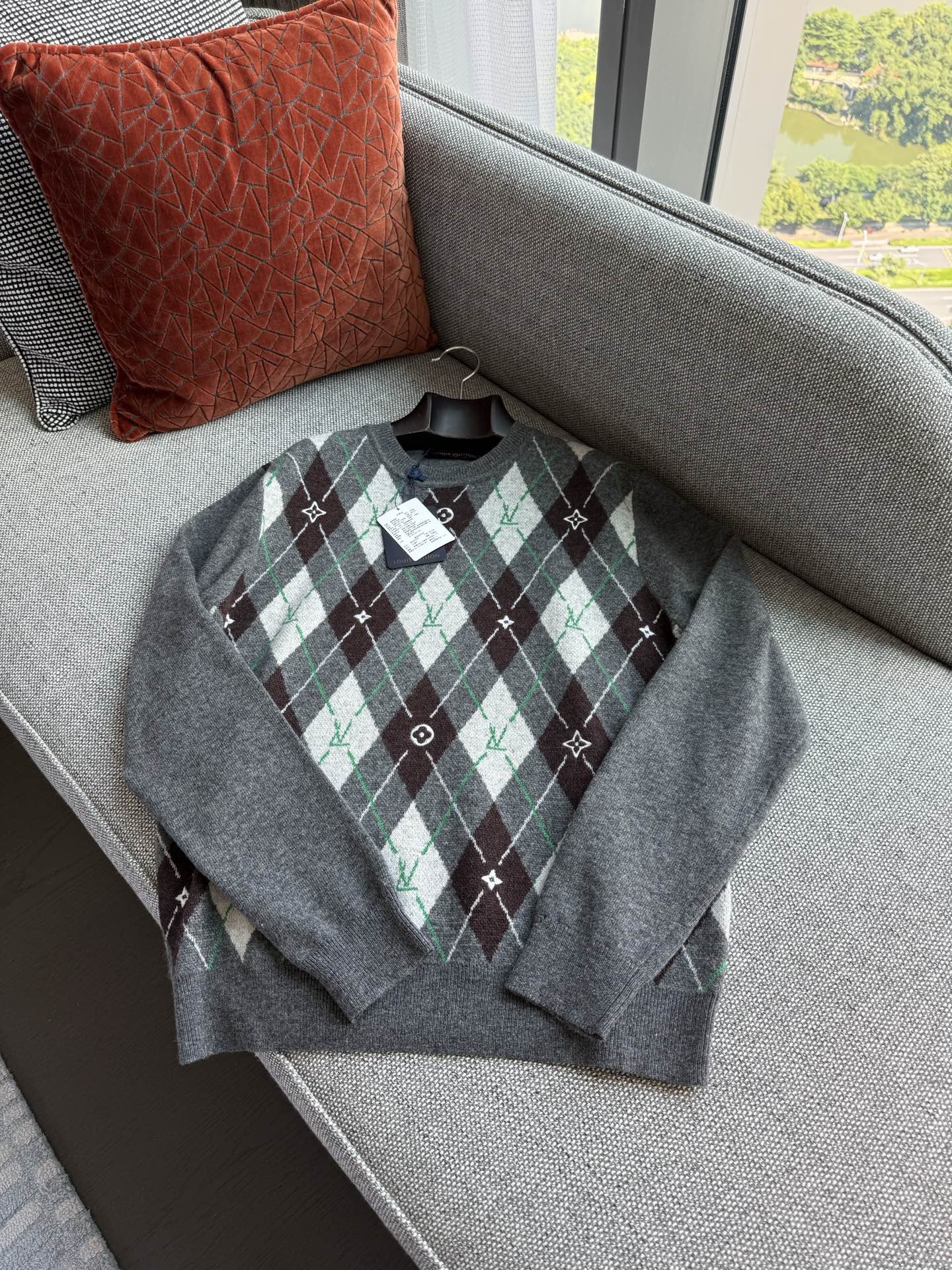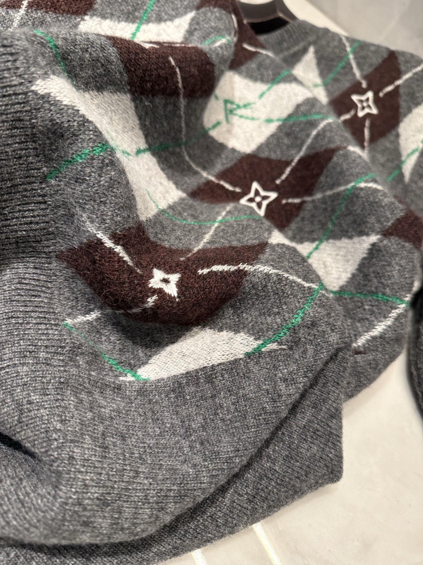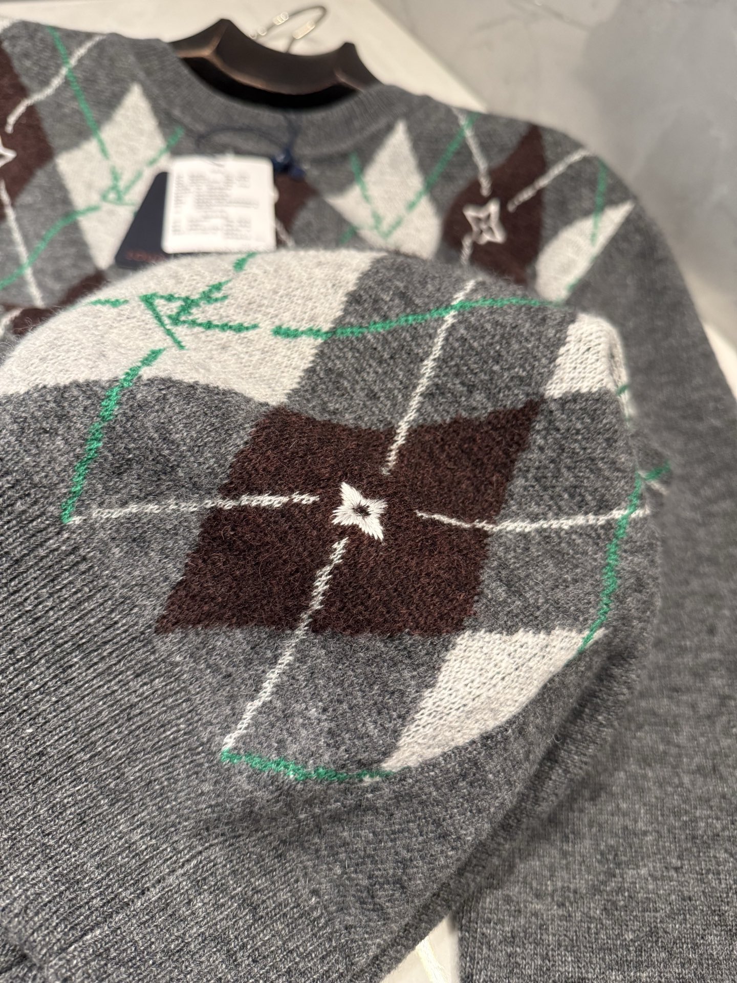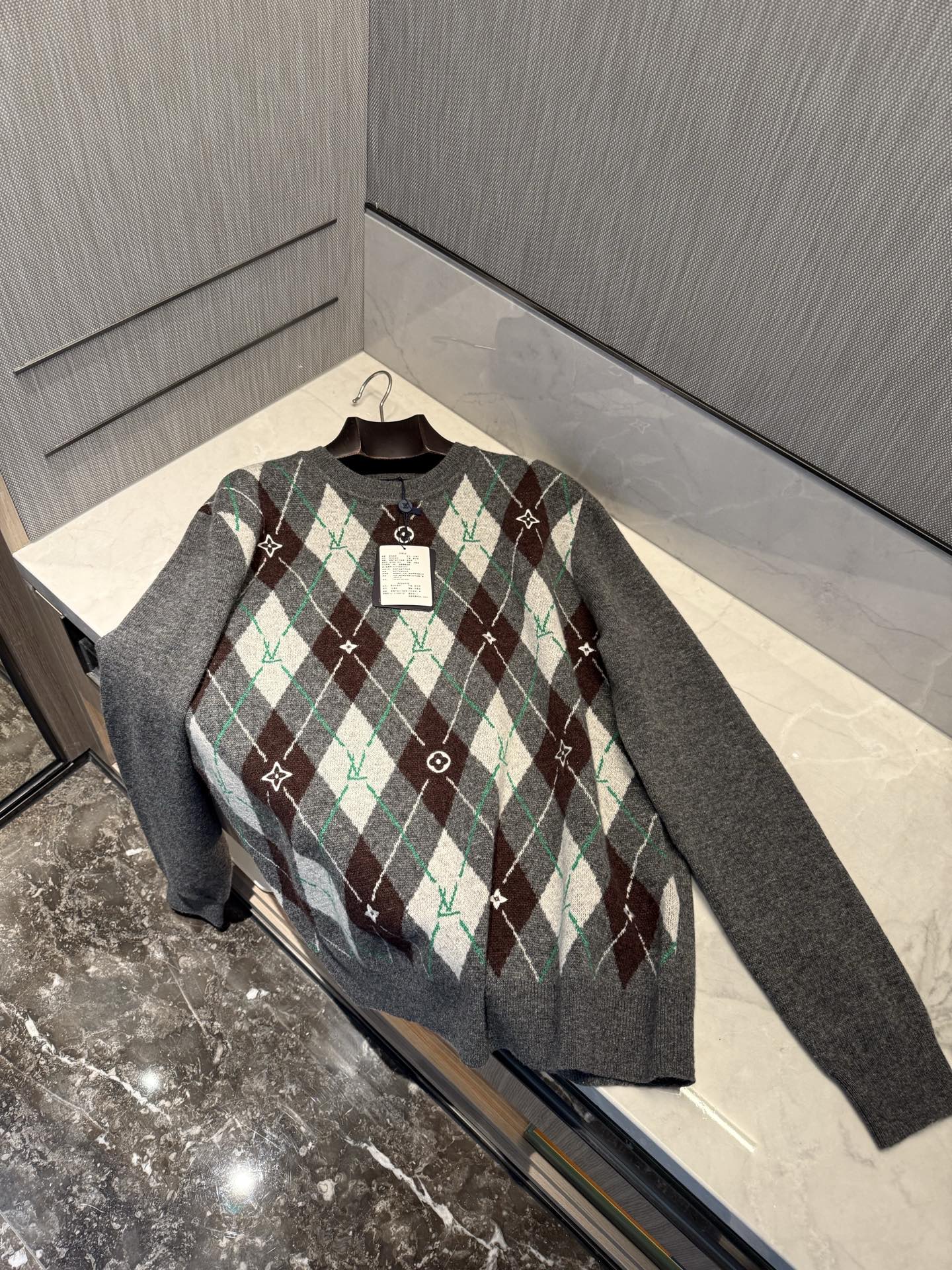 NIGO Louis Vuitton Men's Argyle Crew Neck Sweater Spring/Fall Checkered Embroidered Wool Solid Color Long Sleeve Sweater #nigo81564