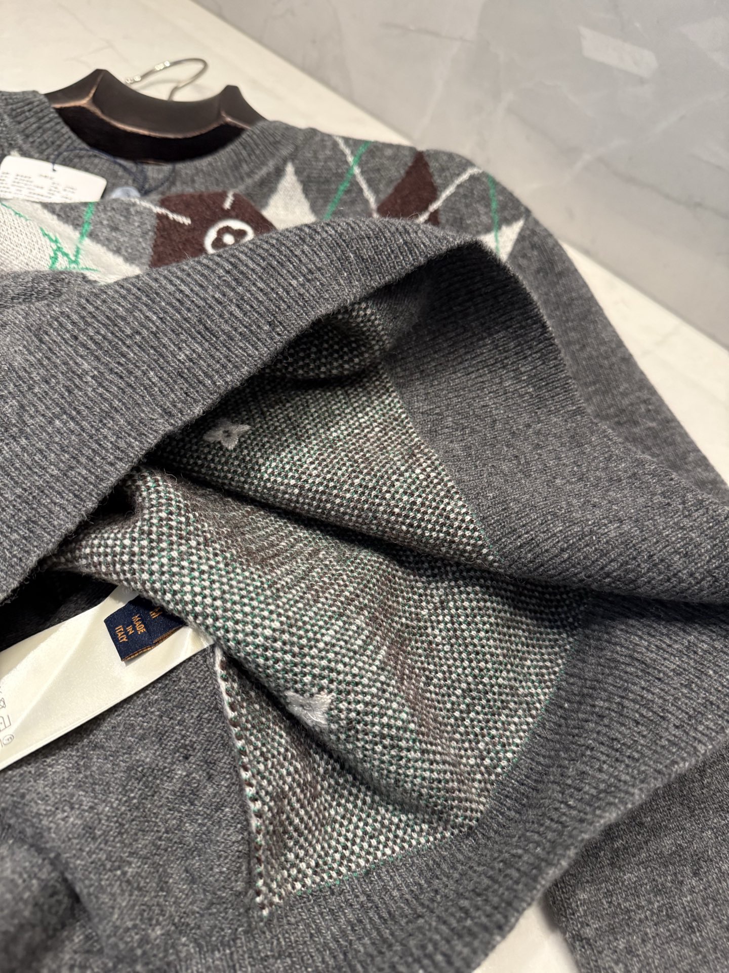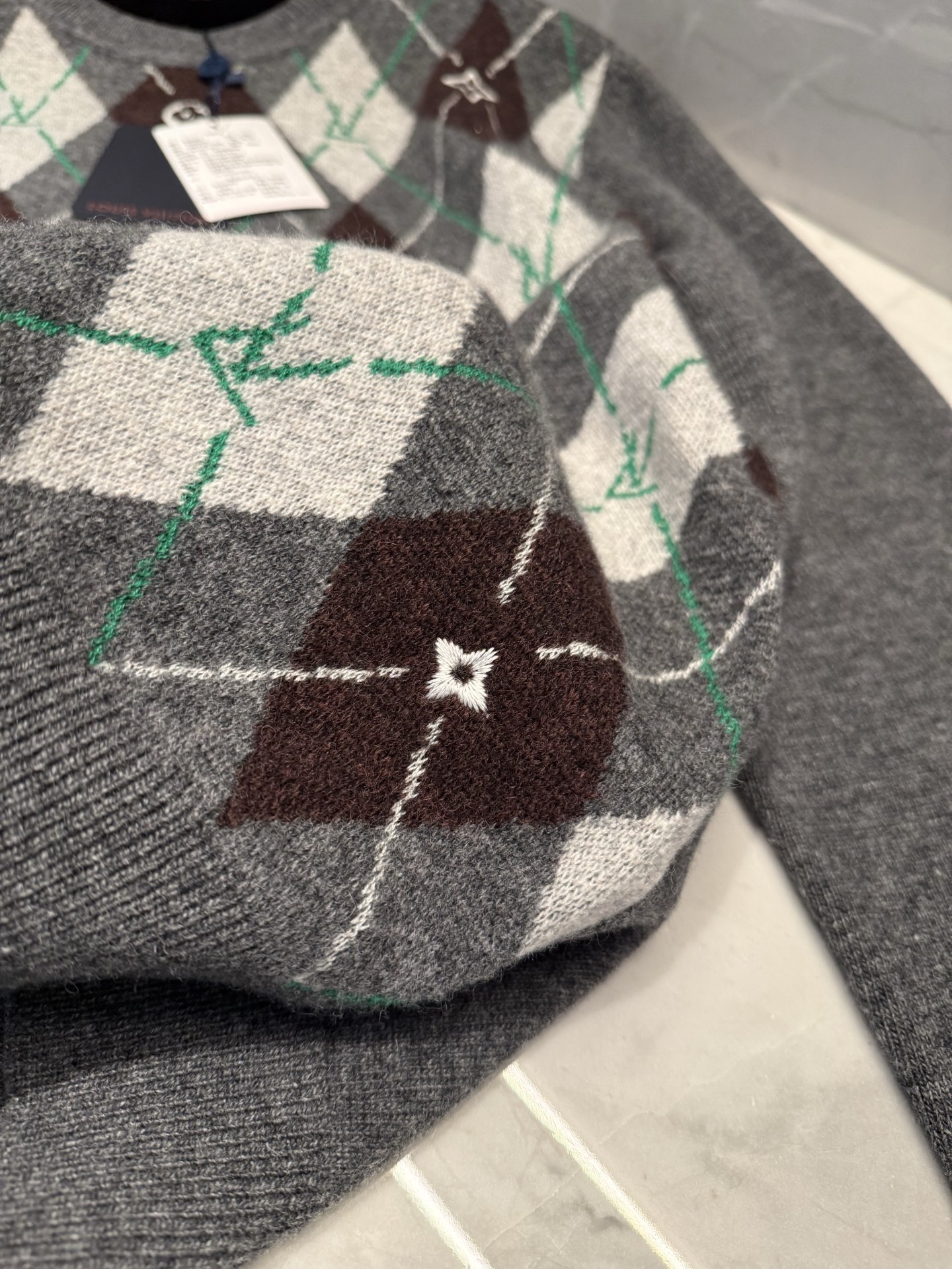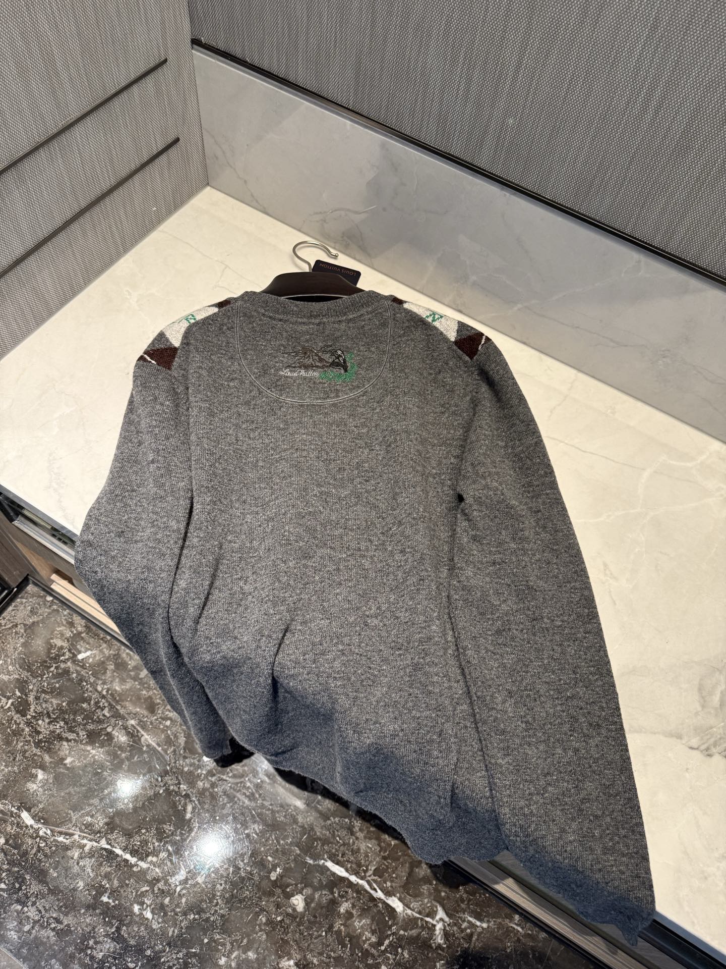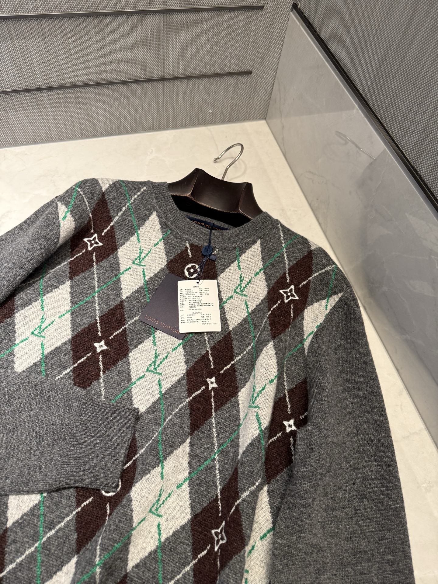 NIGO Louis Vuitton Men's Argyle Crew Neck Sweater Spring/Fall Checkered Embroidered Wool Solid Color Long Sleeve Sweater #nigo81564