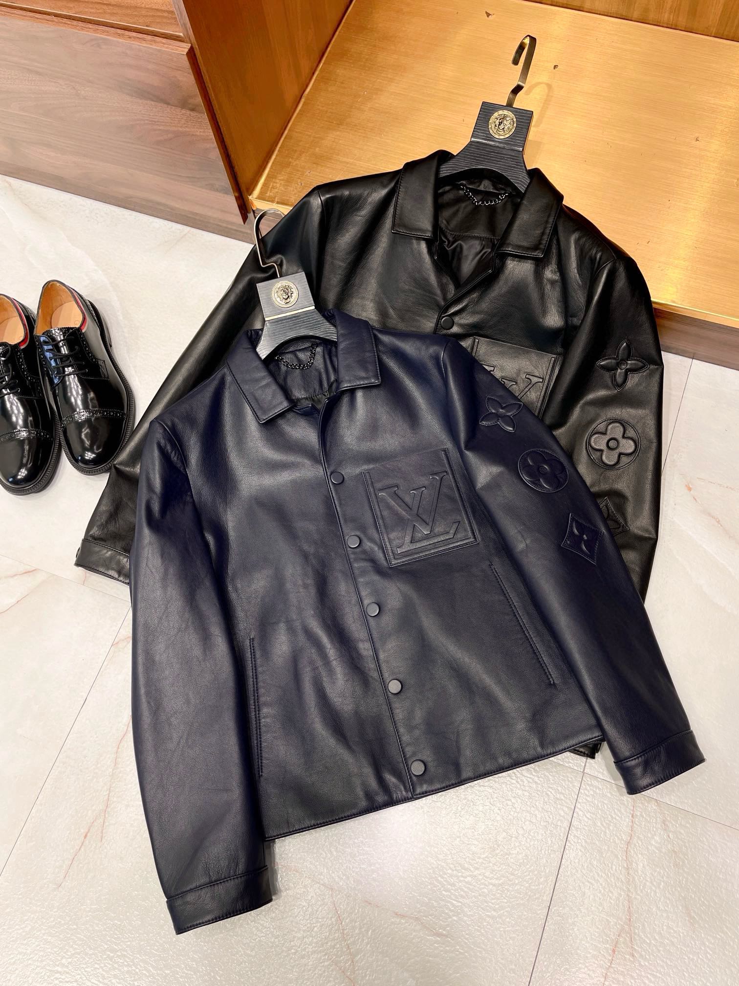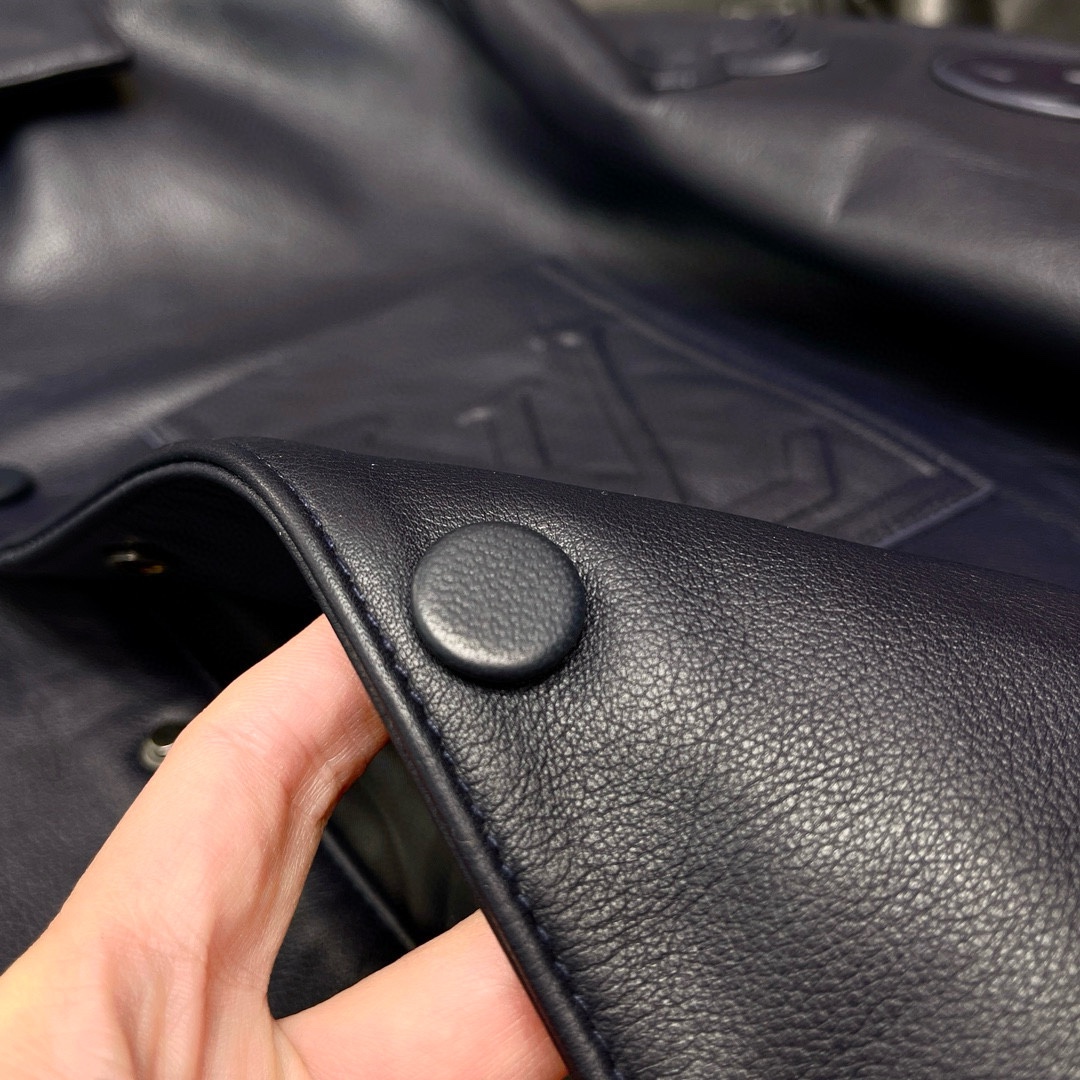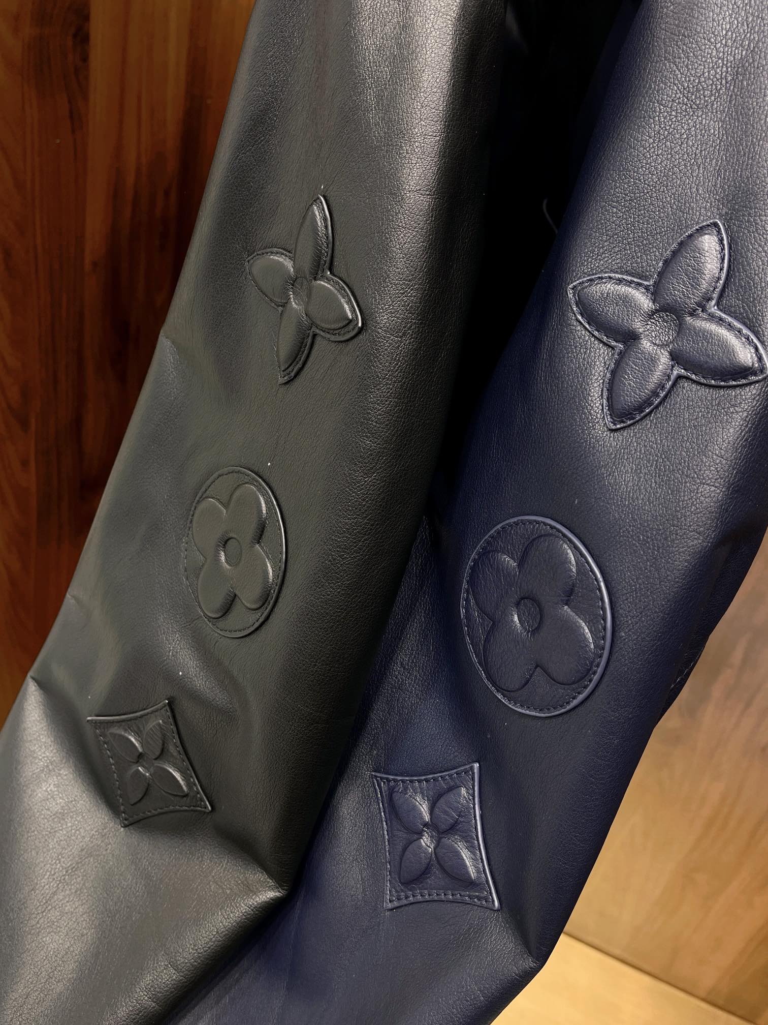 NIGO Louis Vuitton Men's Autumn and Winter Solid Color Embossed Leather Monogrammed Single Breasted Long Sleeve Jacket #nigo74224