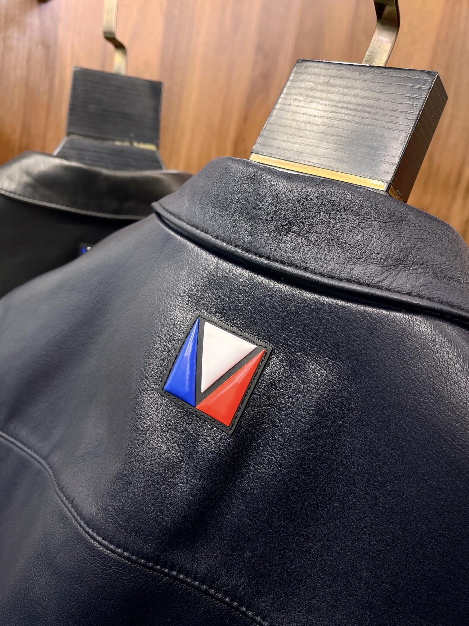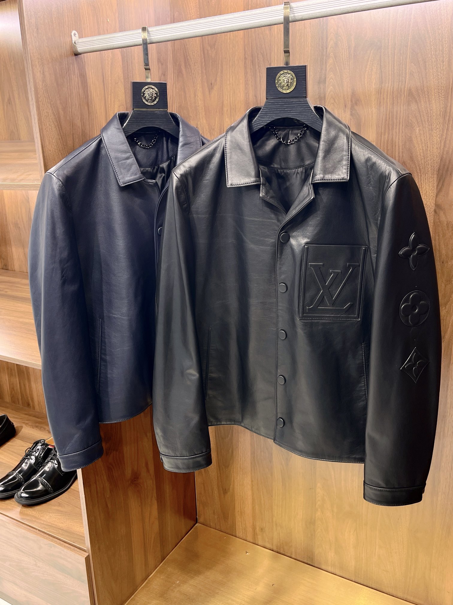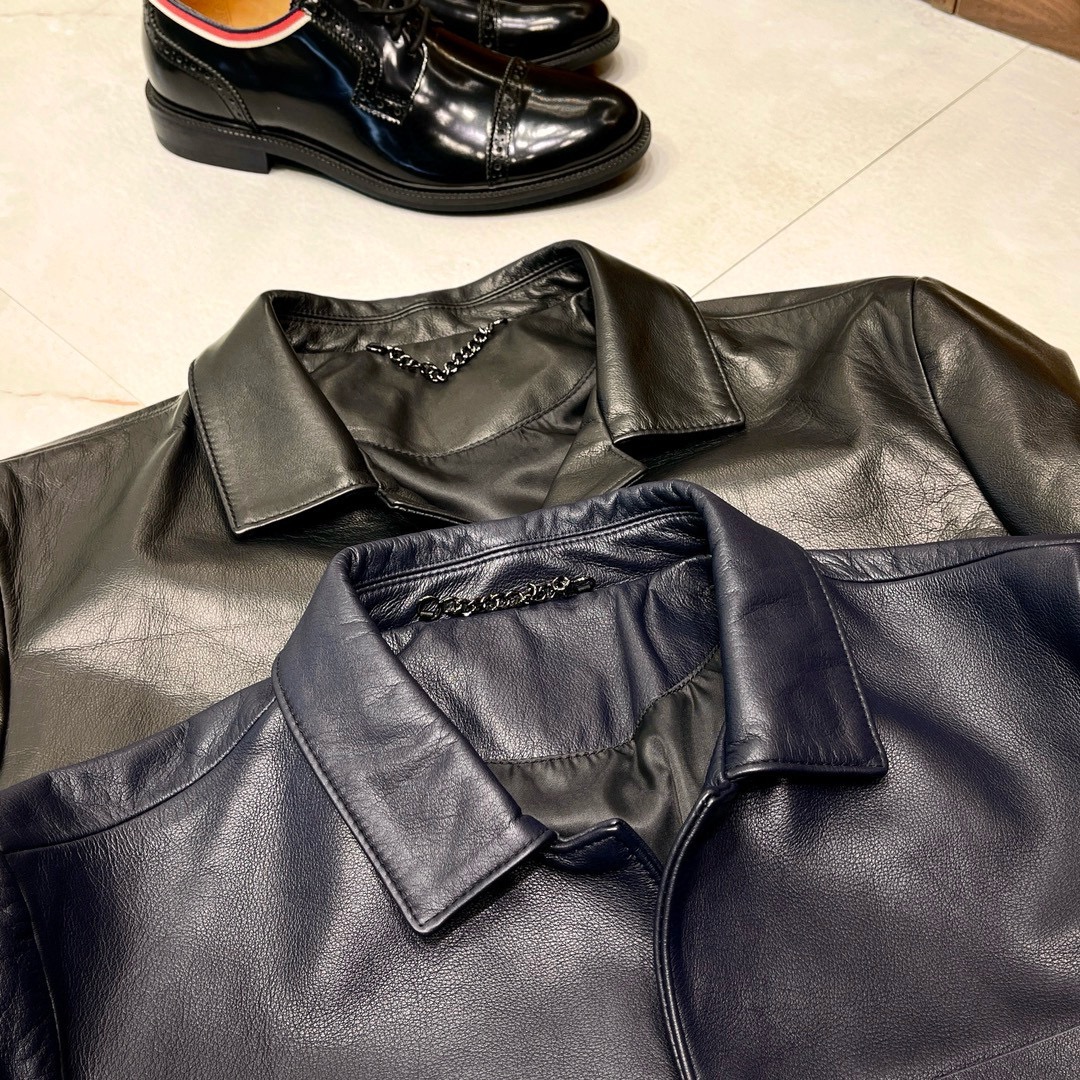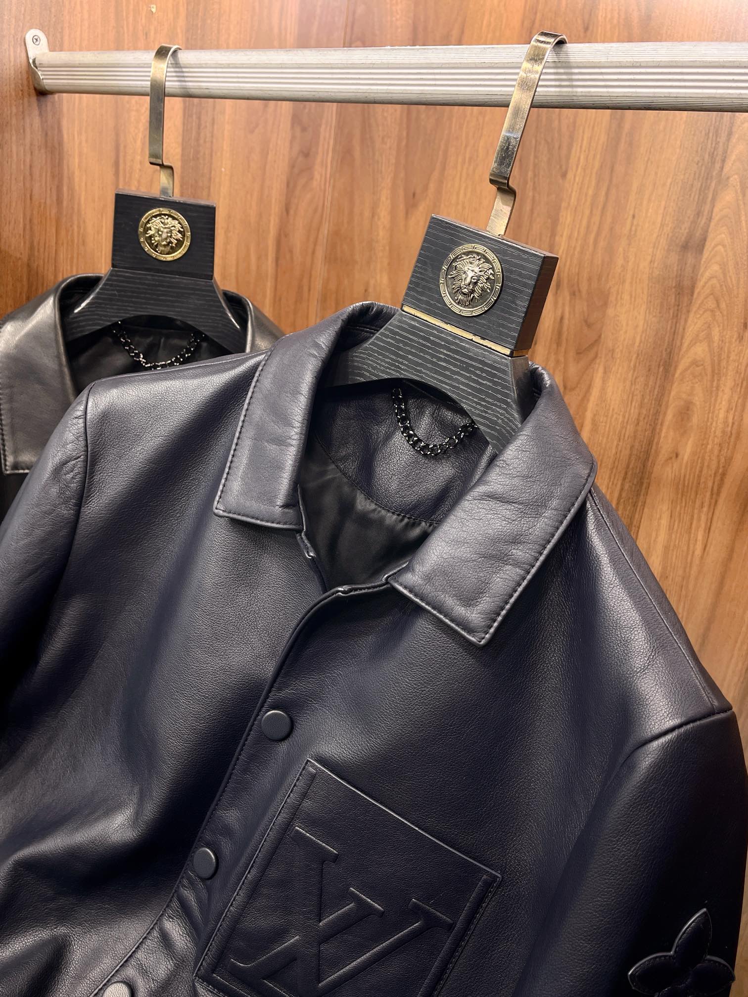 NIGO Louis Vuitton Men's Autumn and Winter Solid Color Embossed Leather Monogrammed Single Breasted Long Sleeve Jacket #nigo74224