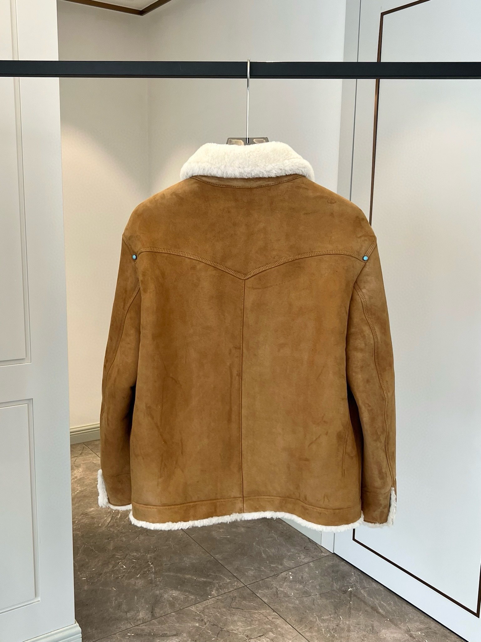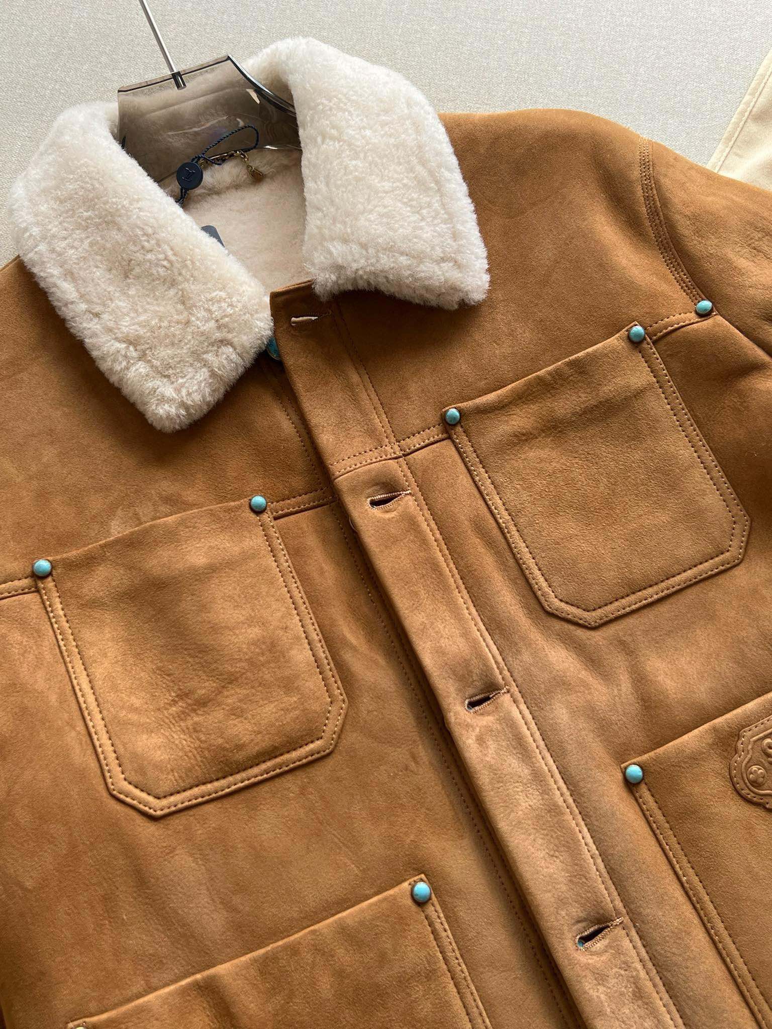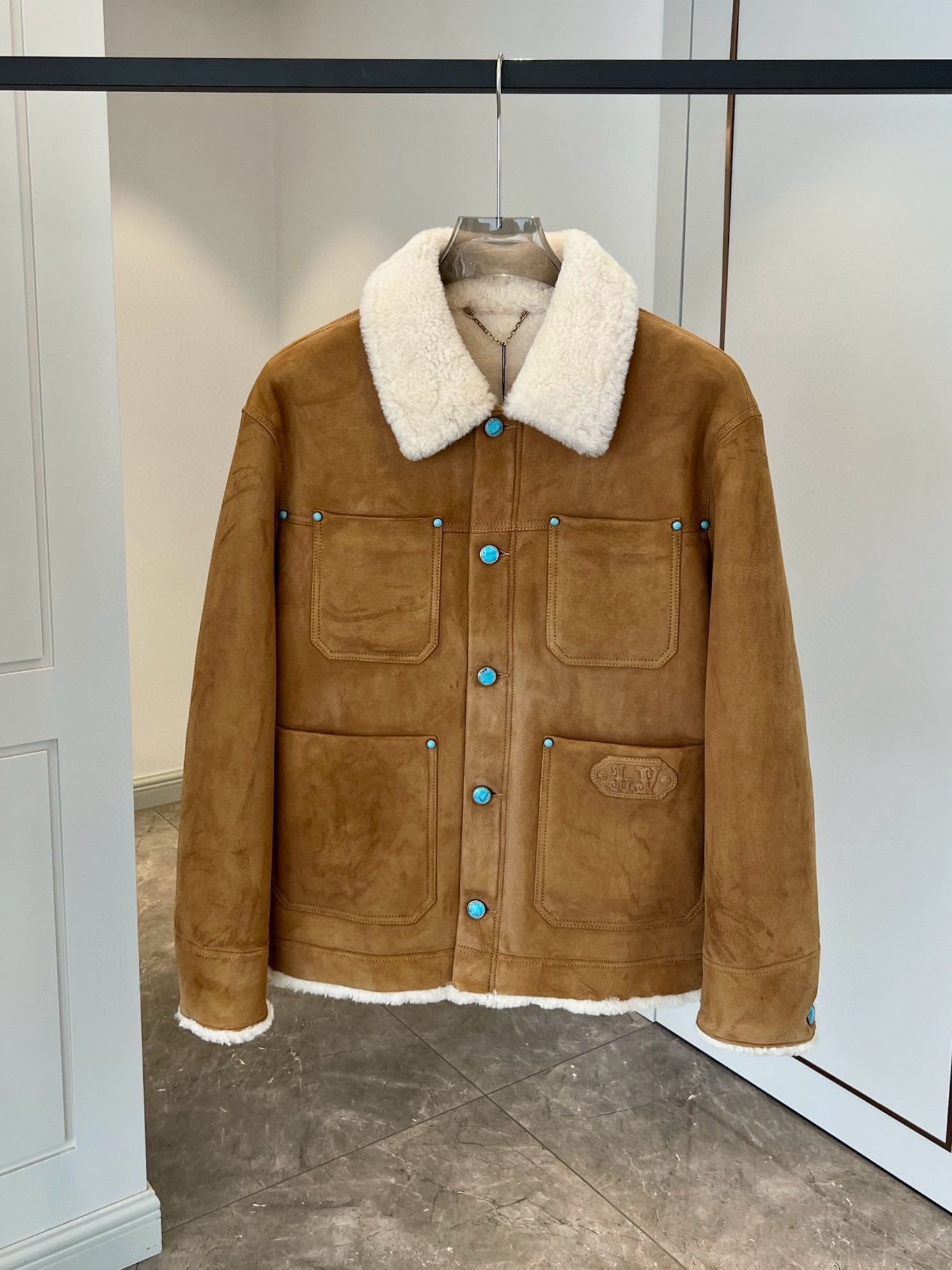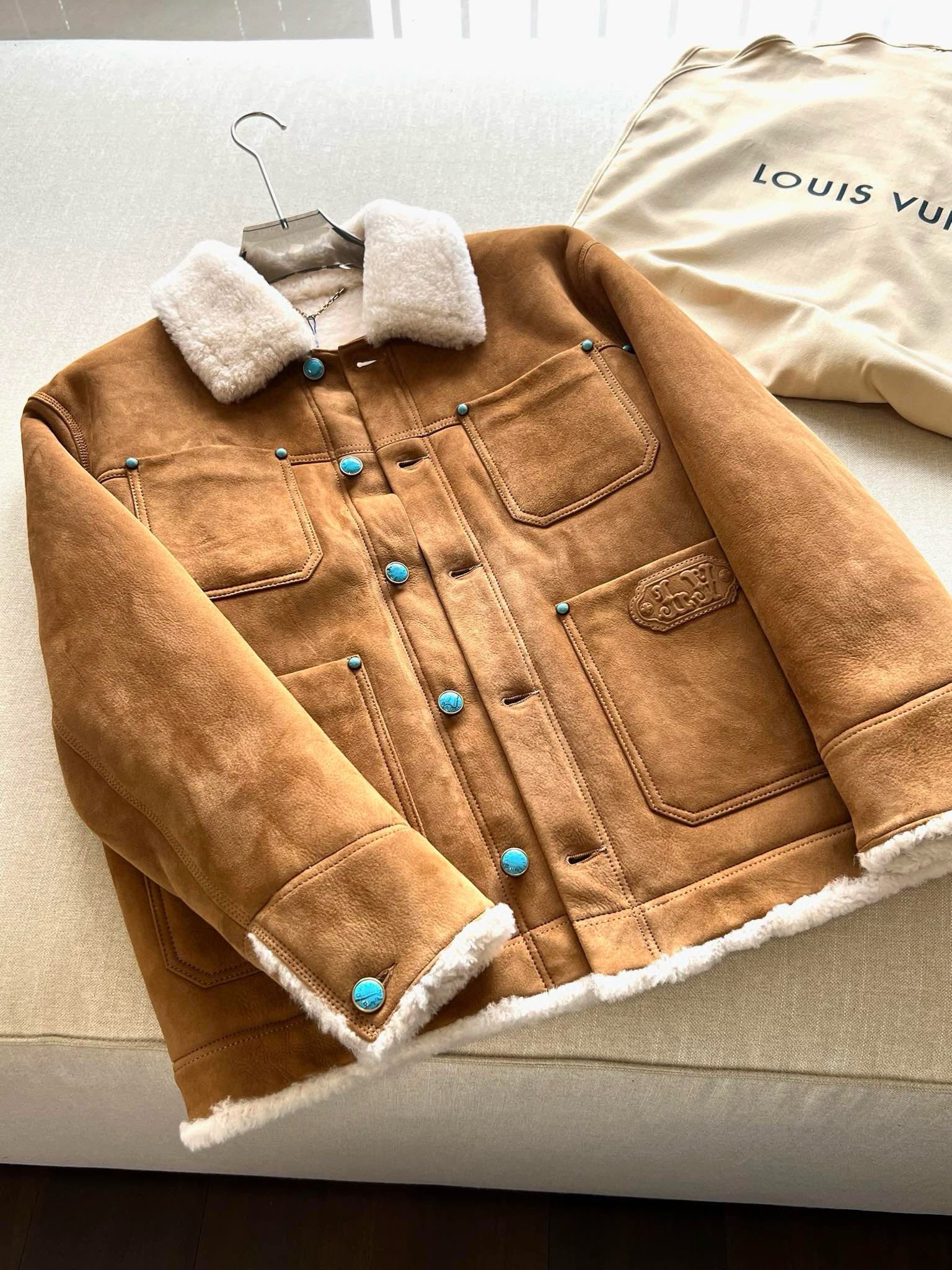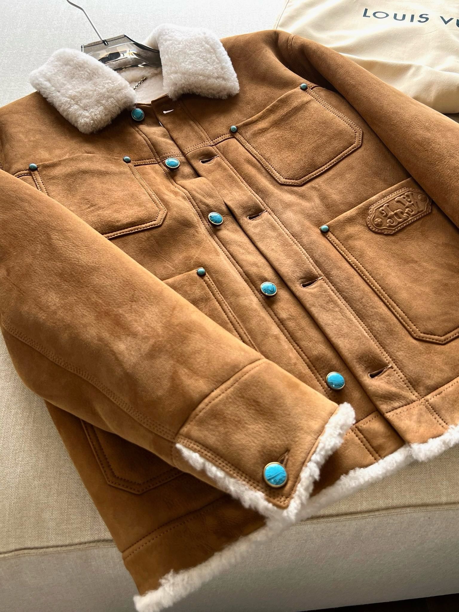 NIGO Louis Vuitton Men's Autumn and Winter Solid Color Lapel Single Breasted Sheep Leather Long Sleeve Jacket #nigo74261