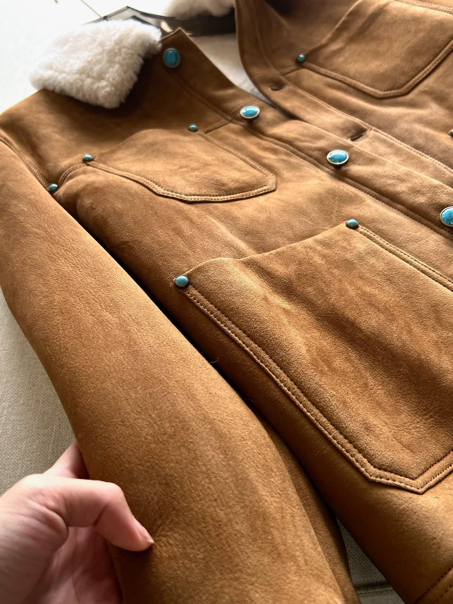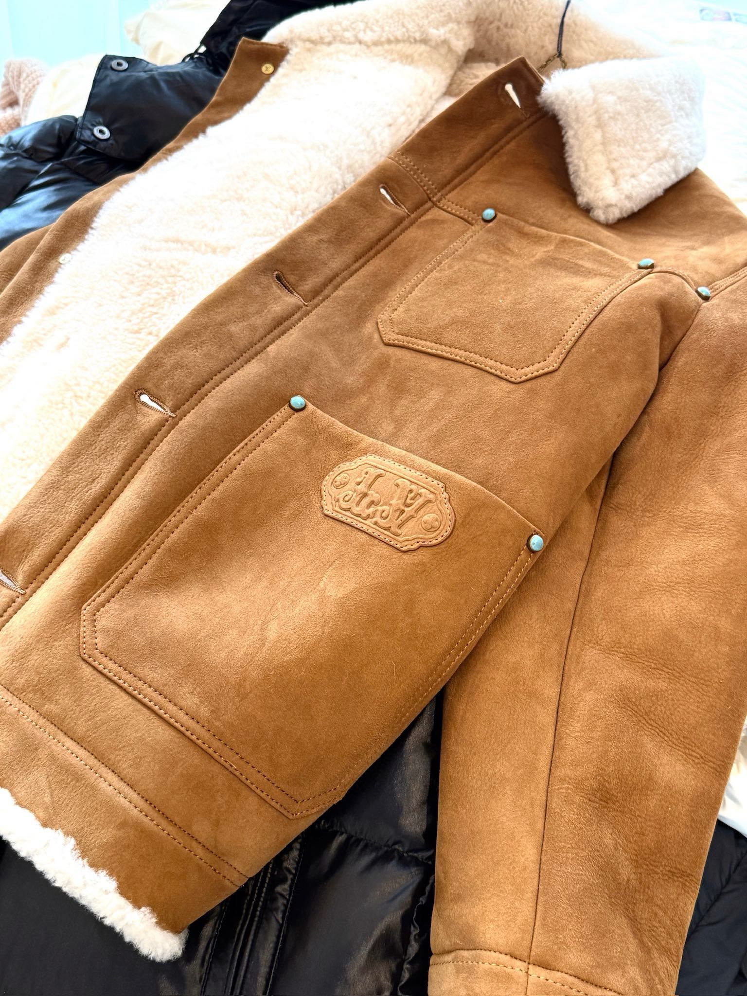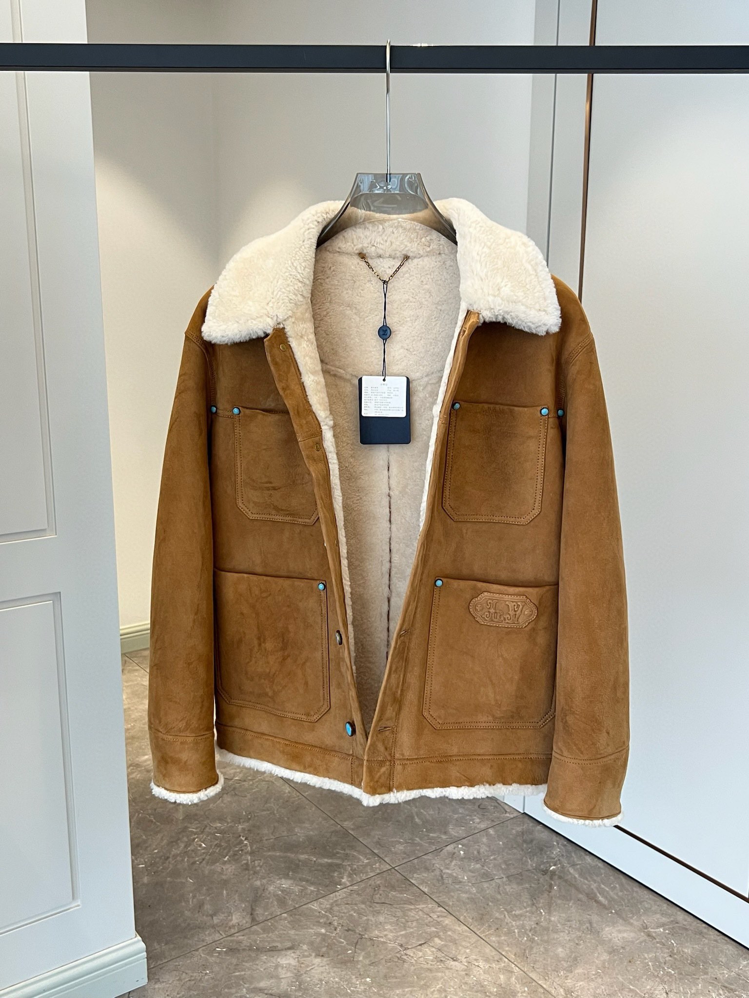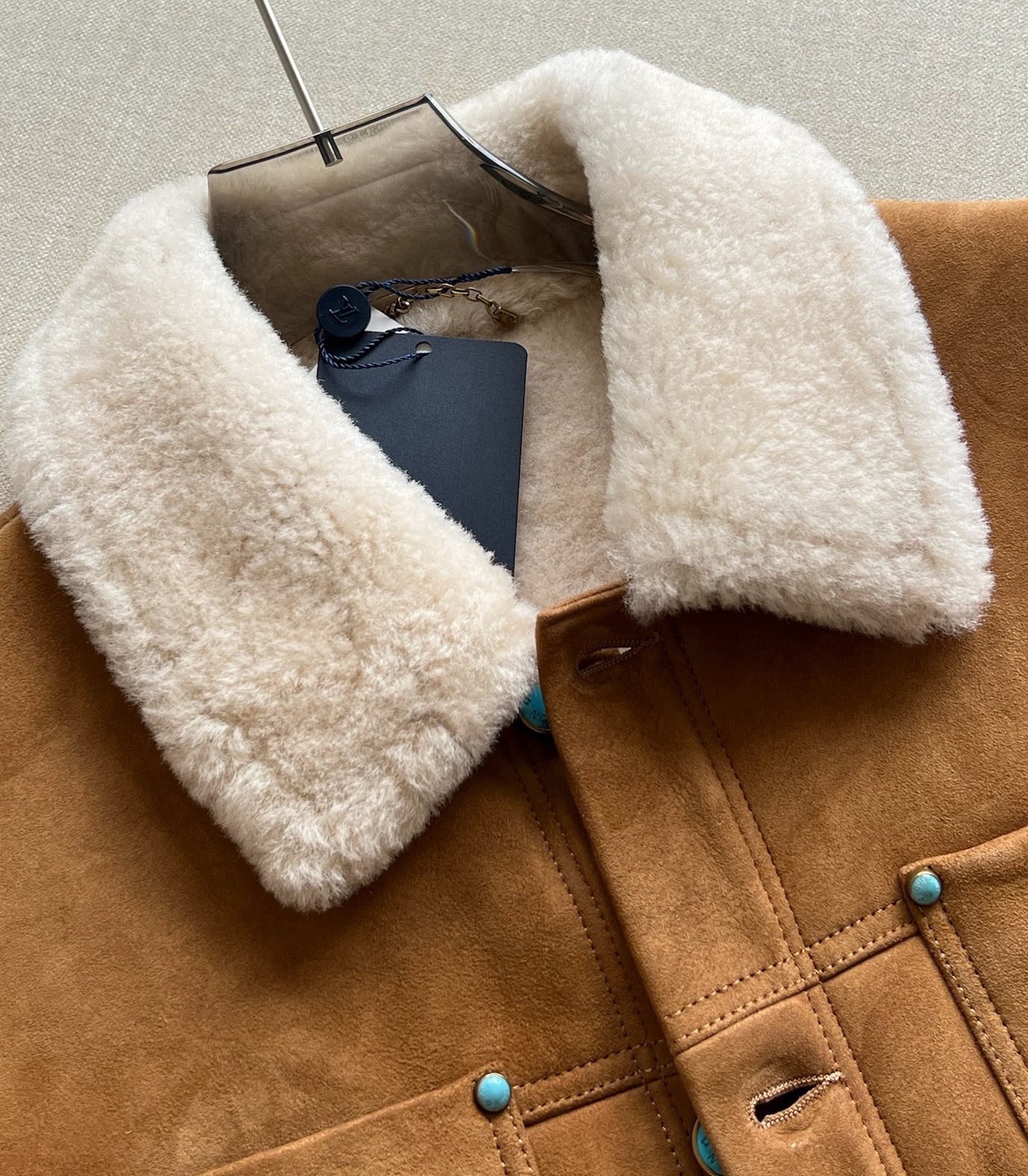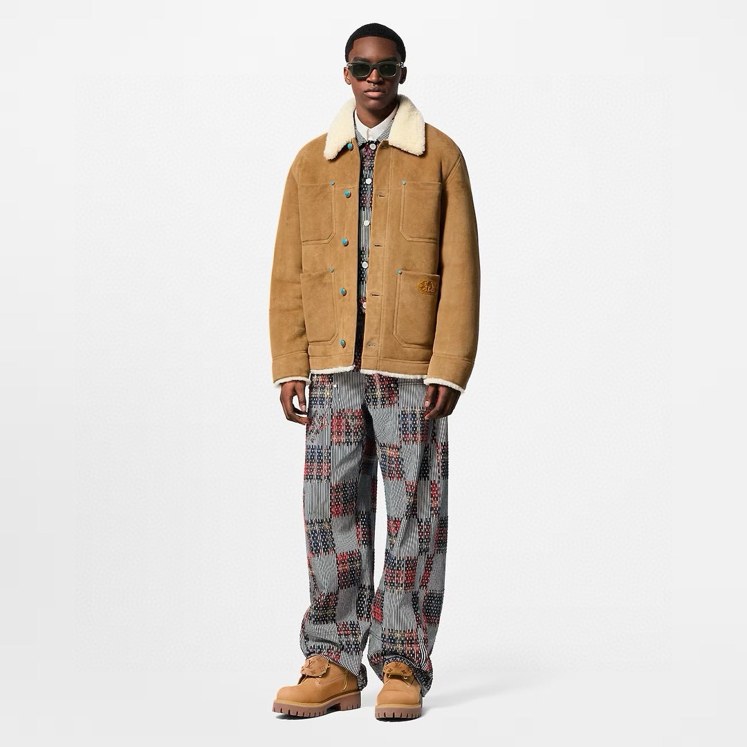 NIGO Louis Vuitton Men's Autumn and Winter Solid Color Lapel Single Breasted Sheep Leather Long Sleeve Jacket #nigo74261