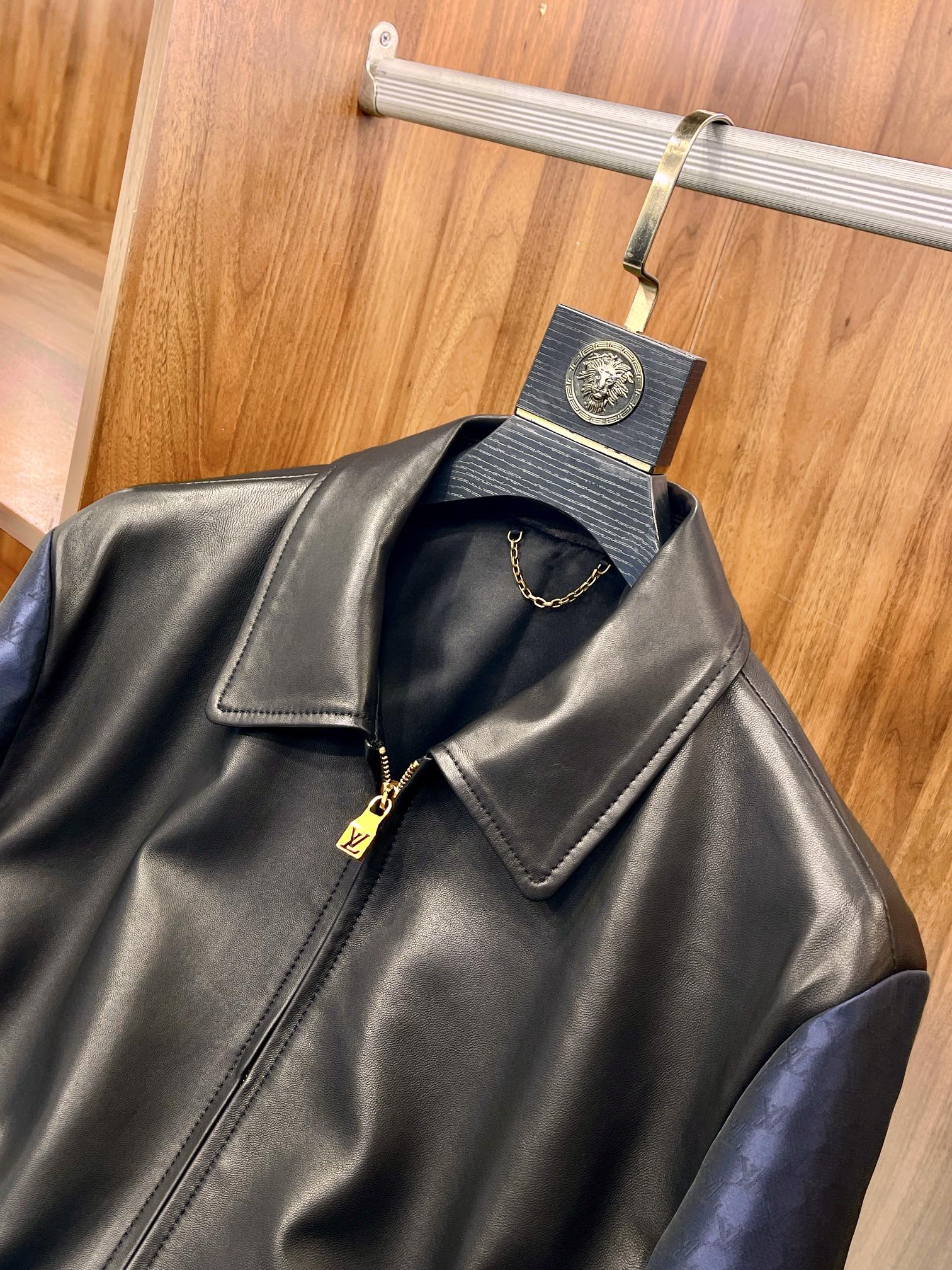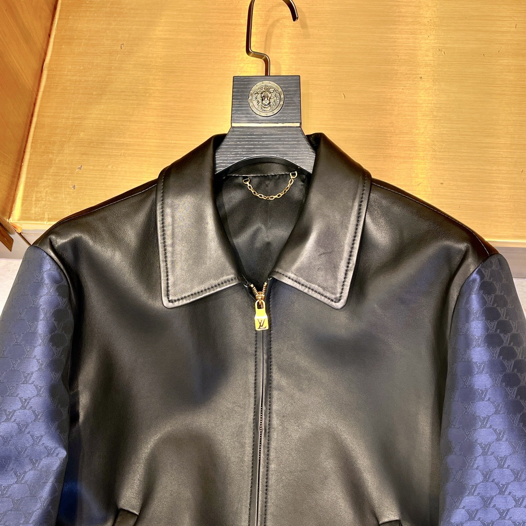 NIGO Louis Vuitton Men's Autumn and Winter Solid Color Leather Zipper Side Pocket Long Sleeve Jacket #nigo73268