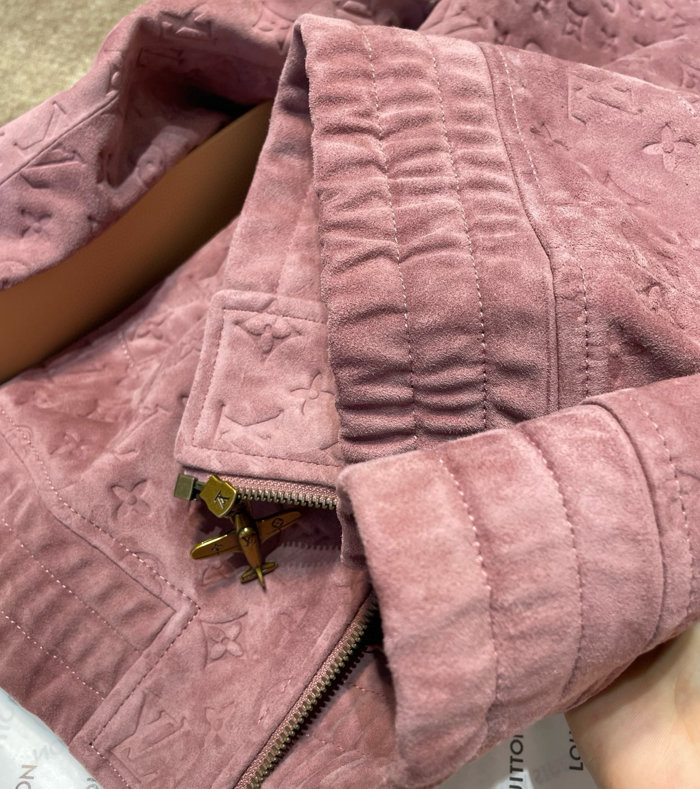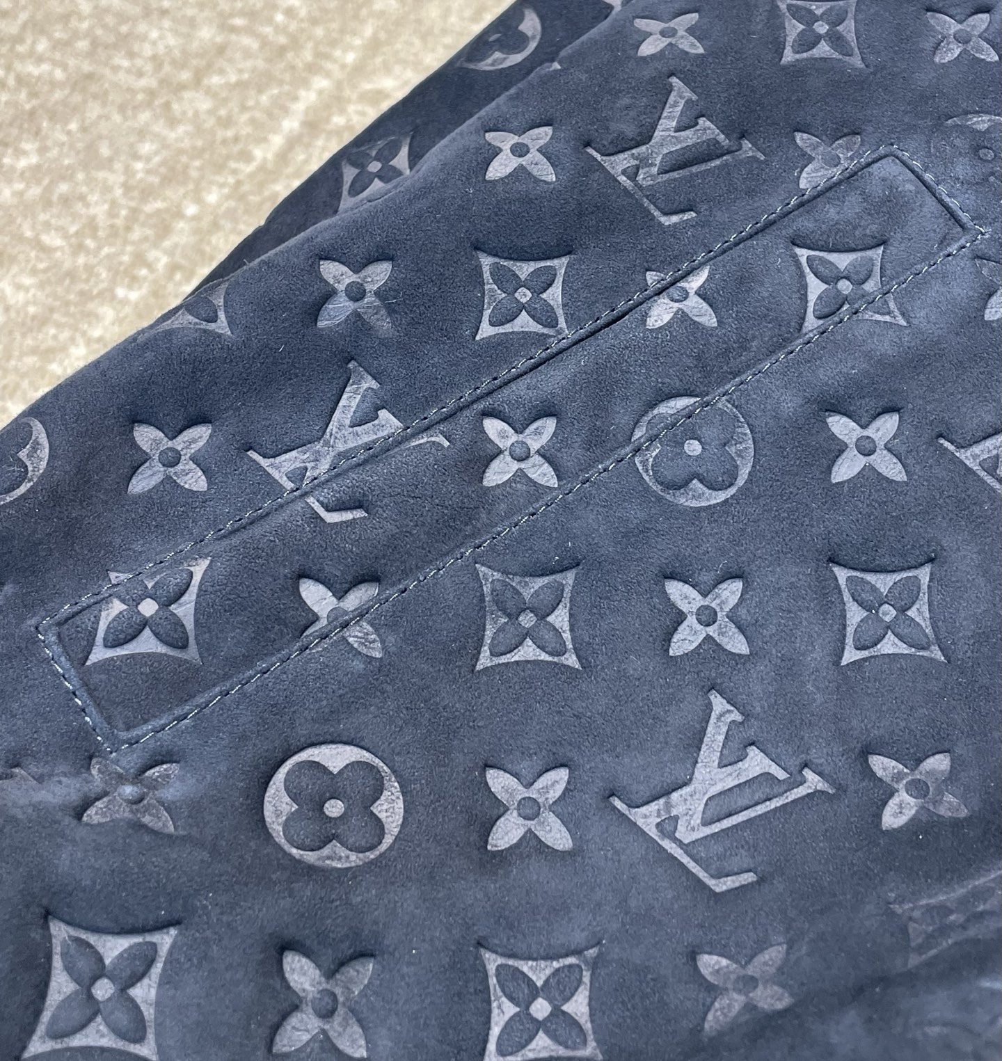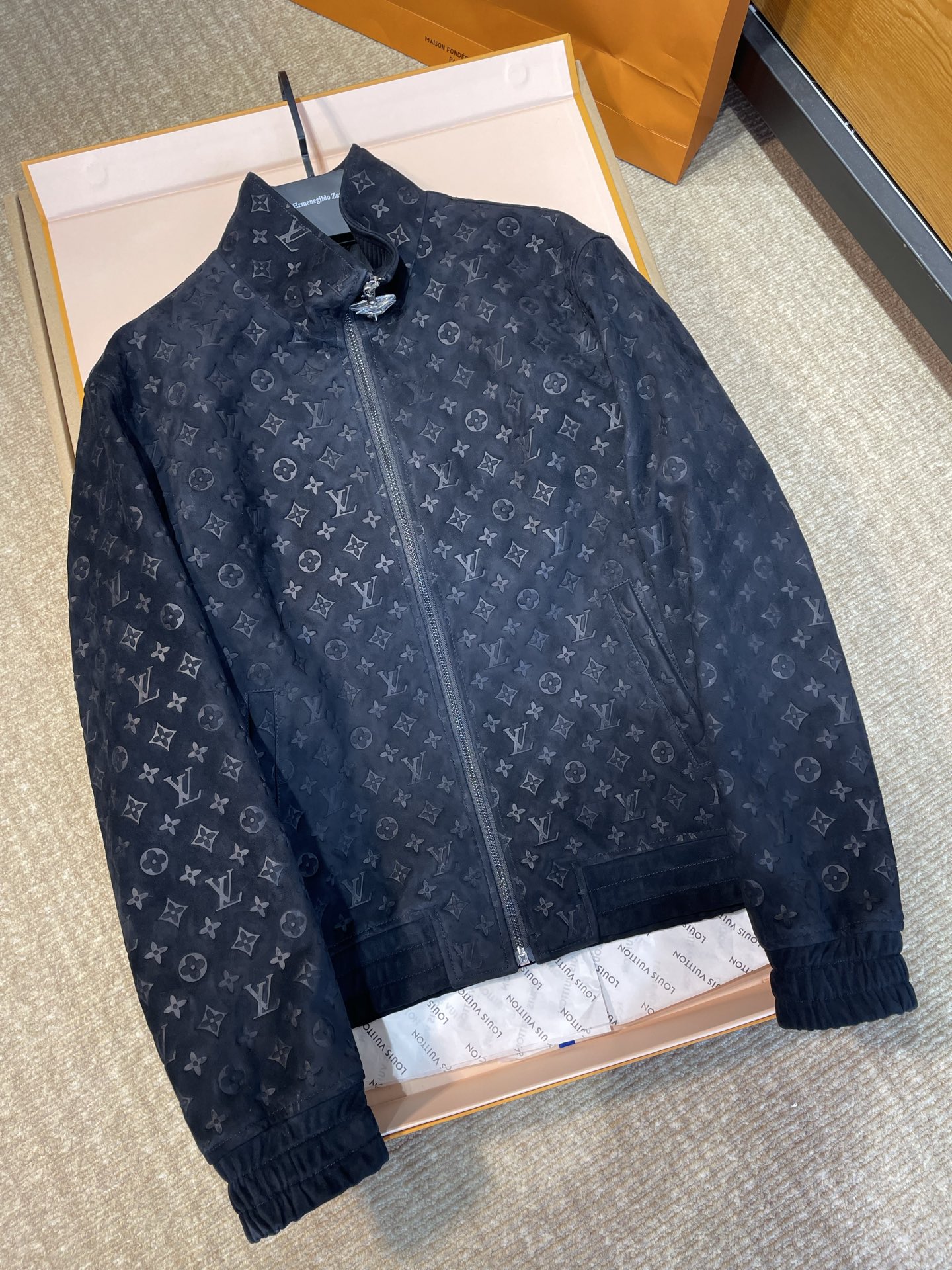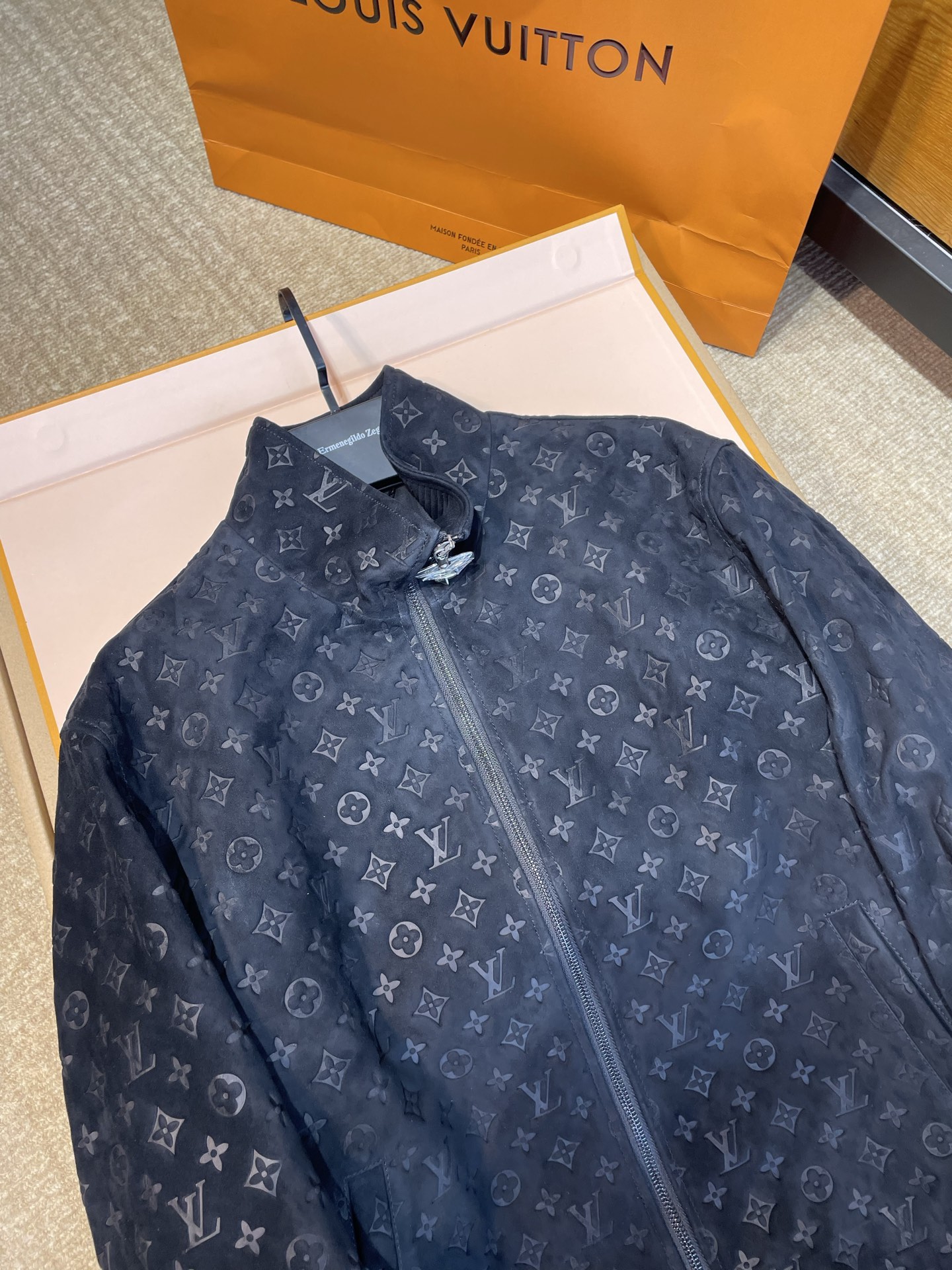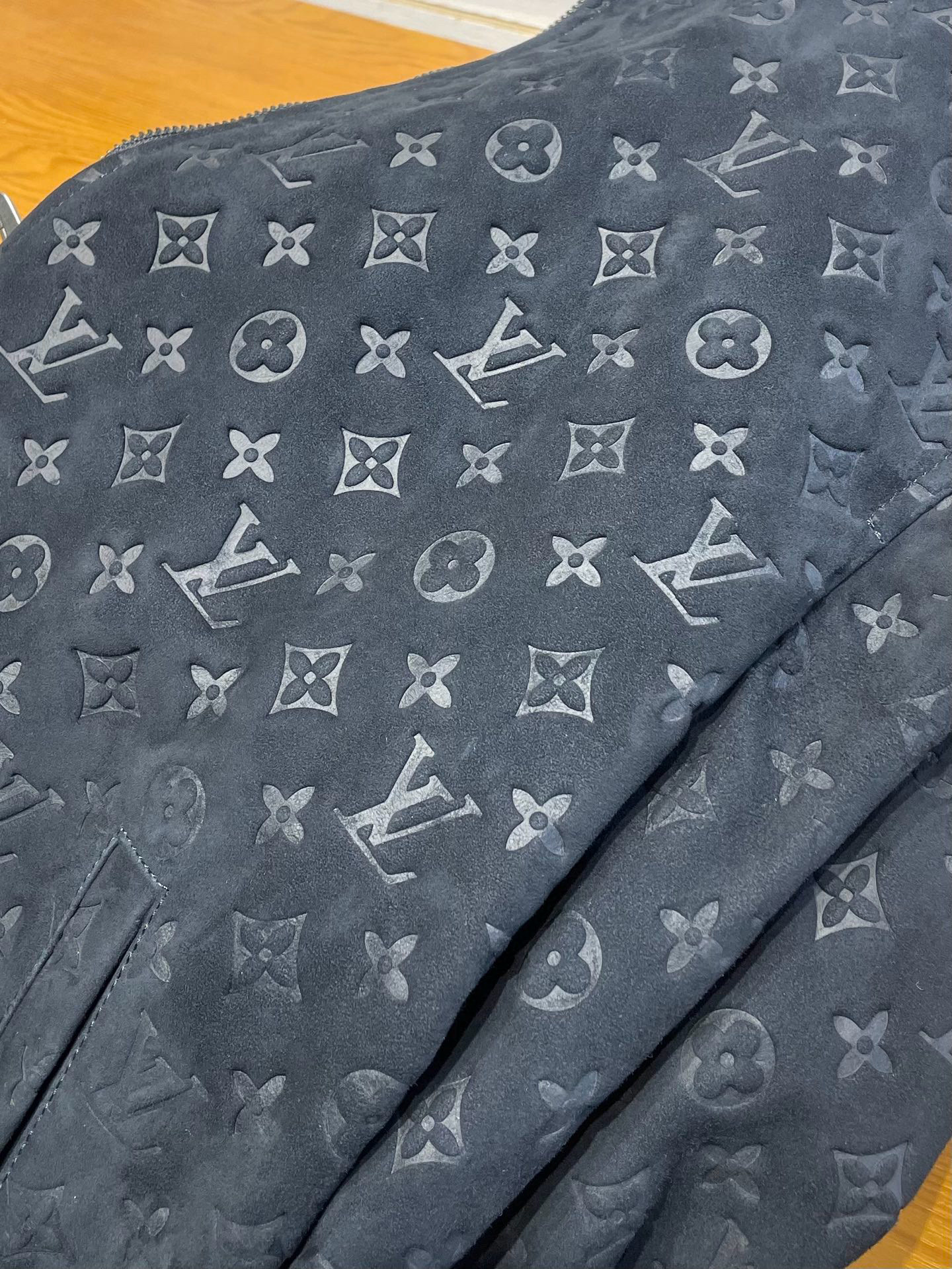 NIGO Louis Vuitton Men's Autumn/Winter Solid Color MONOGRAM Embossed Suede Leather Zipper Long Sleeve Sport Jacket #nigo76177