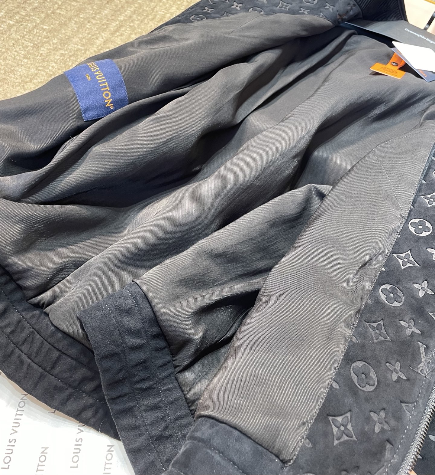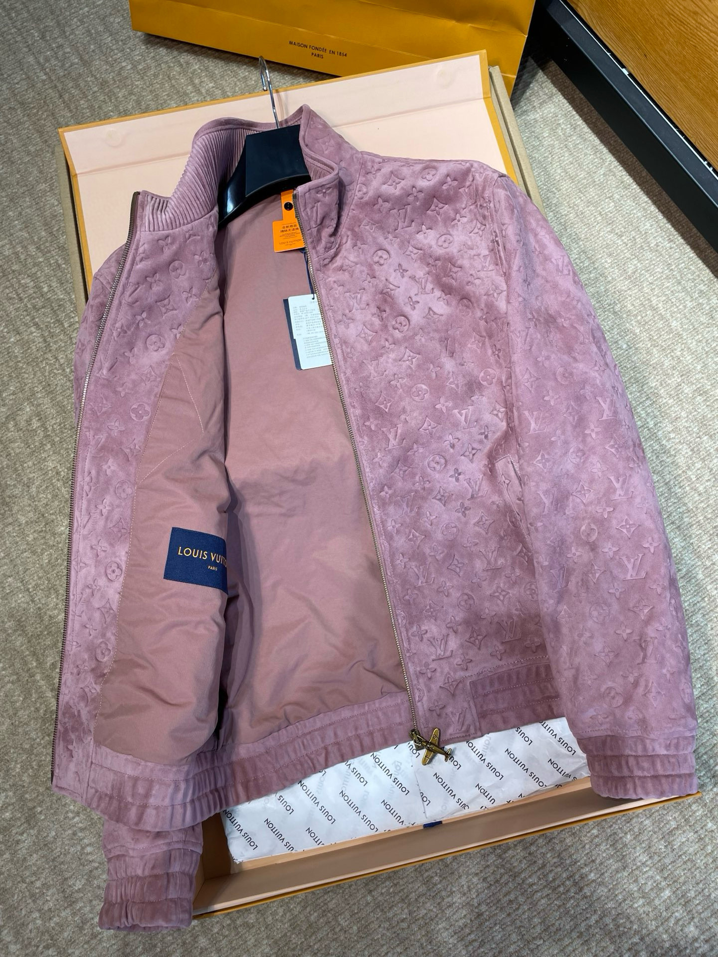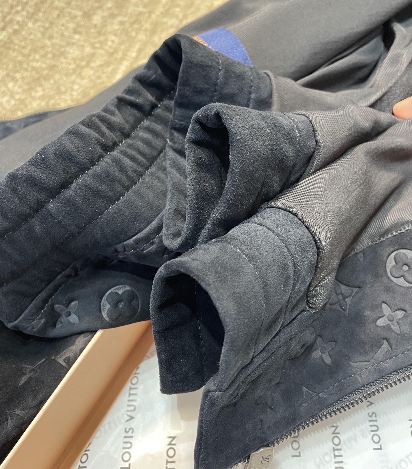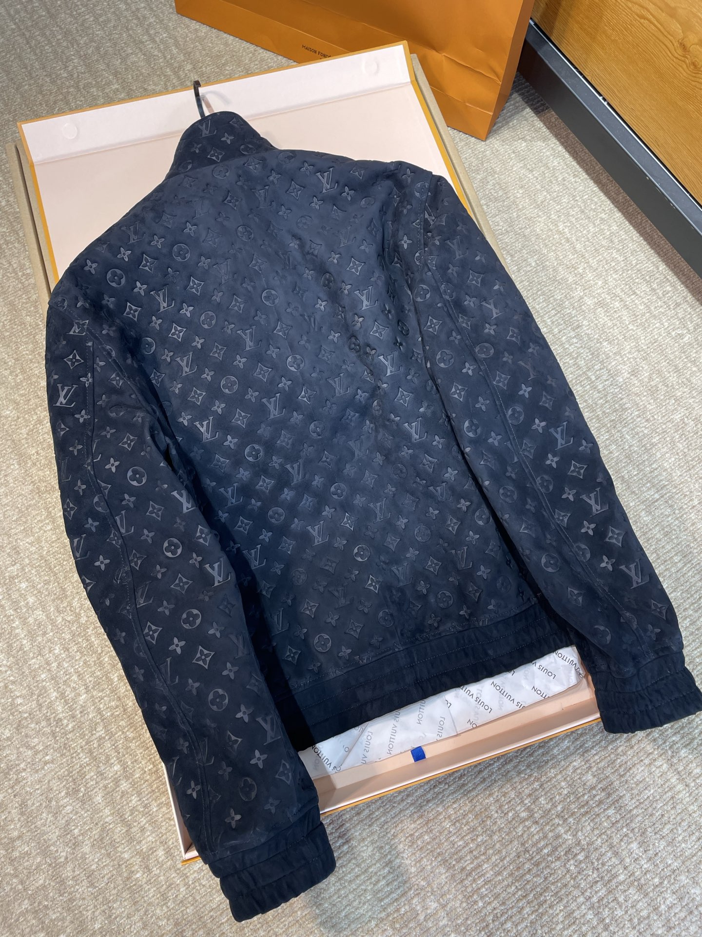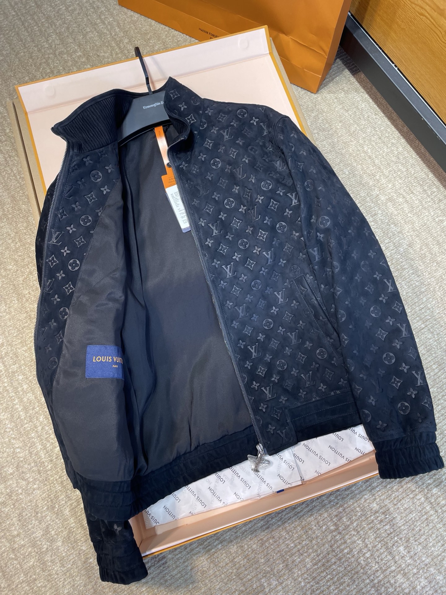NIGO Louis Vuitton Men's Autumn/Winter Solid Color MONOGRAM Embossed Suede Leather Zipper Long Sleeve Sport Jacket #nigo76177
