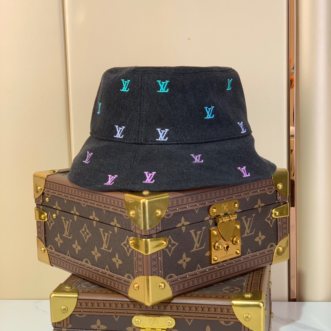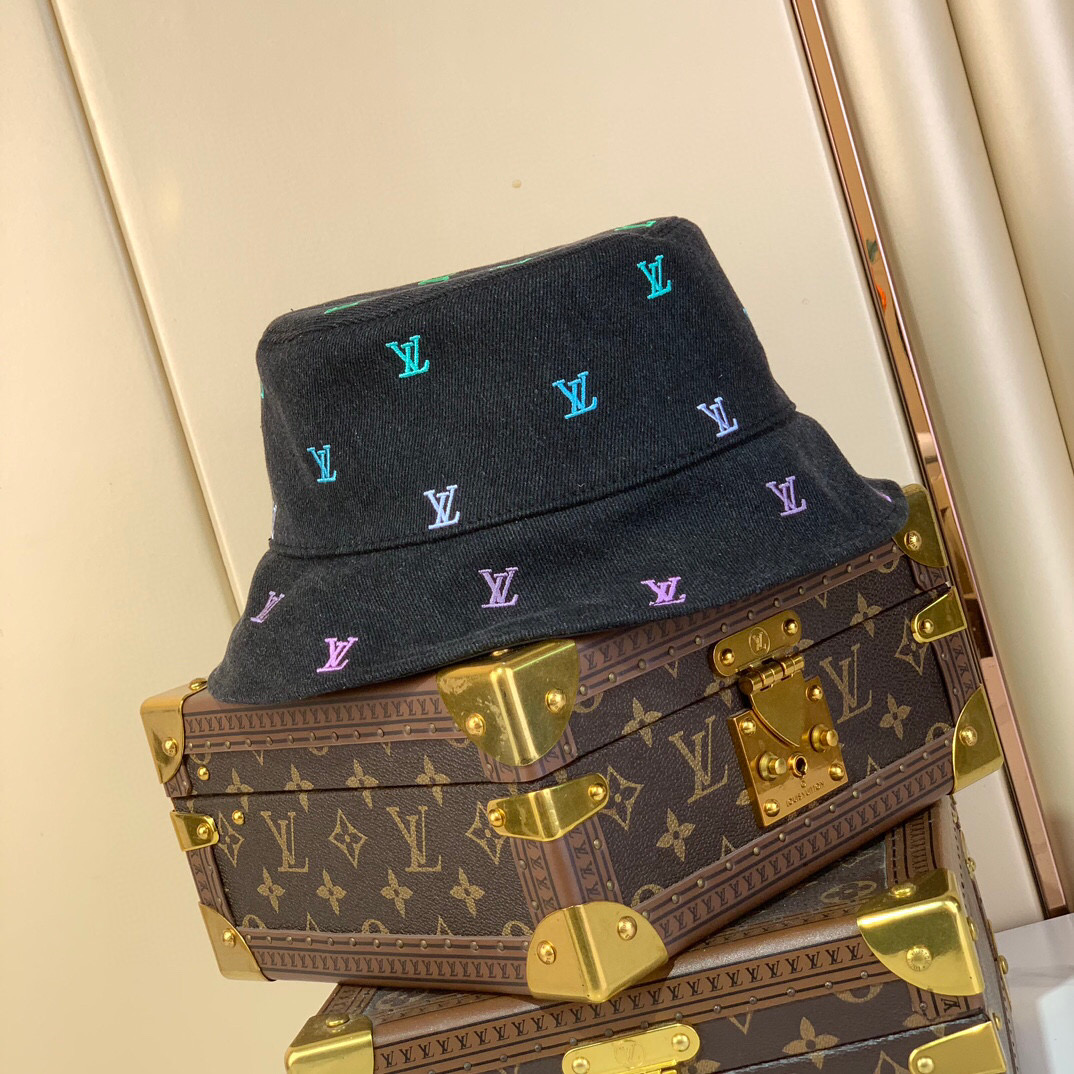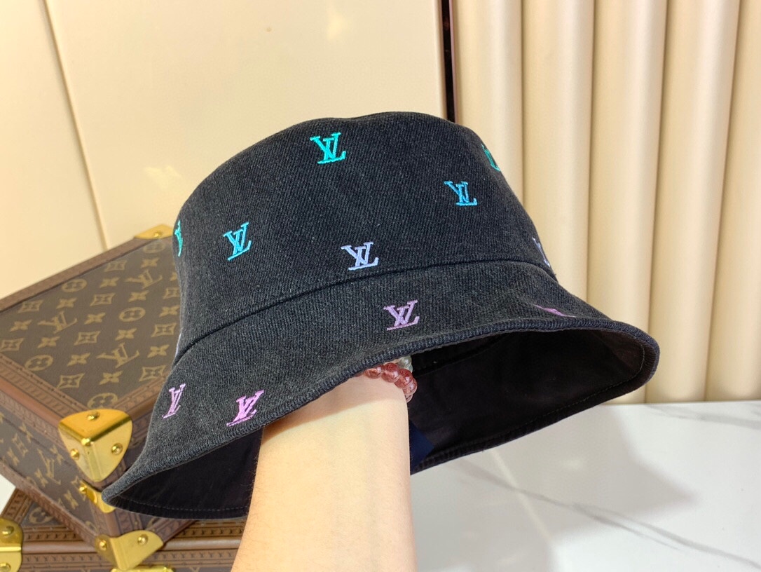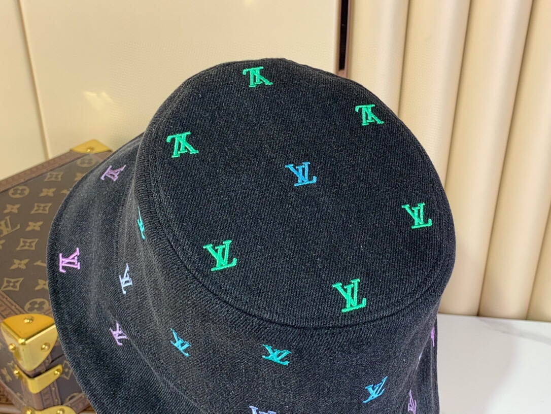 NIGO Louis Vuitton Men's LV Blason Shading Denim Embroidered Solid Color Cotton Reversible Fisherman'S Hat #nigo77276