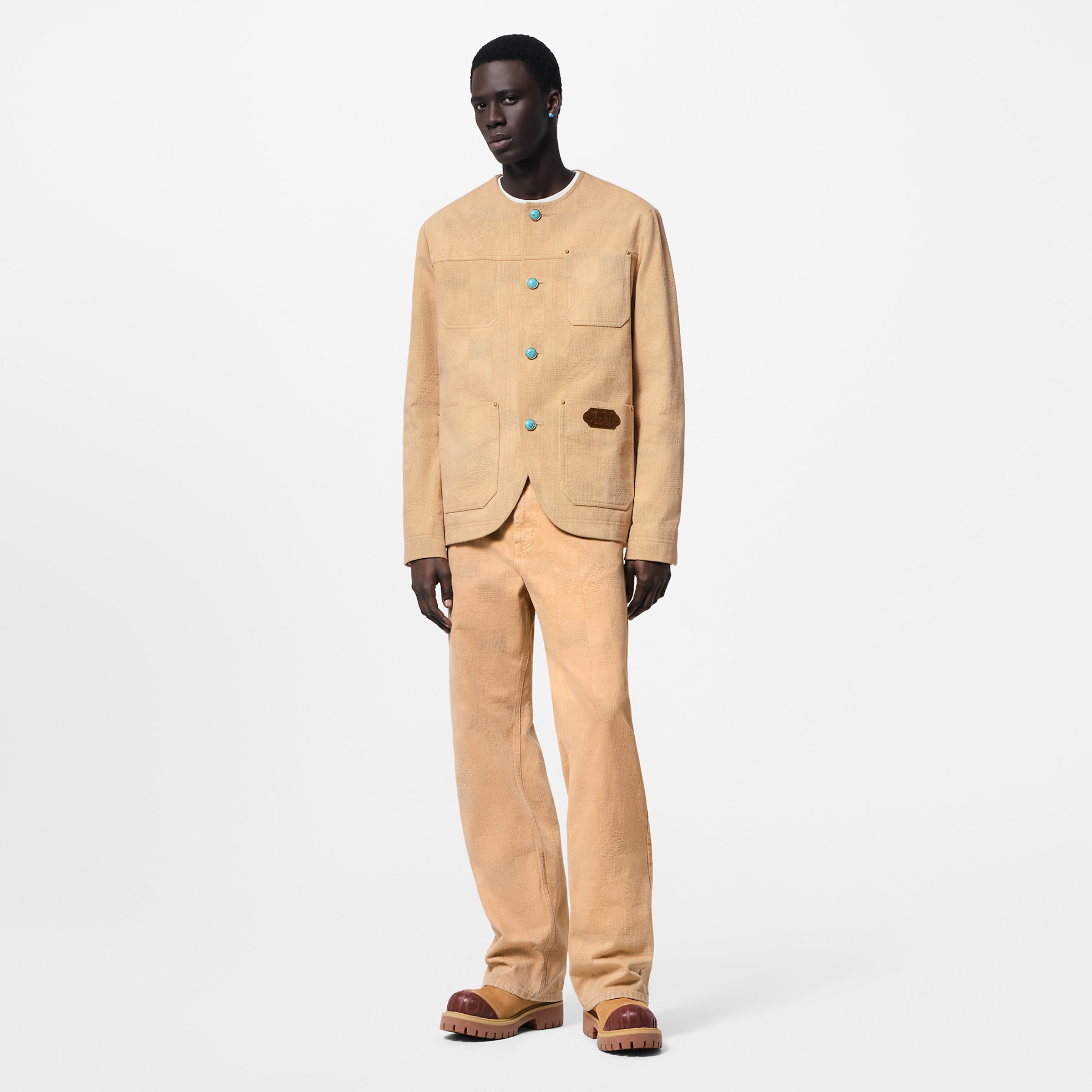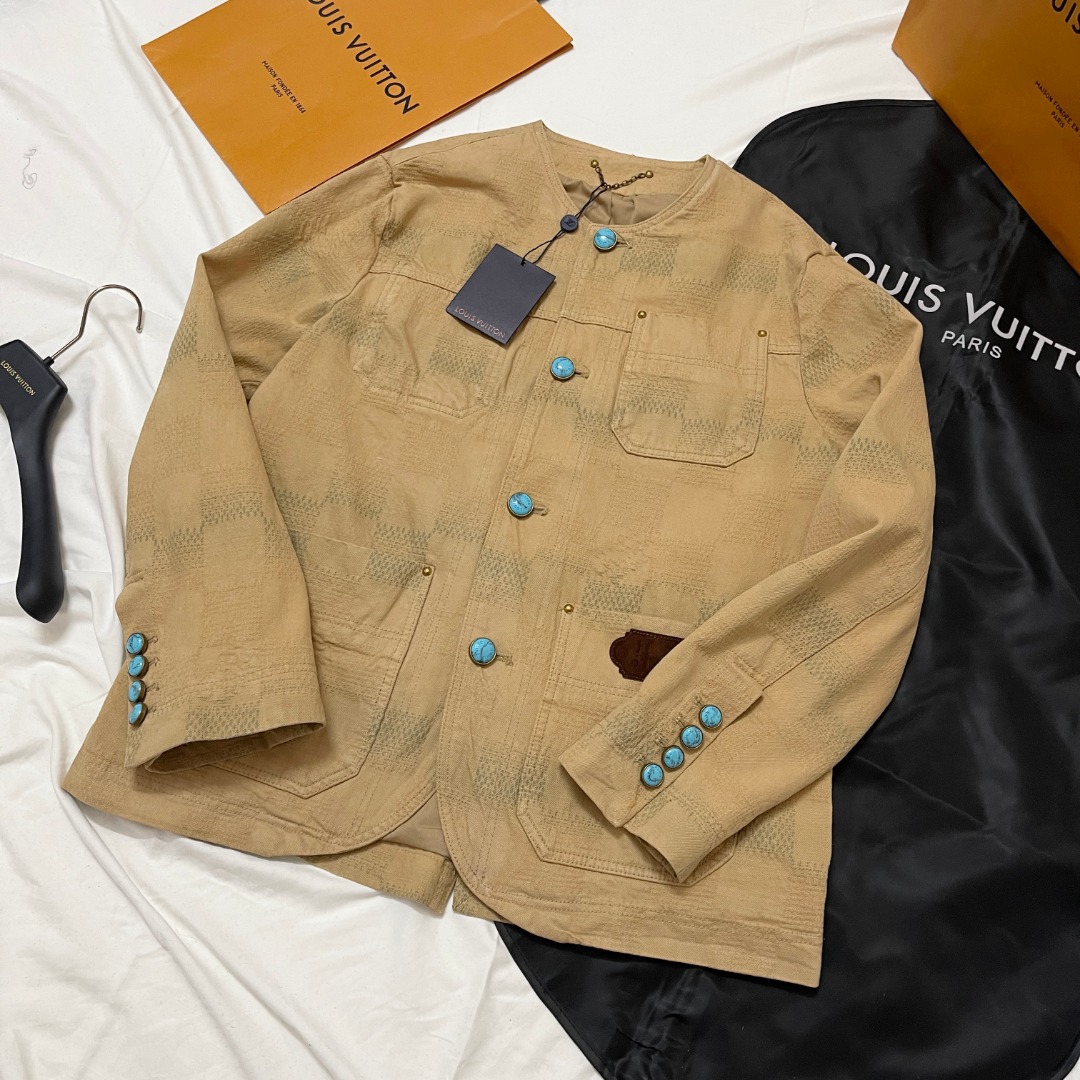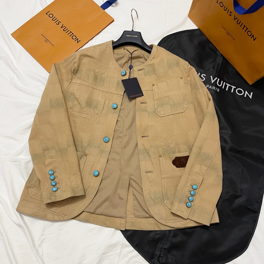 NIGO Louis Vuitton Men's Spring And Autumn Damier Collarless Cotton Lettered Jacquard Workwear Jacket Casual Solid Color Work Pants #nigo71922