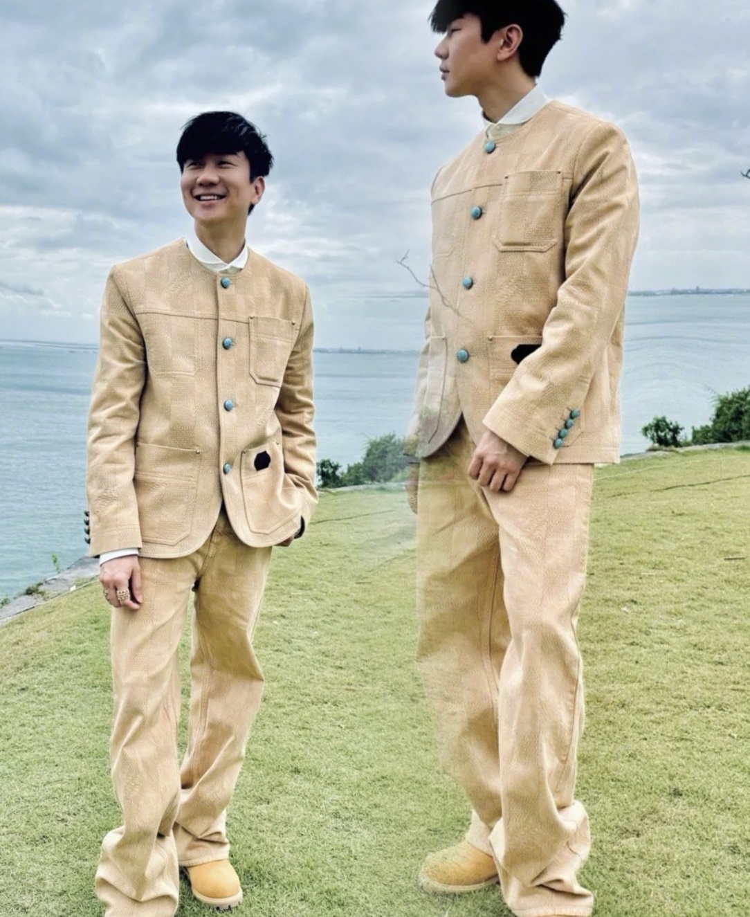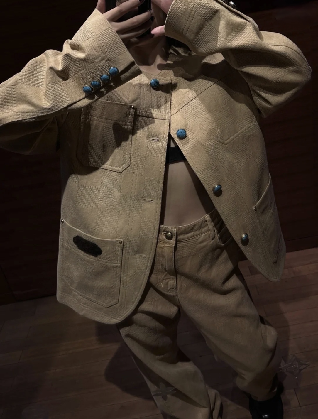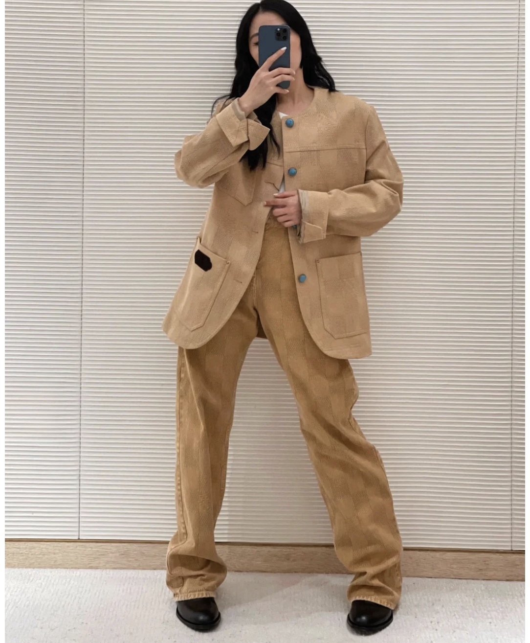 NIGO Louis Vuitton Men's Spring And Autumn Damier Collarless Cotton Lettered Jacquard Workwear Jacket Casual Solid Color Work Pants #nigo71922