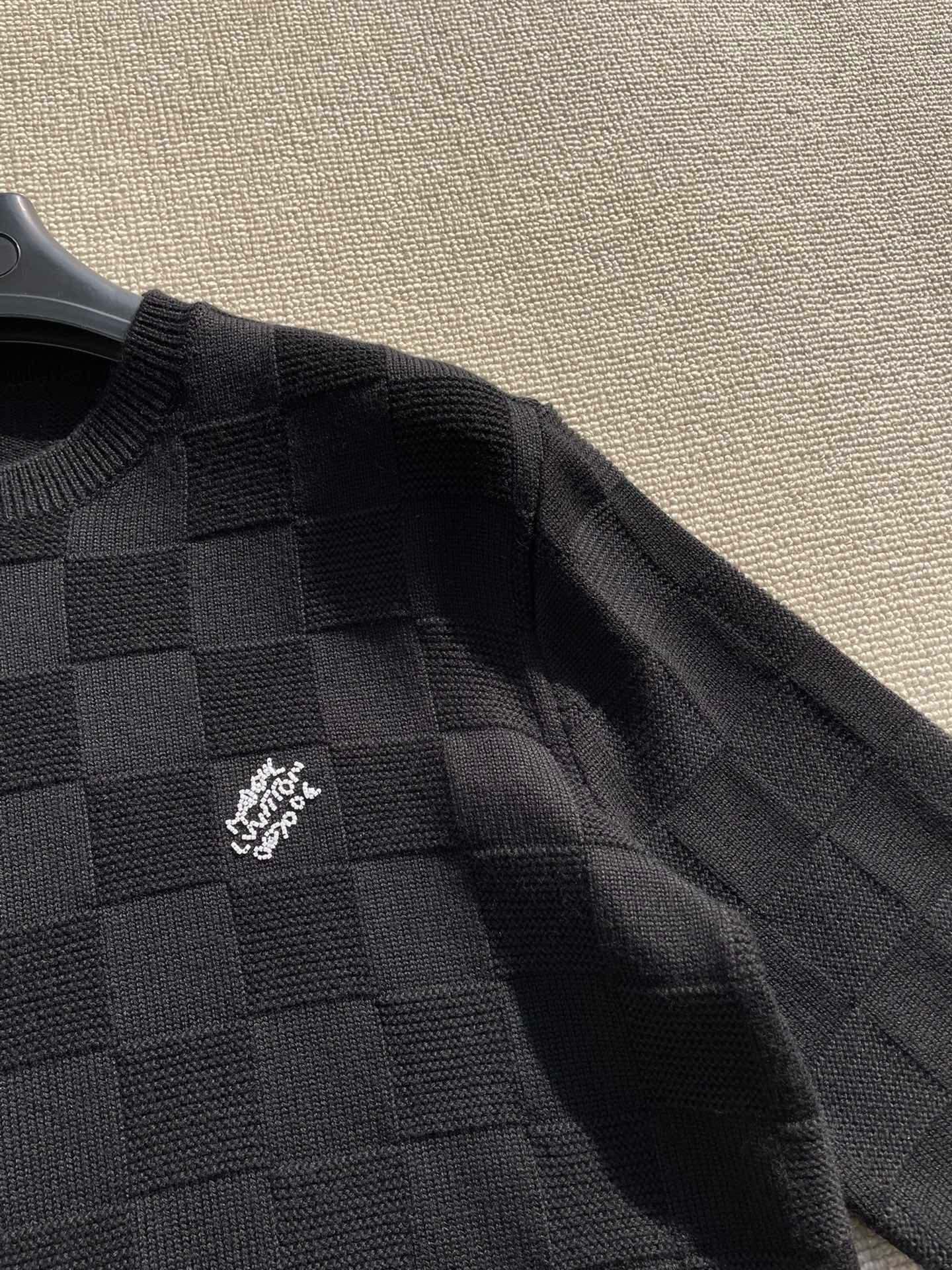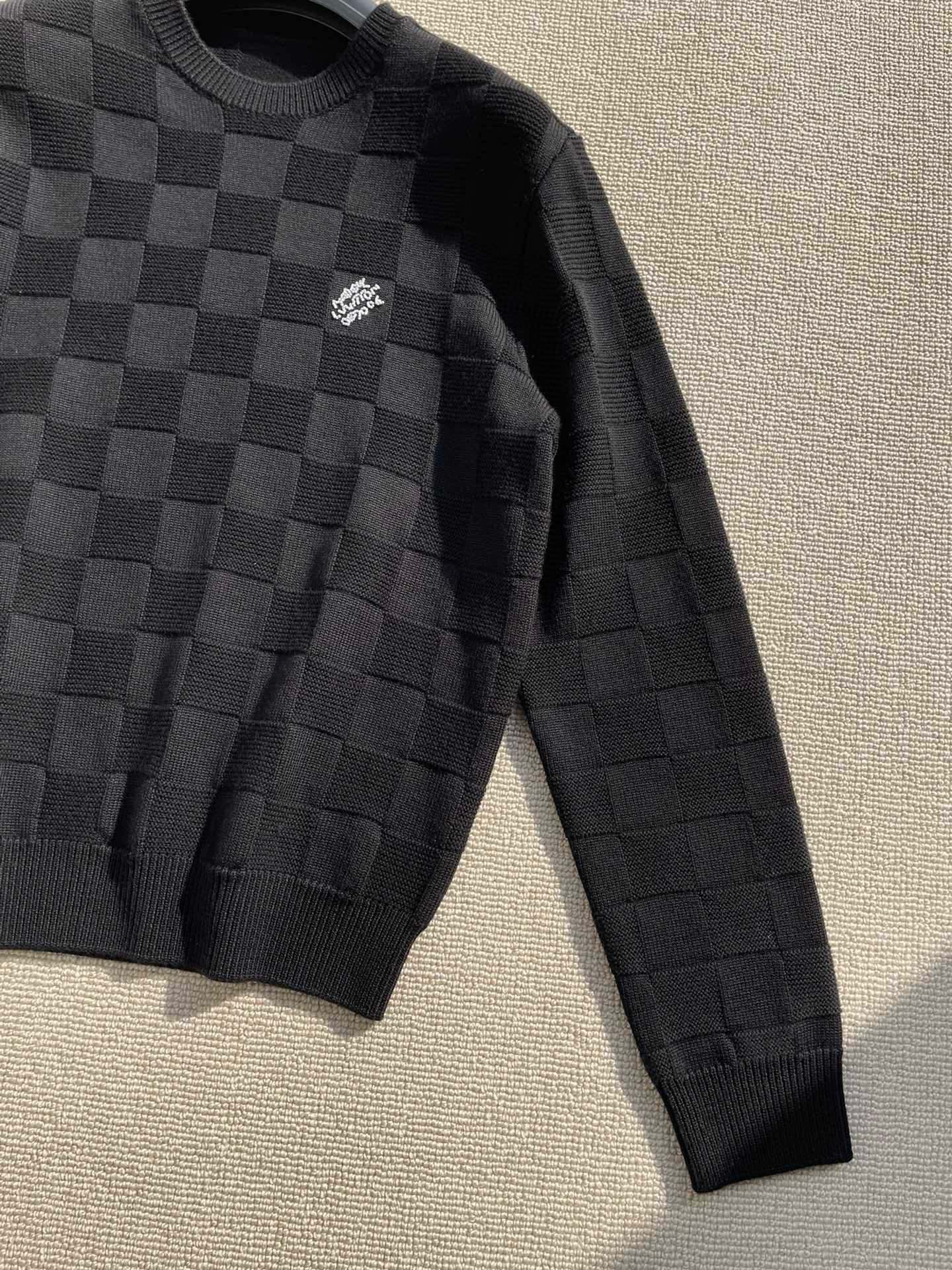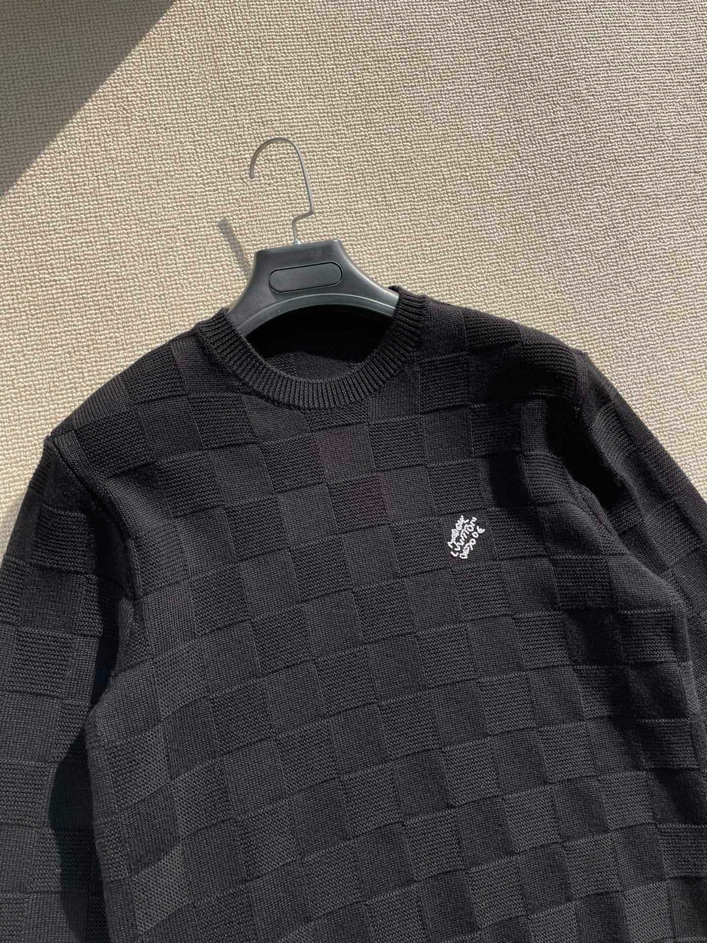 NIGO Louis Vuitton Men's Spring and Autumn Solid Color Check Printed Wool Round Neck Long Sleeve Knitted Sweater #nigo74581
