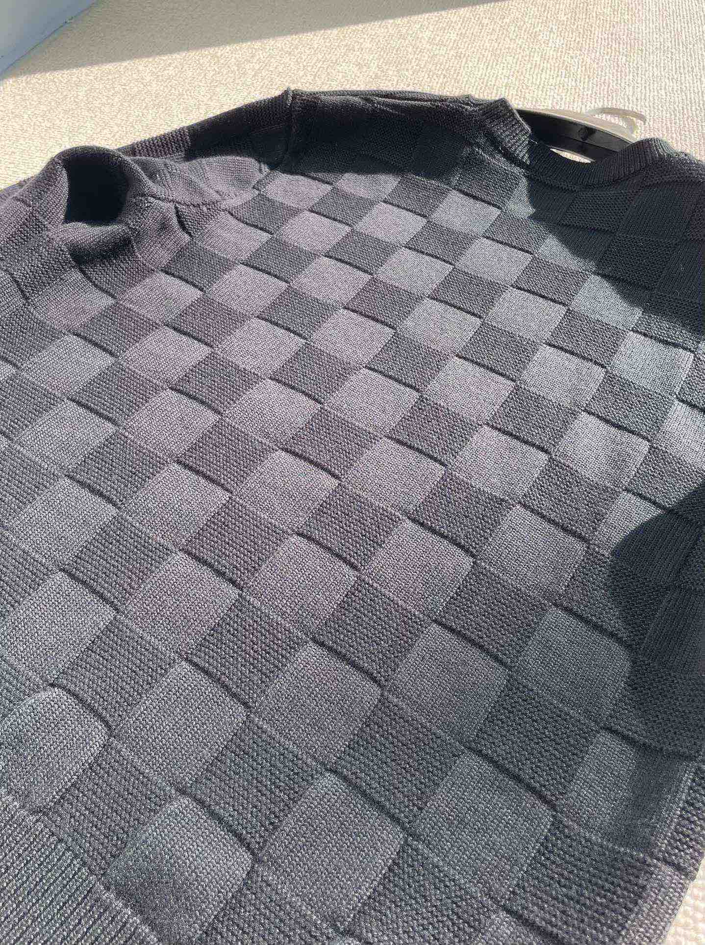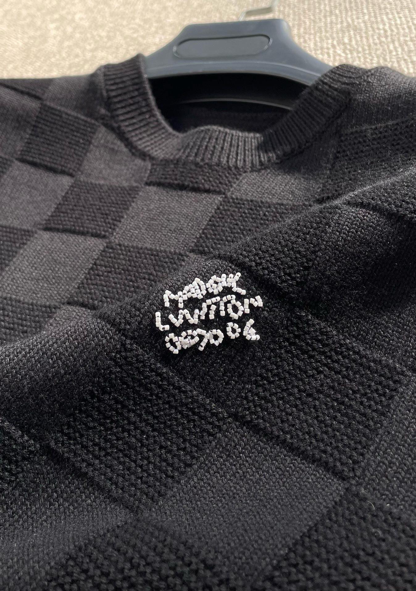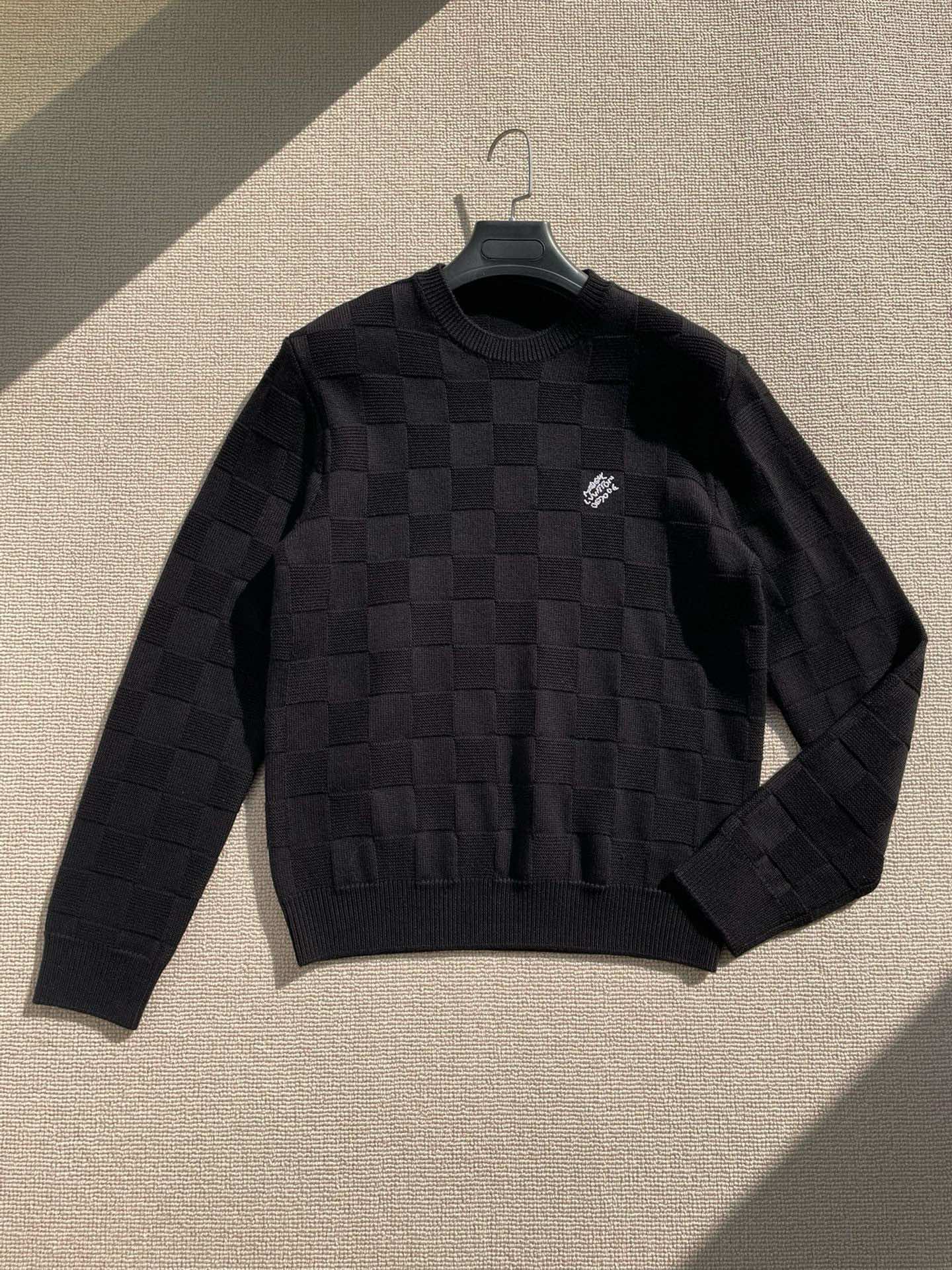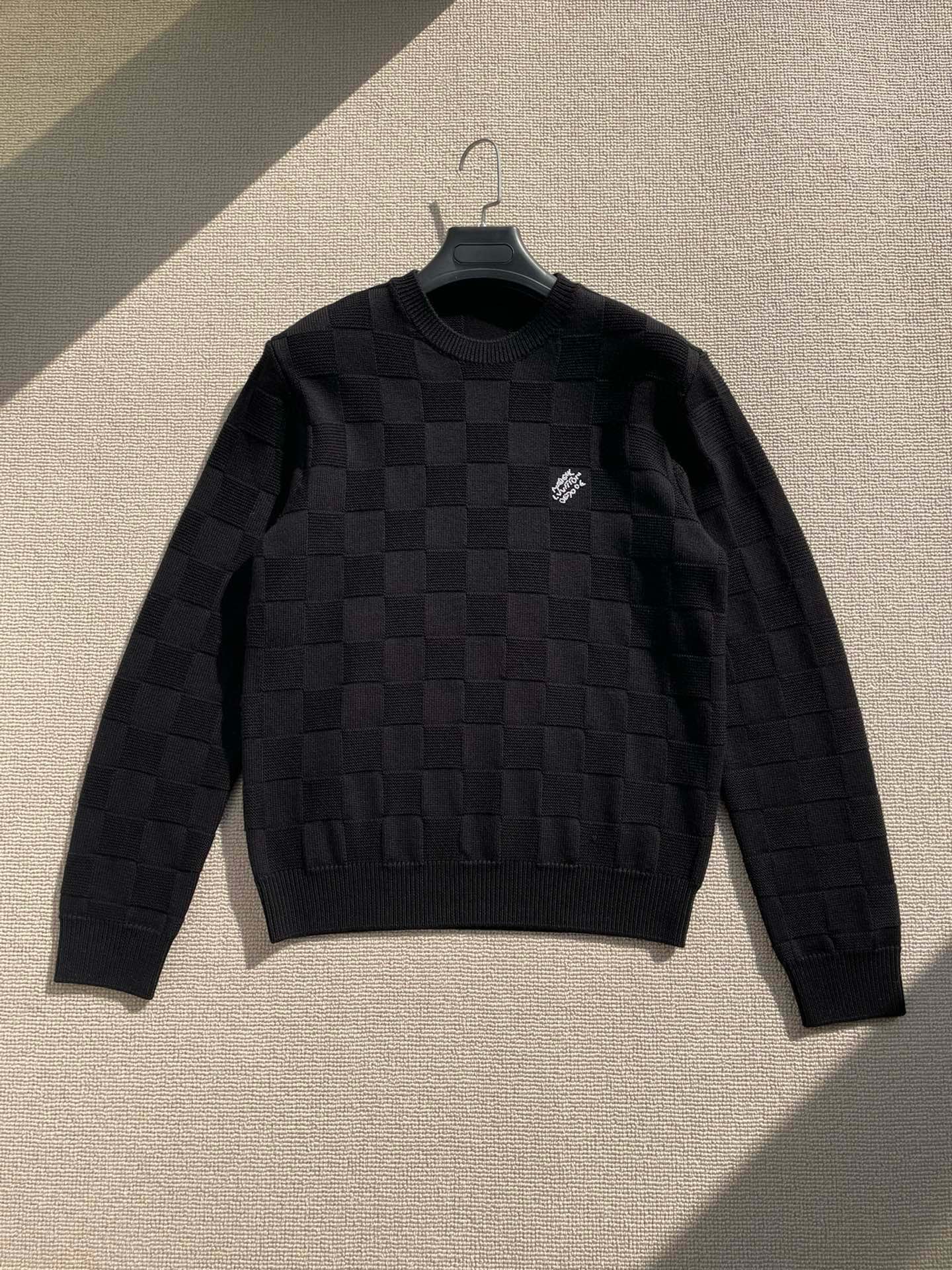 NIGO Louis Vuitton Men's Spring and Autumn Solid Color Check Printed Wool Round Neck Long Sleeve Knitted Sweater #nigo74581