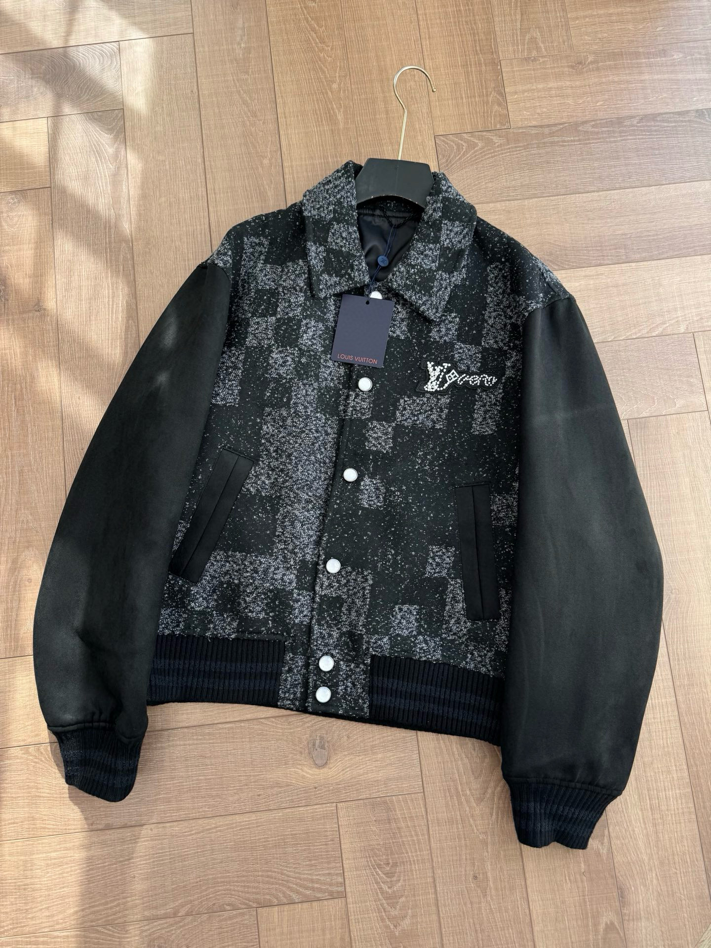 NIGO Louis Vuitton Men's Spring/Autumn Mixed Leather Jacket Checkered Solid Color Baseball Collar Long Sleeve Waistcoat Jacket #nigo81478