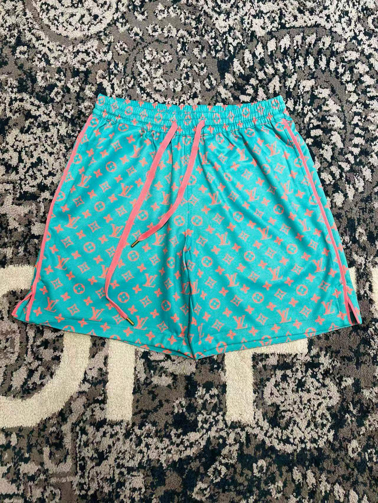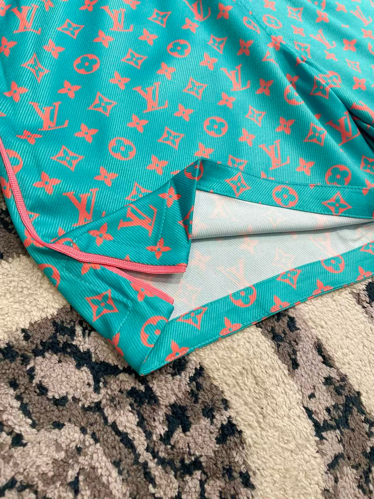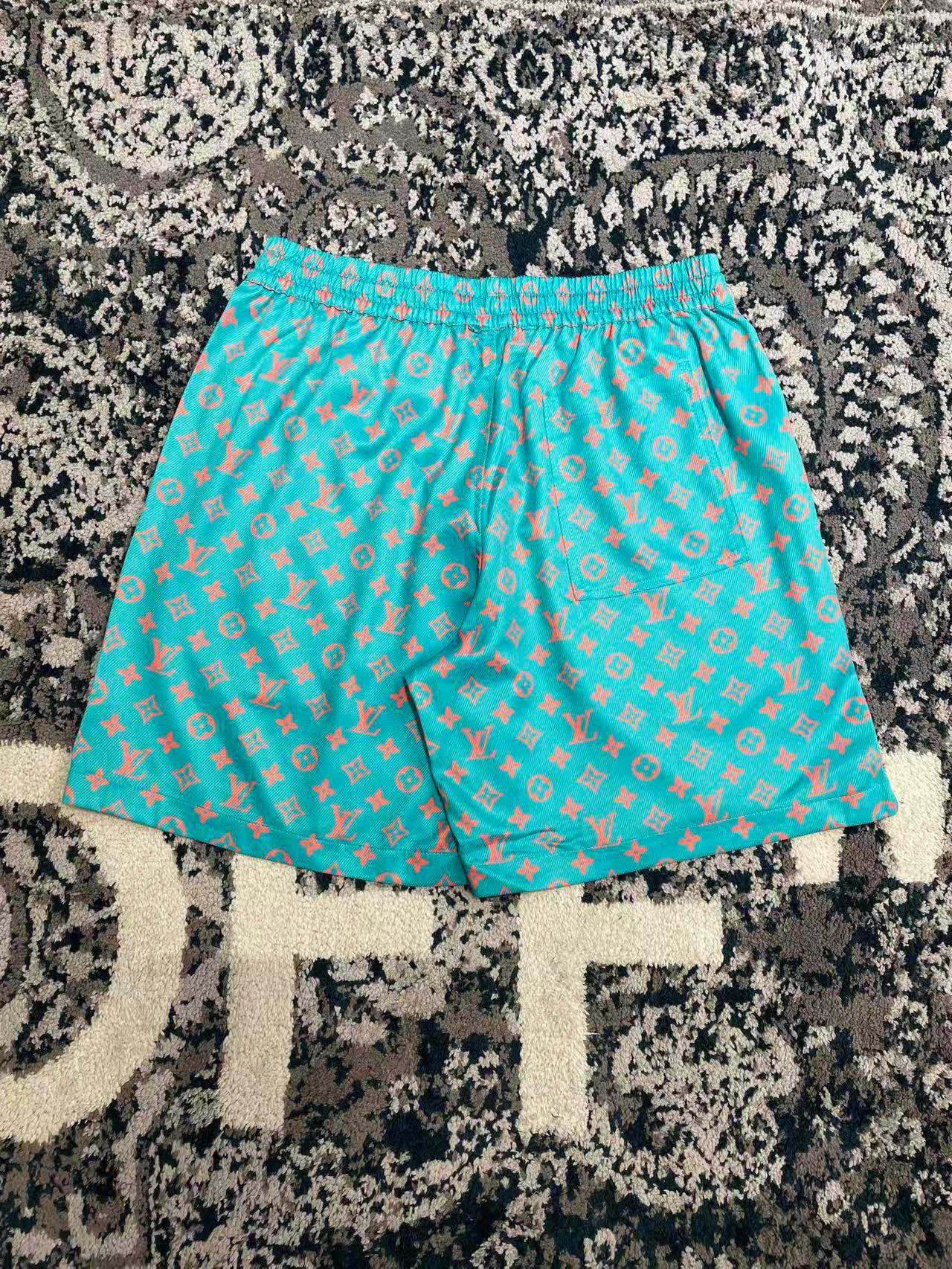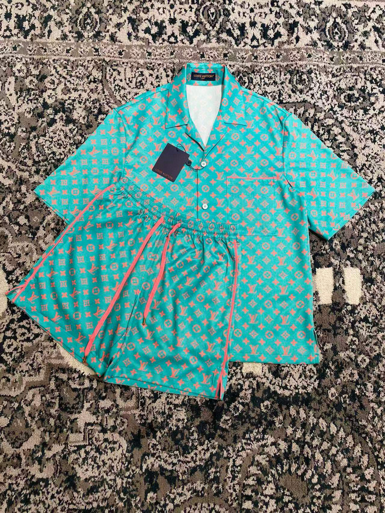 NIGO Louis Vuitton Men's Summer Solid Color Letter Print V-Neck Single Button Short Sleeve Shirt and Casual Drawstring Shorts Set Suit #nigo77244