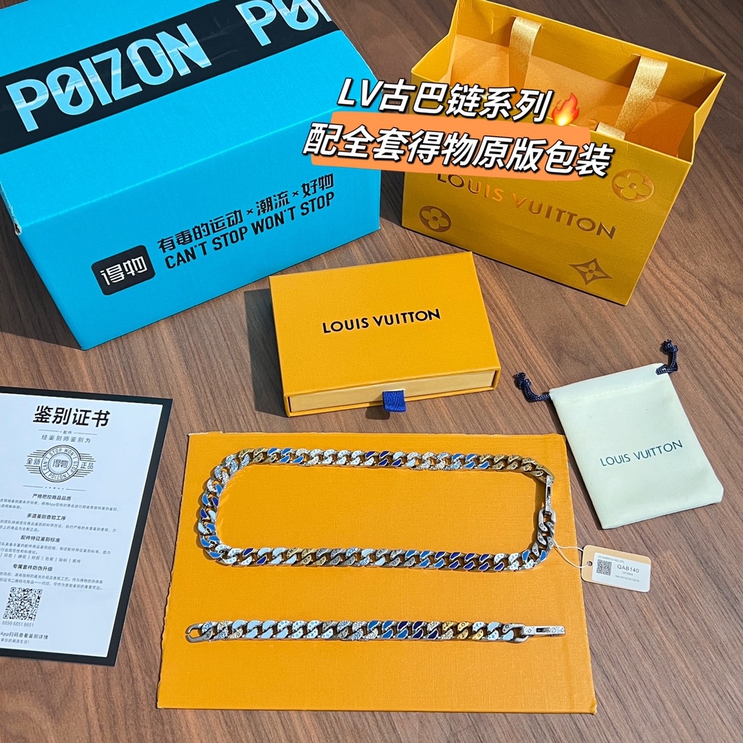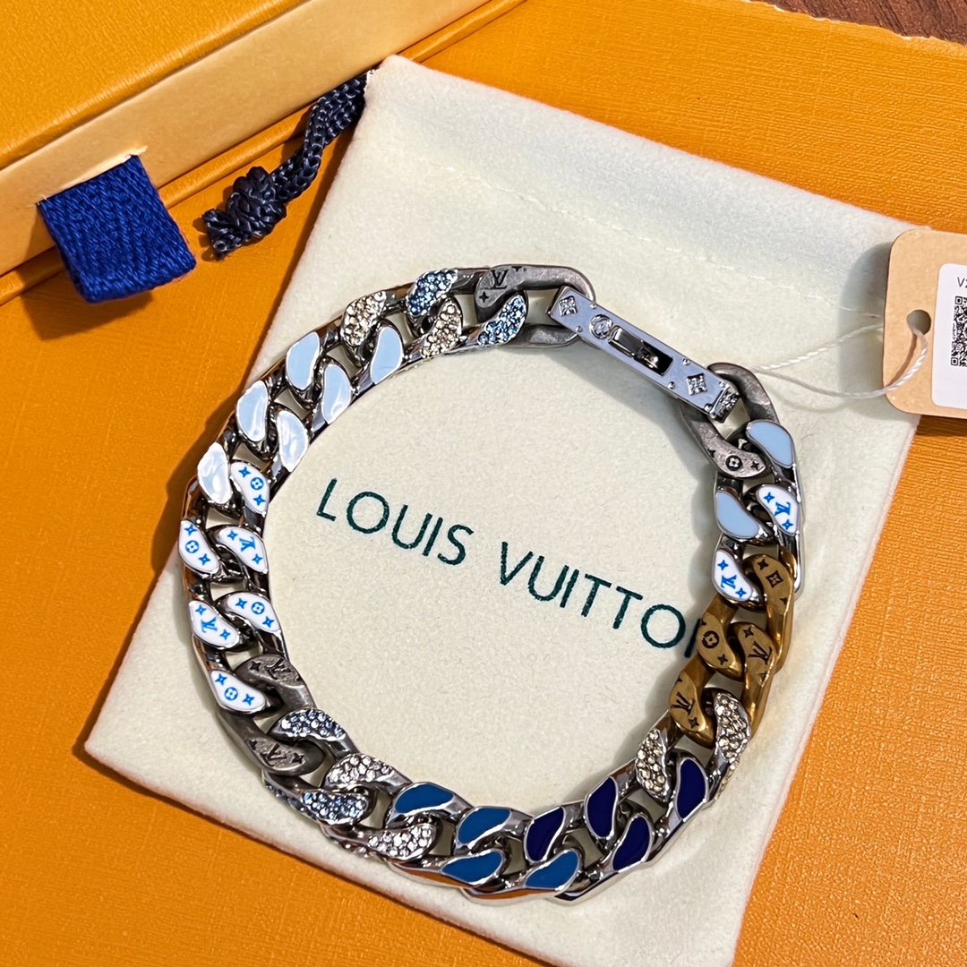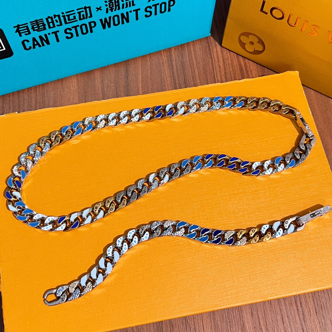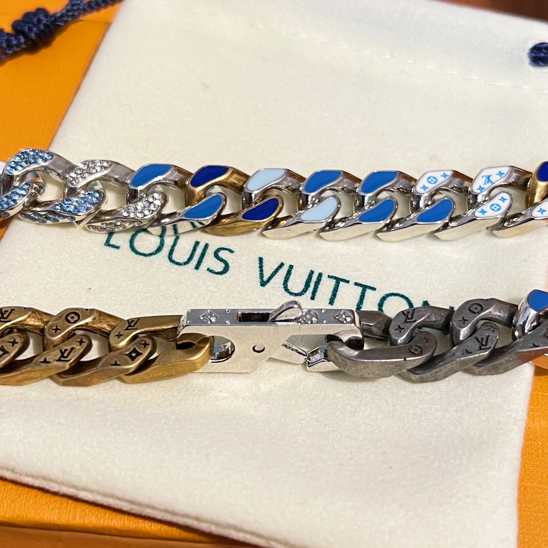 NIGO Louis Vuitton Men Women Cuban Chain Fashion Trend Logo Metal Necklace Color Blocking Premium Bracelet Jewelry Accessories #nigo71218
