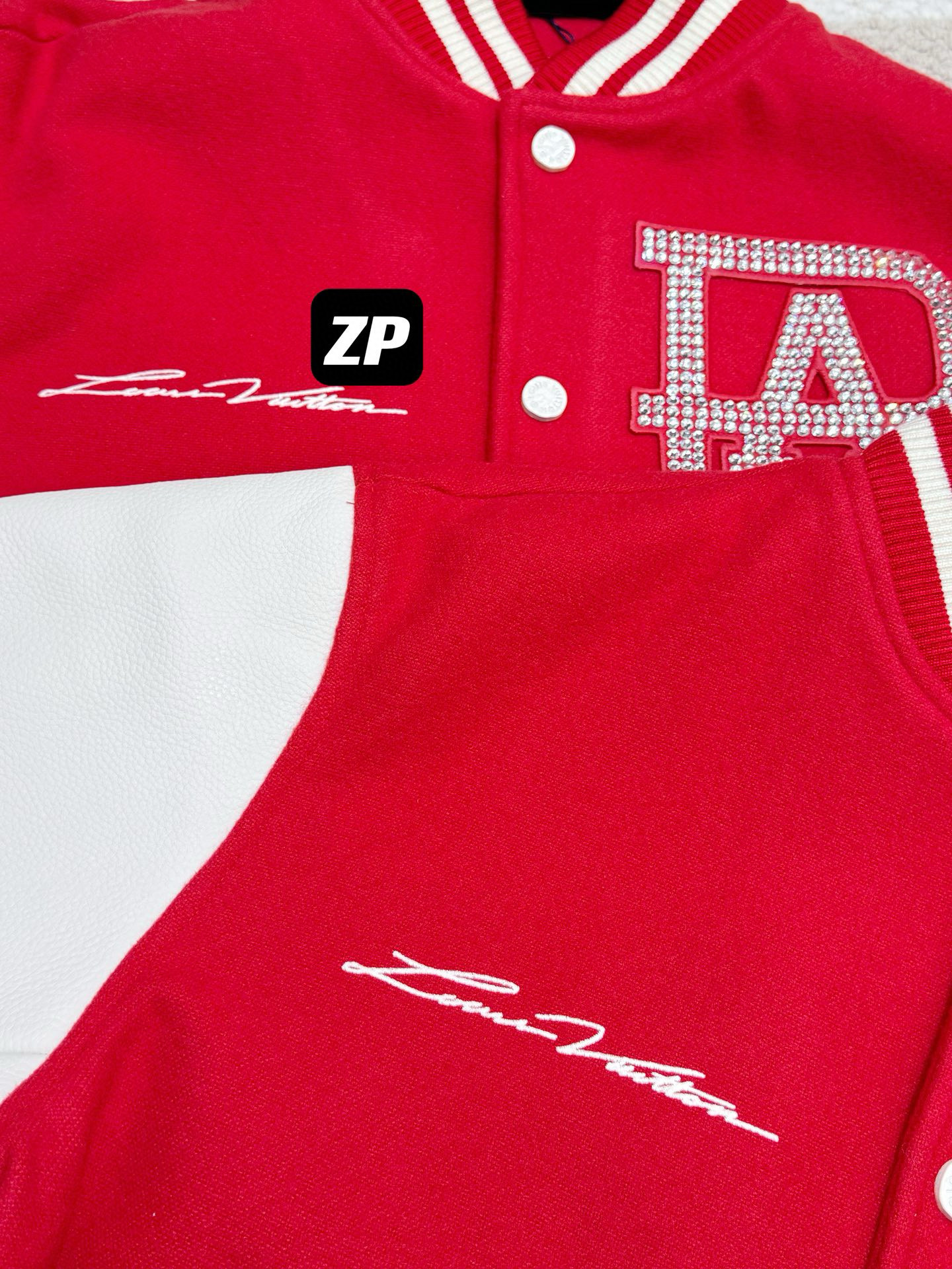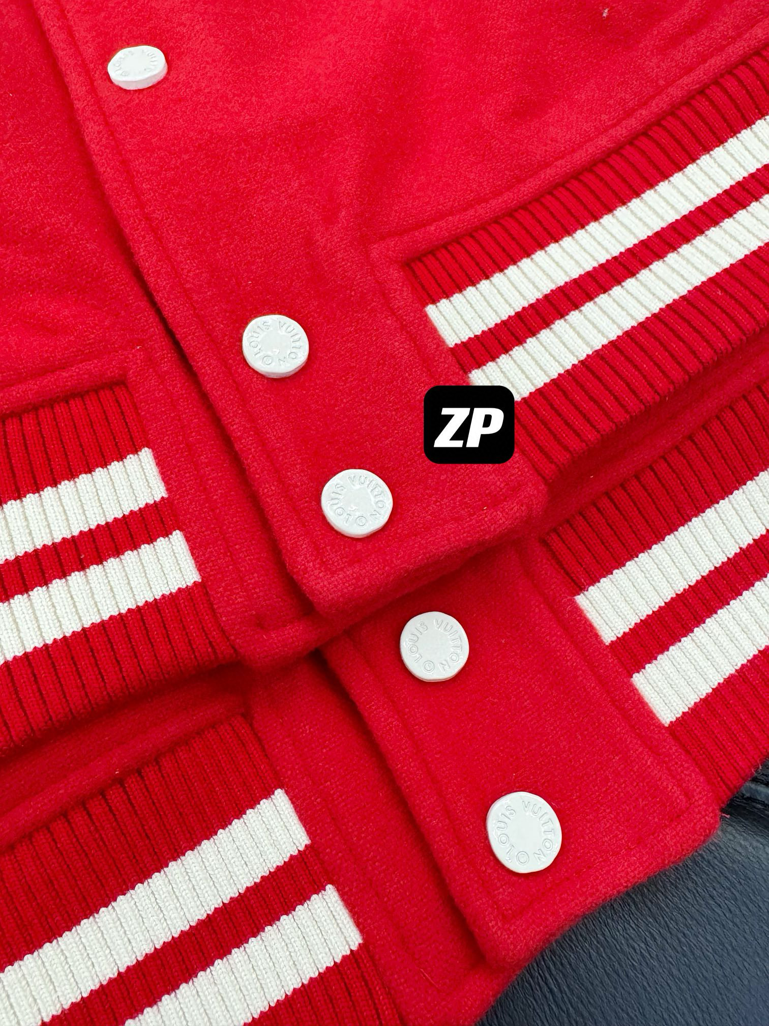 NIGO Louis Vuitton Mix Leather Varsity Blouson Men's and Women's Autumn Winter Color Blocking Embroidery Applique Cowhide Baseball Jacket #nigo97926