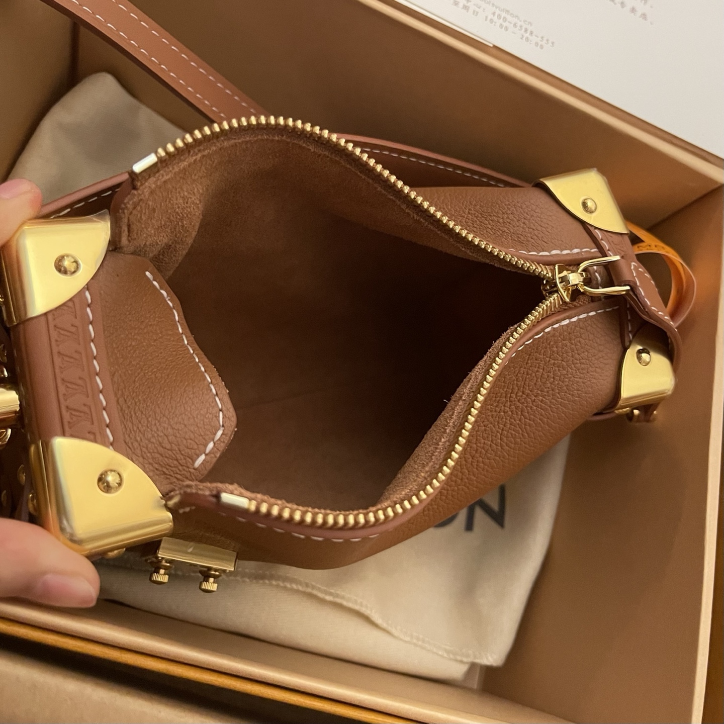 NIGO Louis Vuitton Side Trunk Women's Metal Accessory Zipper Closure Buckle Solid Color Cowhide Leather Shoulder Bag Crossbody Handbag Bags #nigo77791