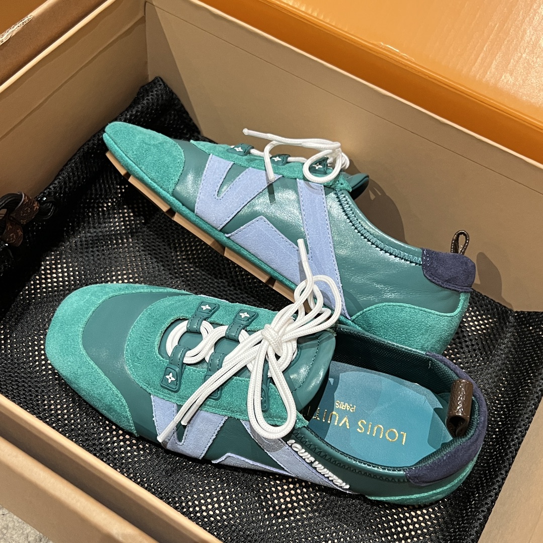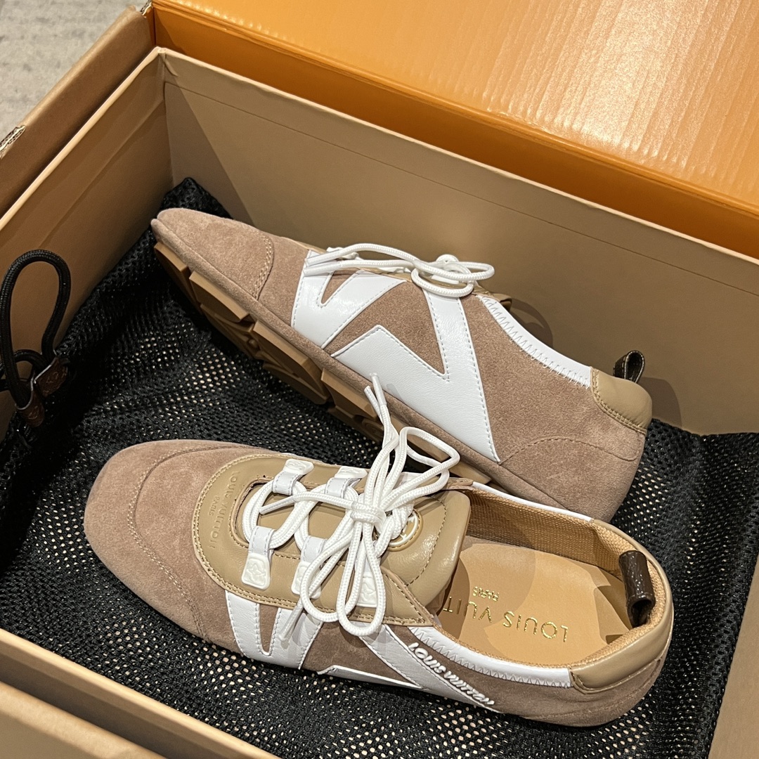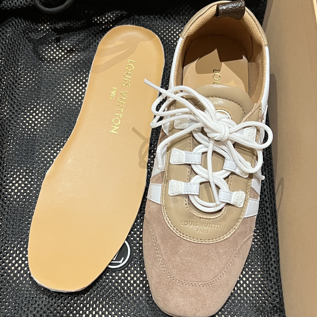 NIGO Louis Vuitton SNEAKERINA Women's Four Seasons Colorblocking Round Toe Lace Up Sheepskin Low Top Ballet Derby Shoes #nigo76465