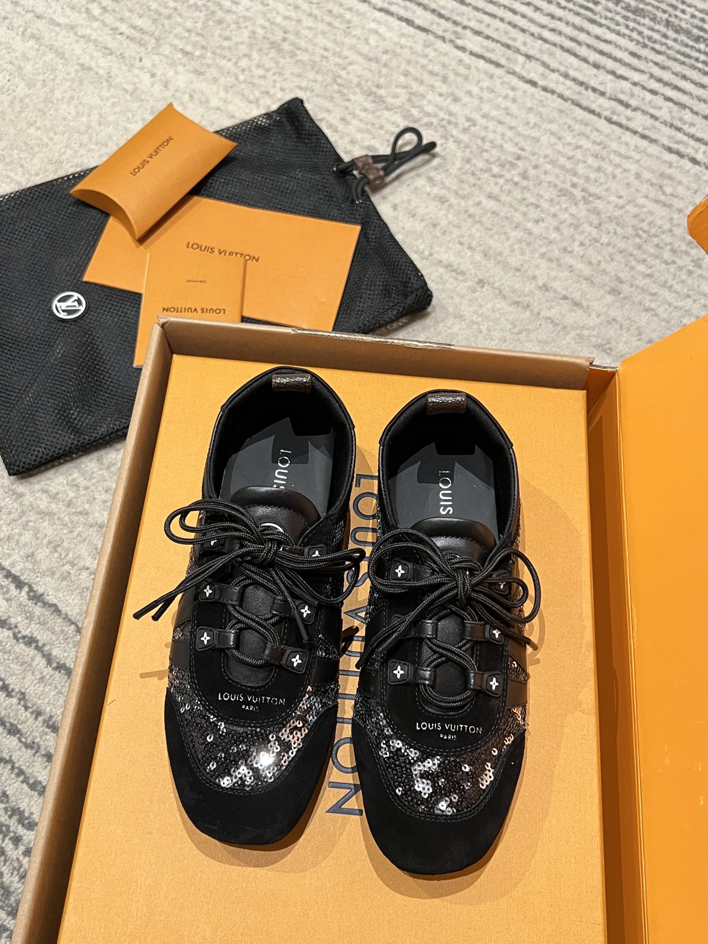 This Louis Vuitton shoes showcases the brand's exceptional craftsmanship and attention to detail. Crafted from premium sheepskin, this piece combines timeless luxury with modern style.