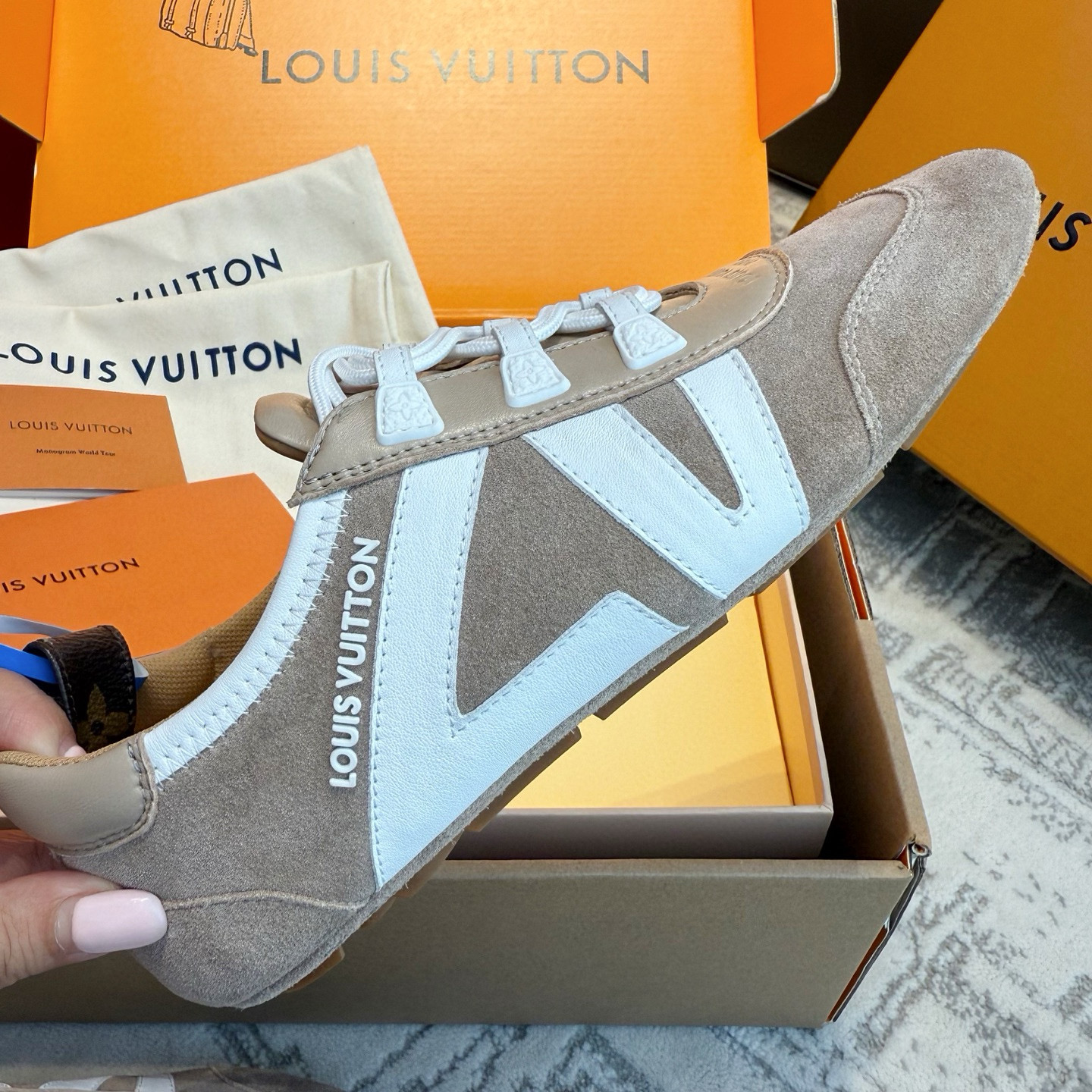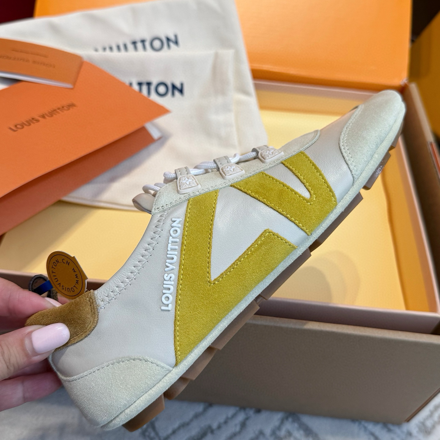 NIGO Louis Vuitton SNEAKERINA Women's Four Seasons Colorblocking Round Toe Lace Up Sheepskin Low Top Ballet Derby Shoes #nigo76939