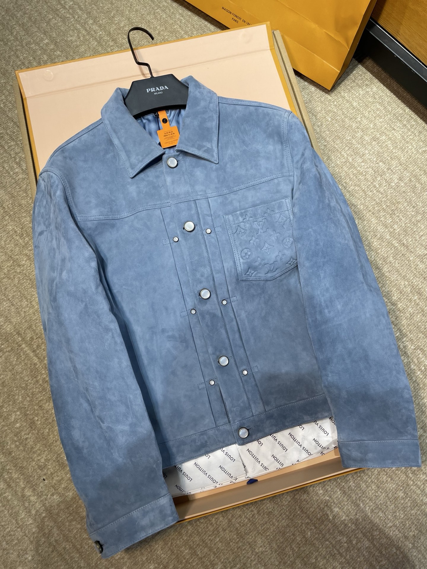 This Louis Vuitton clothing showcases the brand's exceptional craftsmanship and attention to detail. Crafted from premium leather, suede, this piece combines timeless luxury with modern style.