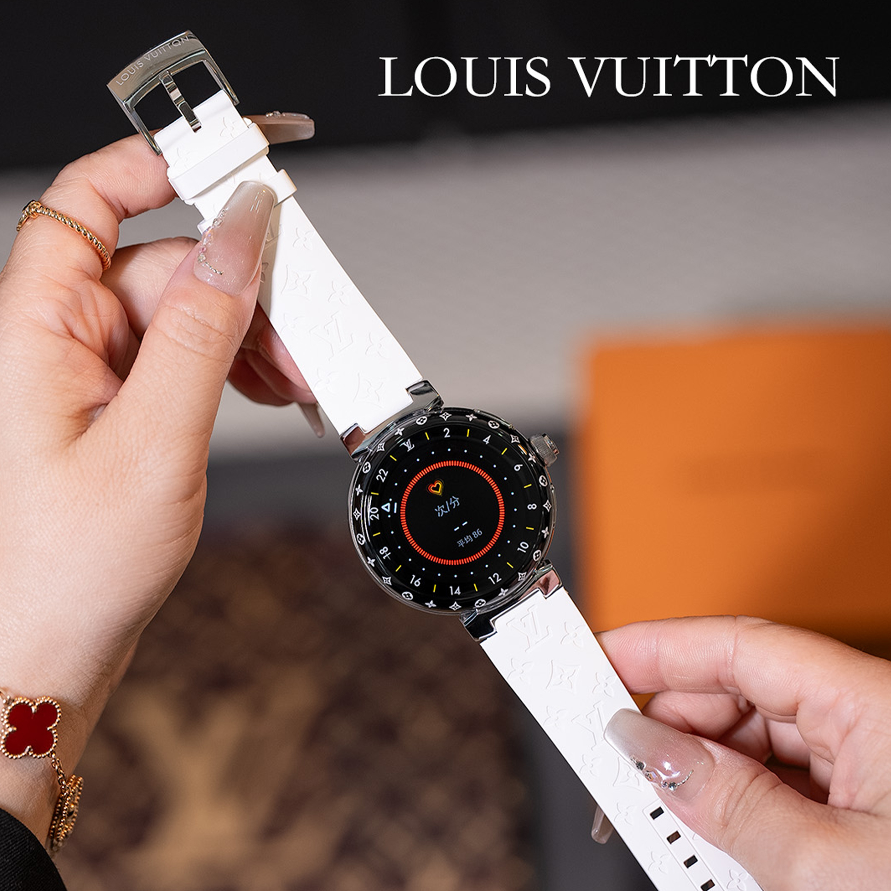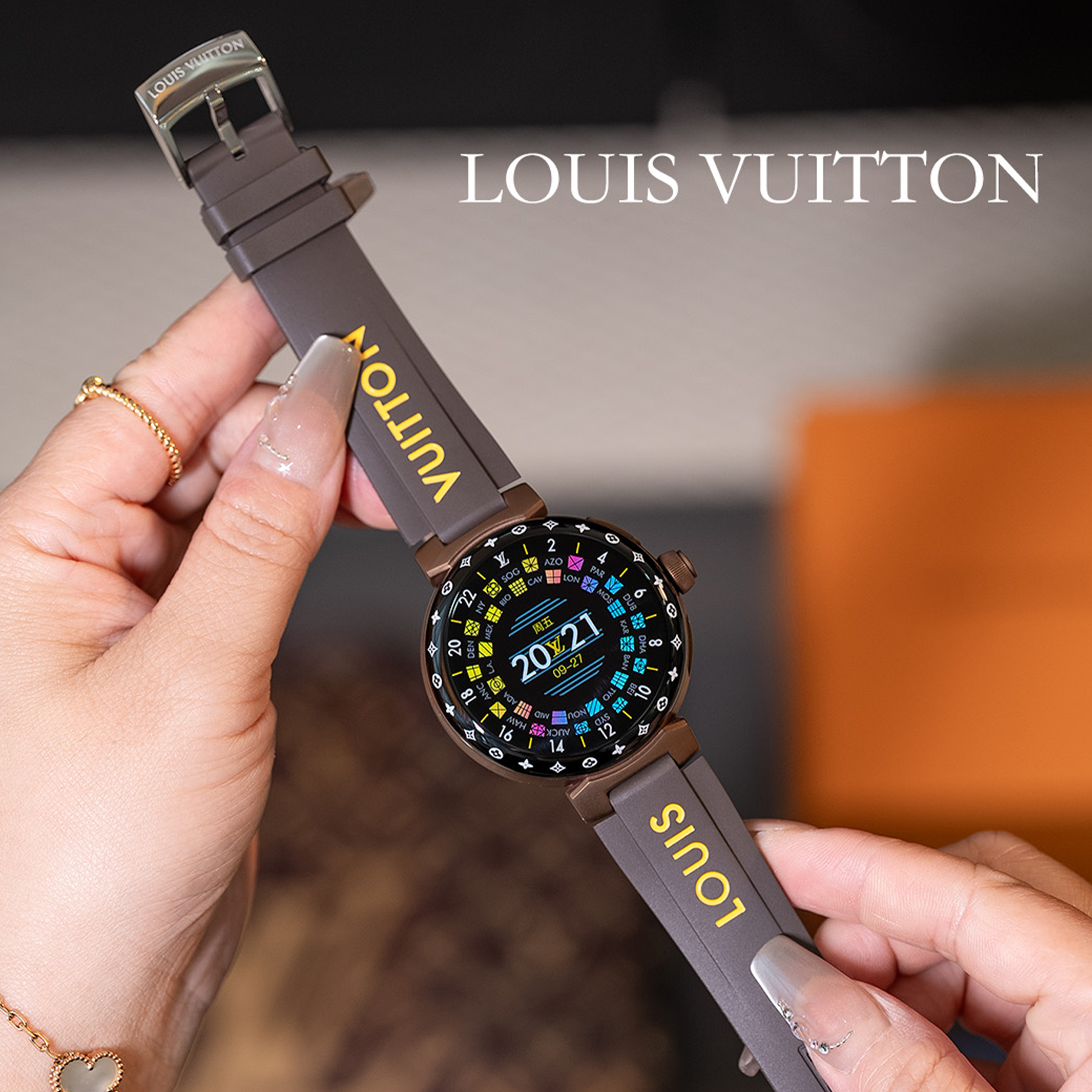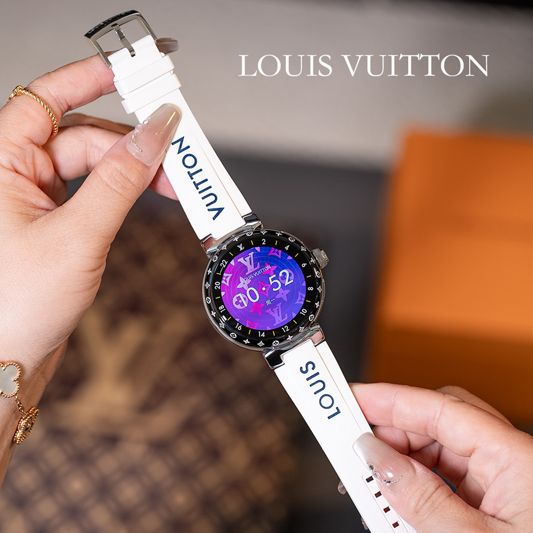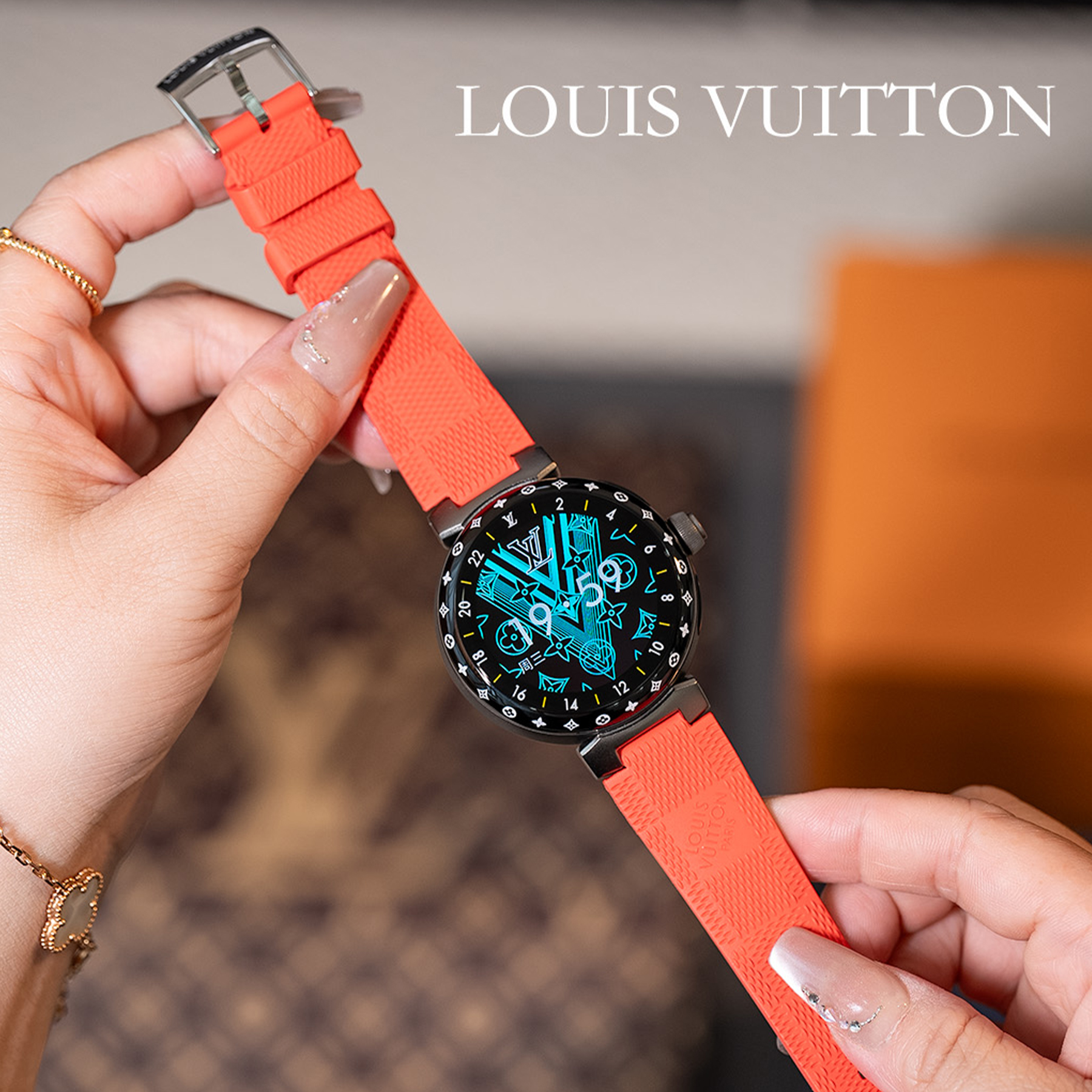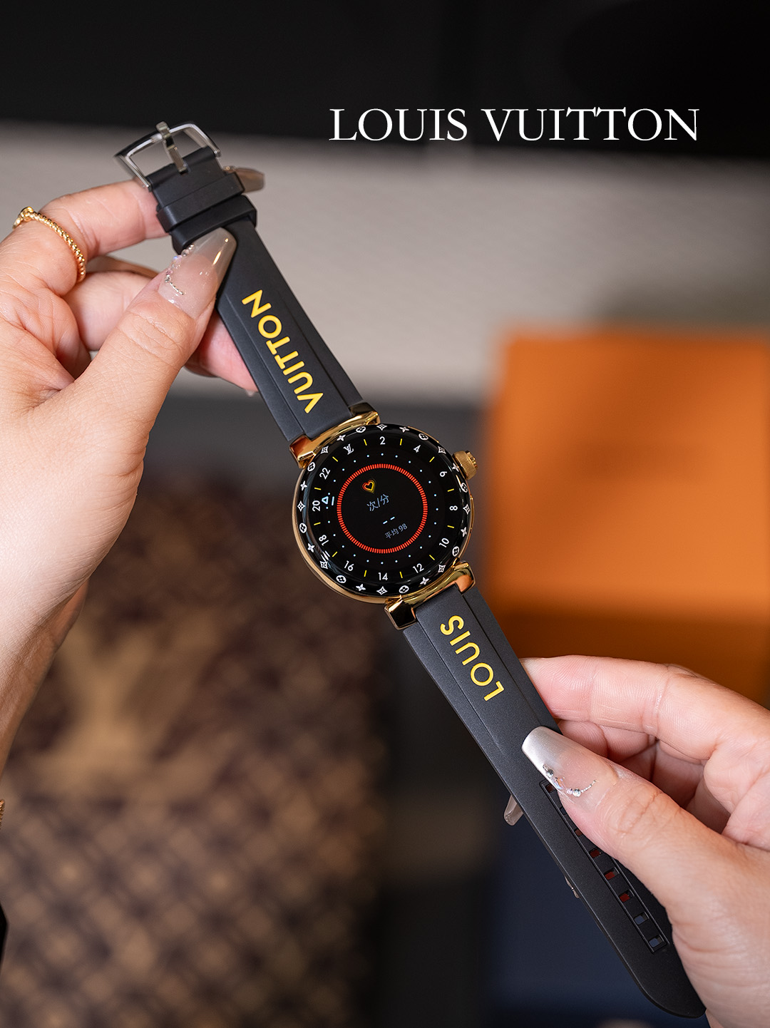 NIGO Louis Vuitton Tambour Horizon Light Up Connected Watch Men's Women's Fashion Accessories Diameter 44mm1.2 Inch Round Amoled Full Touch Screen Resolution 390*390 Sensor Actuator Life Waterproof Smart Watch #nigo81447