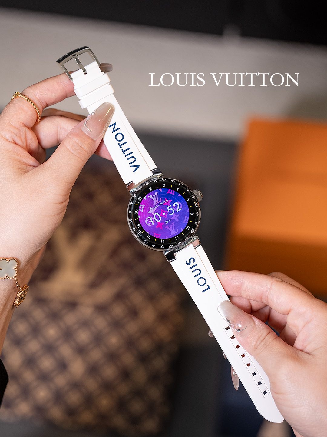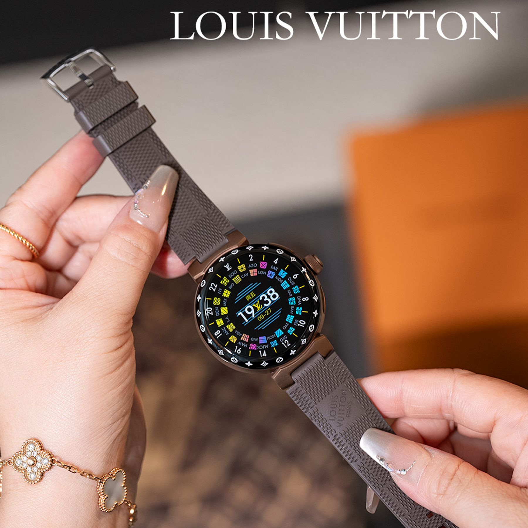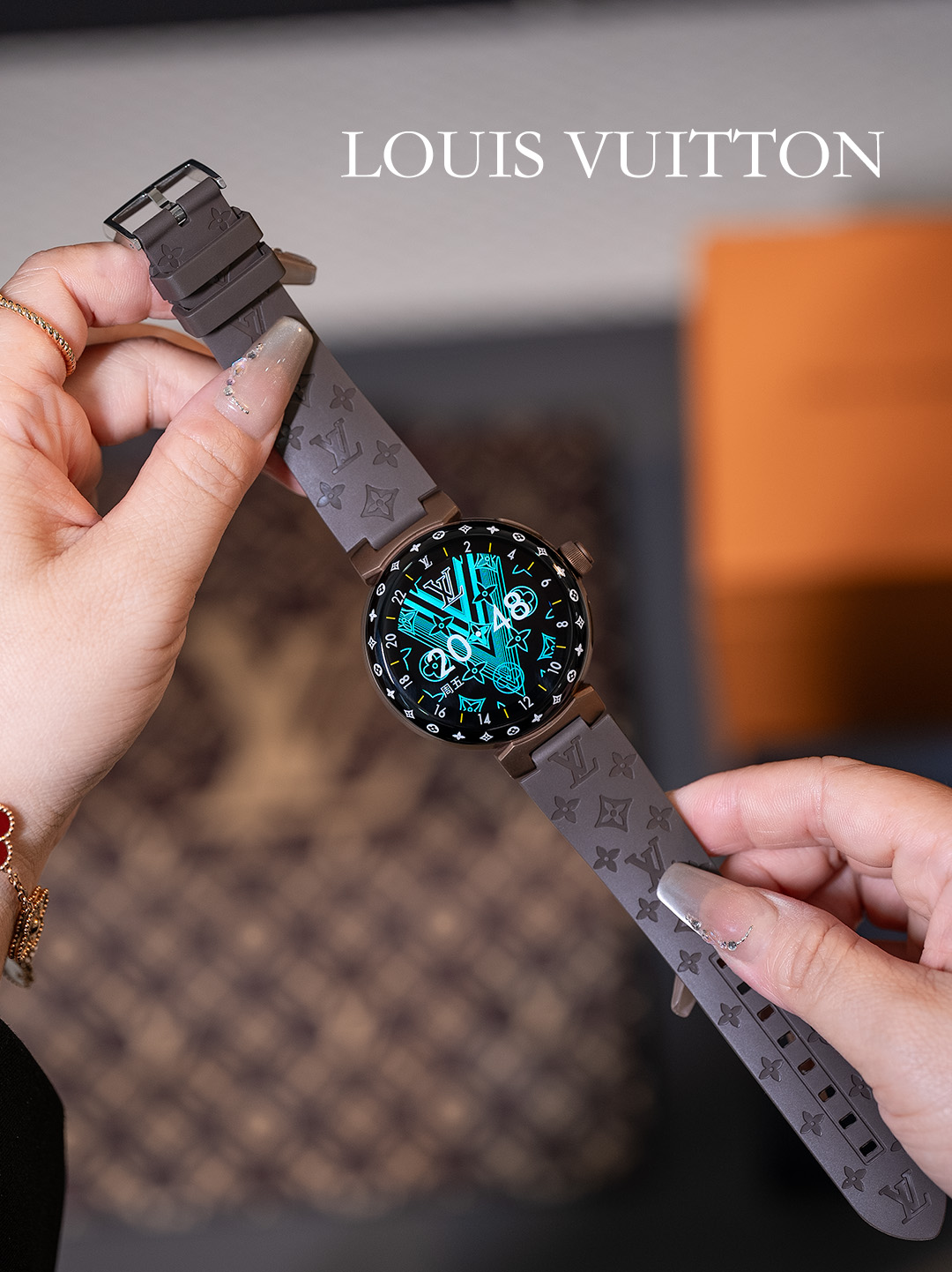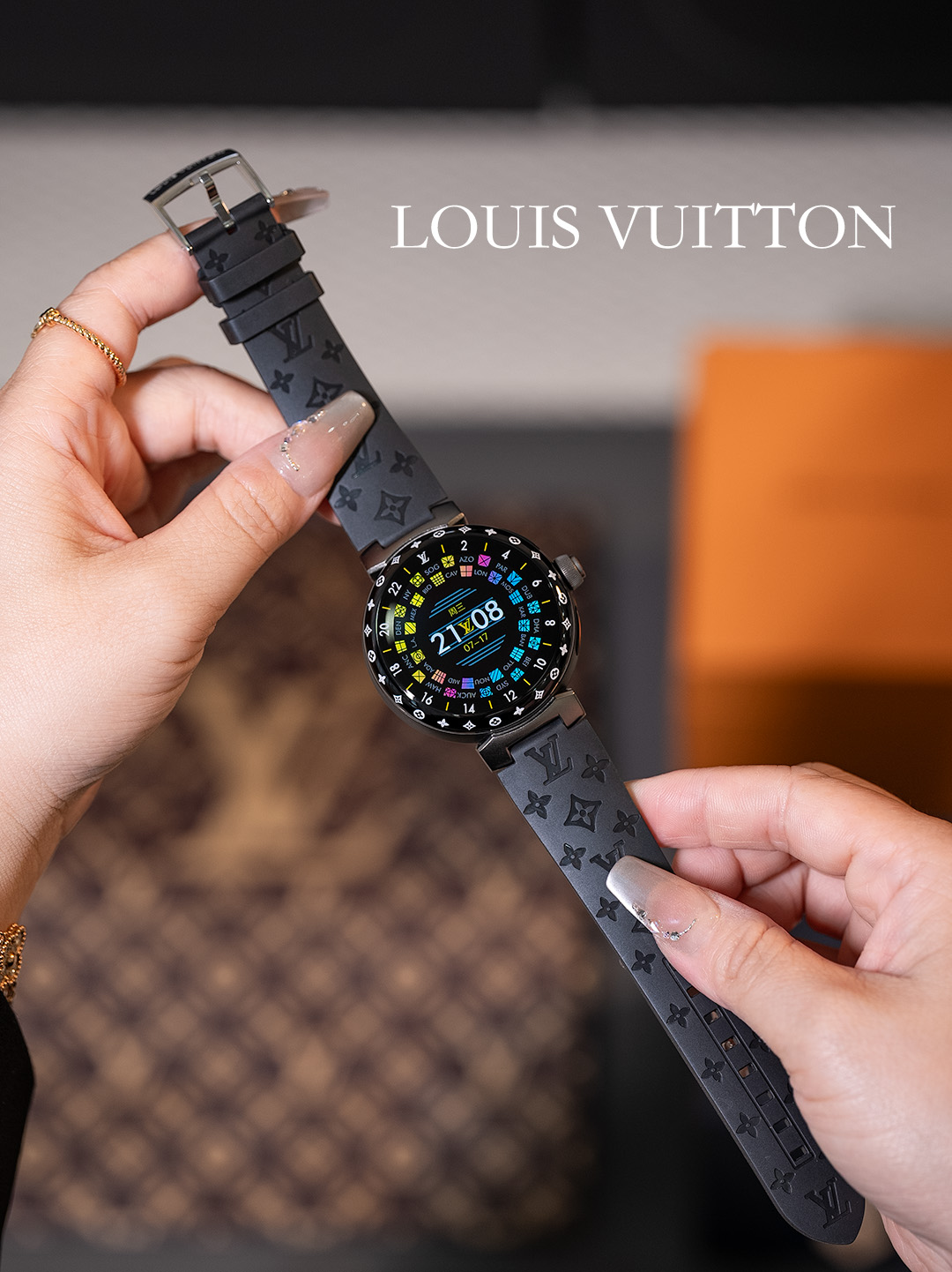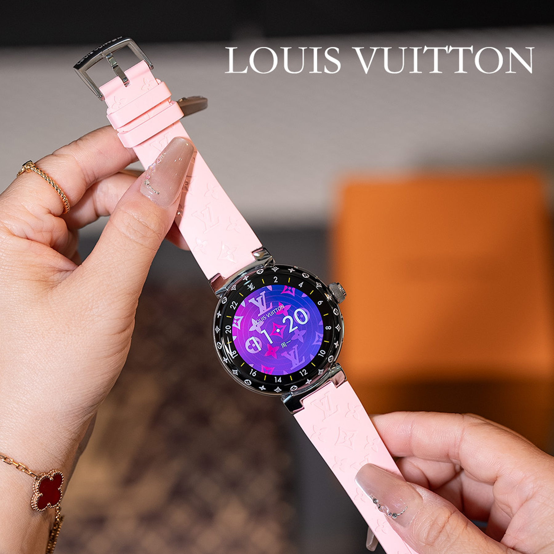NIGO Louis Vuitton Tambour Horizon Light Up Connected Watch Men's Women's Fashion Accessories Diameter 44mm1.2 Inch Round Amoled Full Touch Screen Resolution 390*390 Sensor Actuator Life Waterproof Smart Watch #nigo81447