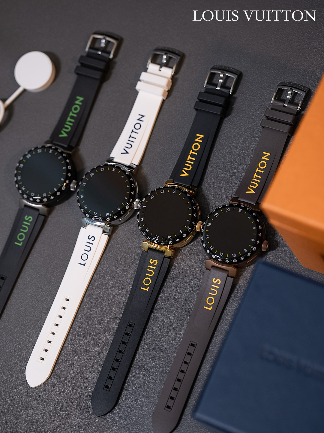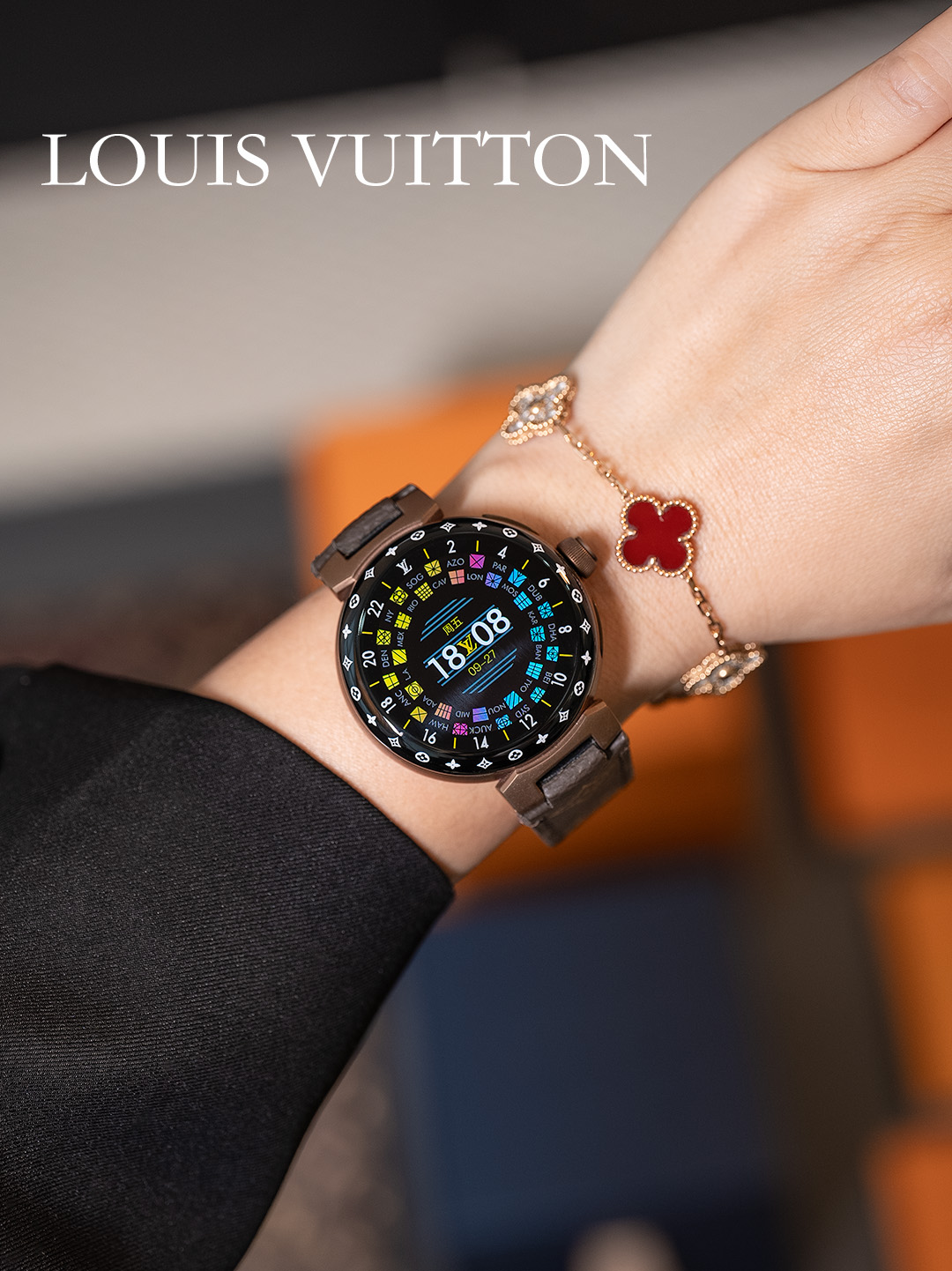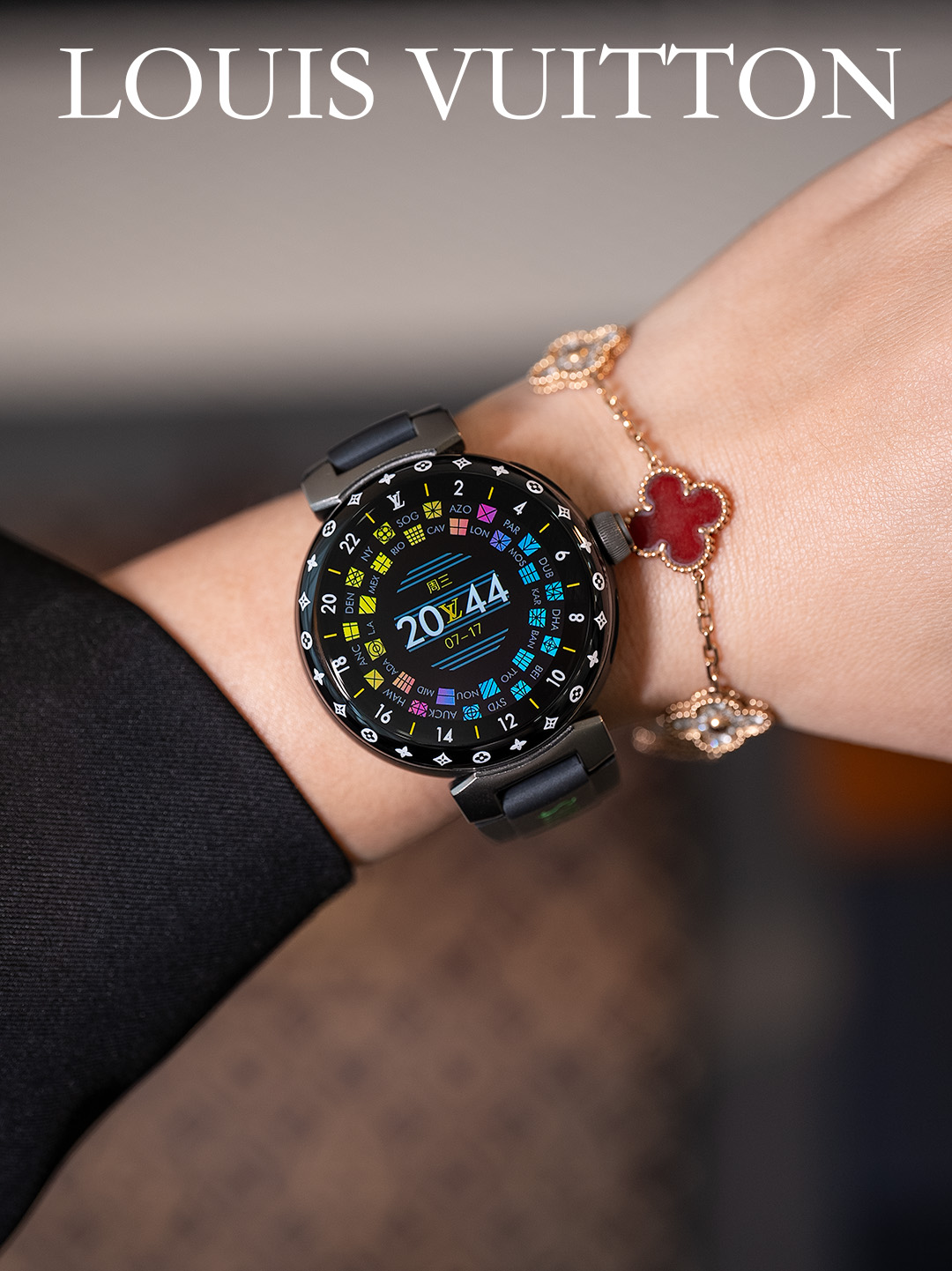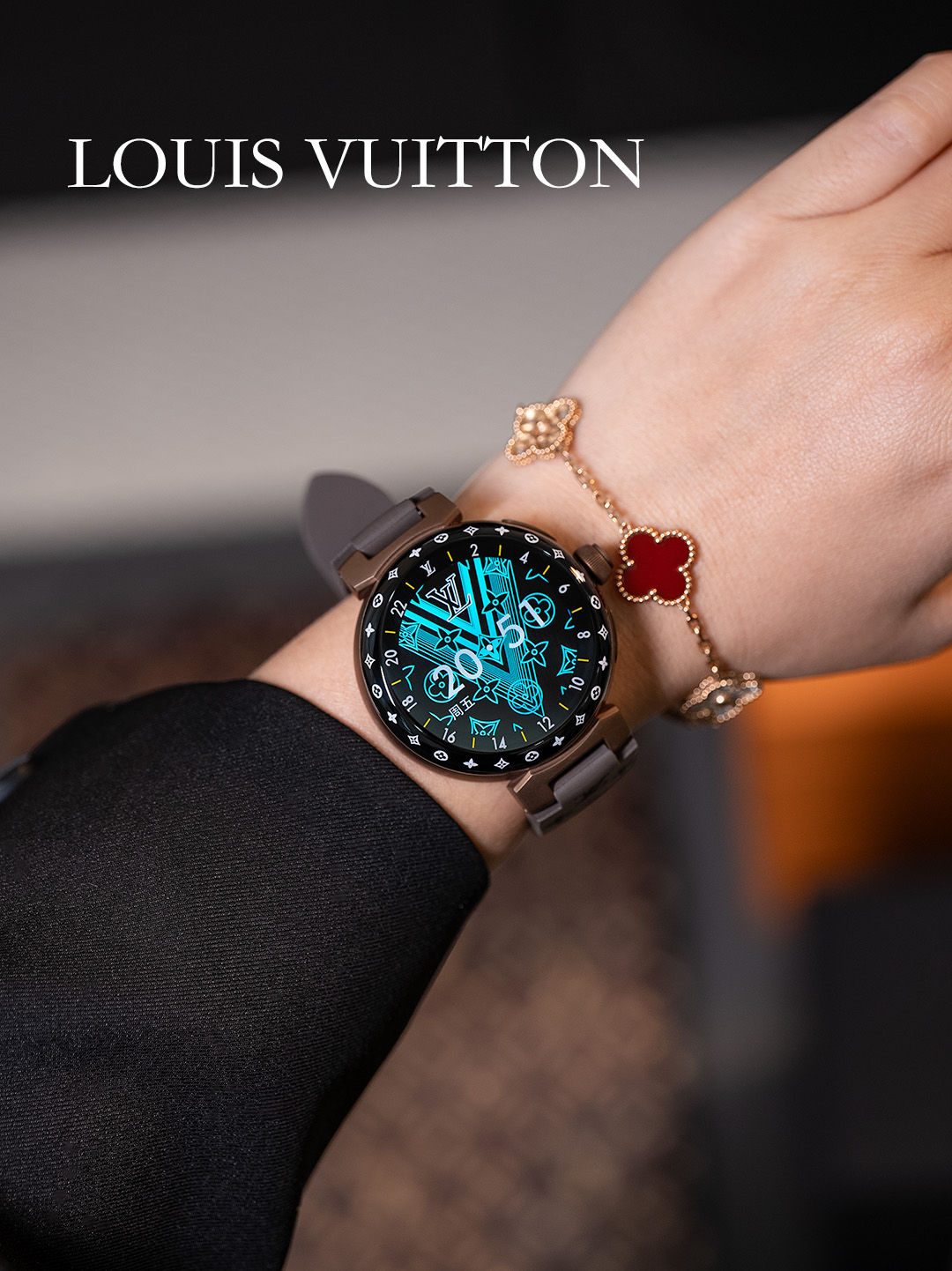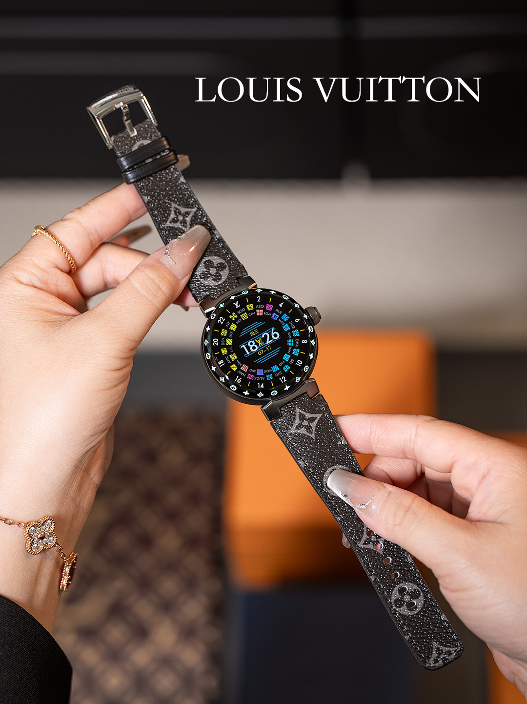 NIGO Louis Vuitton Tambour Horizon Light Up Connected Watch Men's Women's Fashion Accessories Diameter 44mm1.2 Inch Round Amoled Full Touch Screen Resolution 390*390 Sensor Actuator Life Waterproof Smart Watch #nigo81447