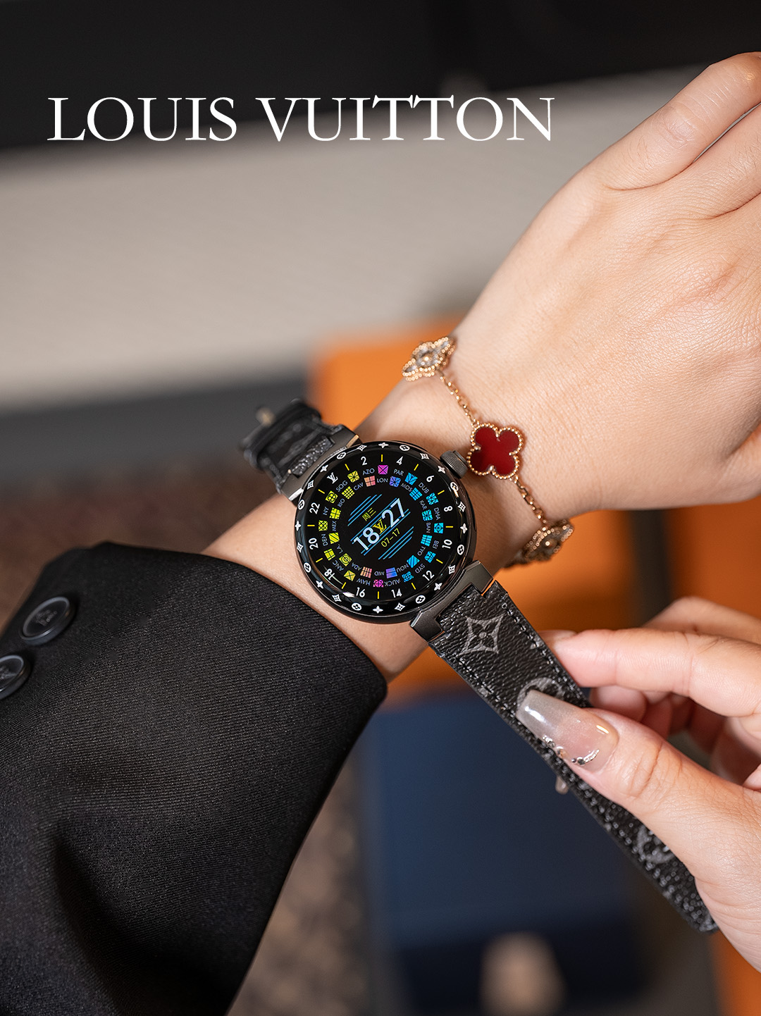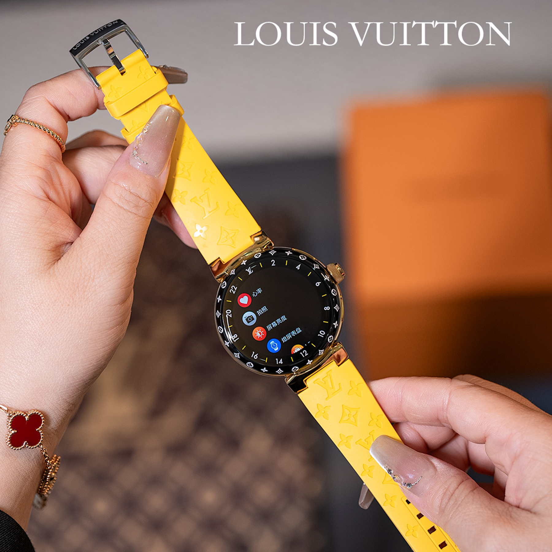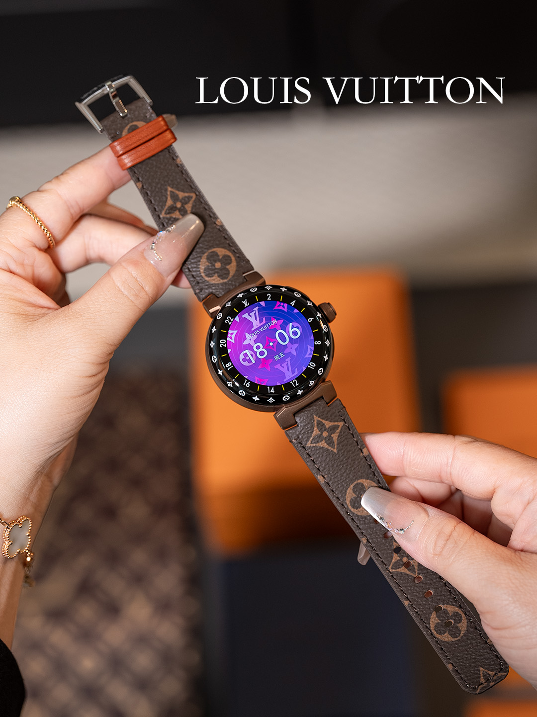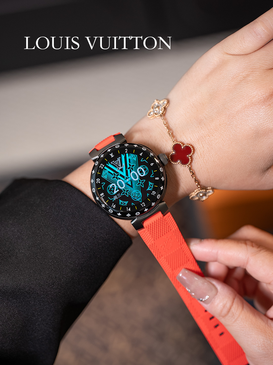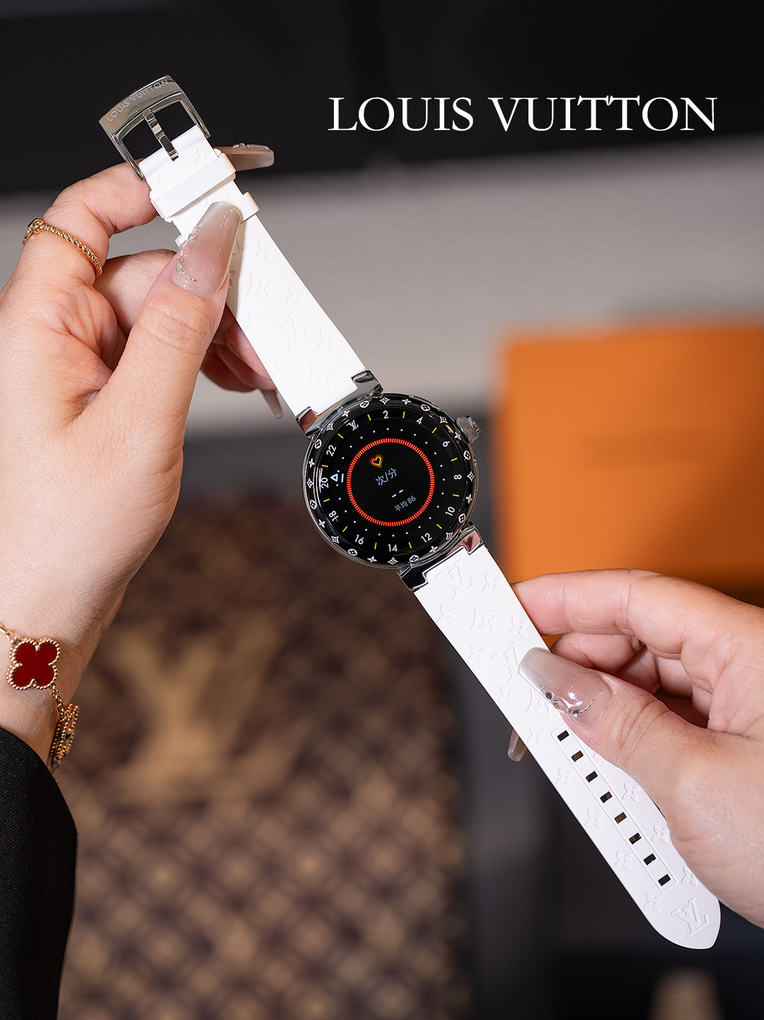 NIGO Louis Vuitton Tambour Horizon Light Up Connected Watch Men's Women's Fashion Accessories Diameter 44mm1.2 Inch Round Amoled Full Touch Screen Resolution 390*390 Sensor Actuator Life Waterproof Smart Watch #nigo81447