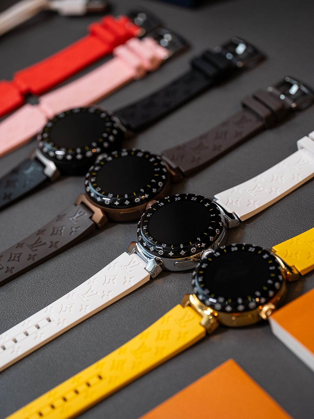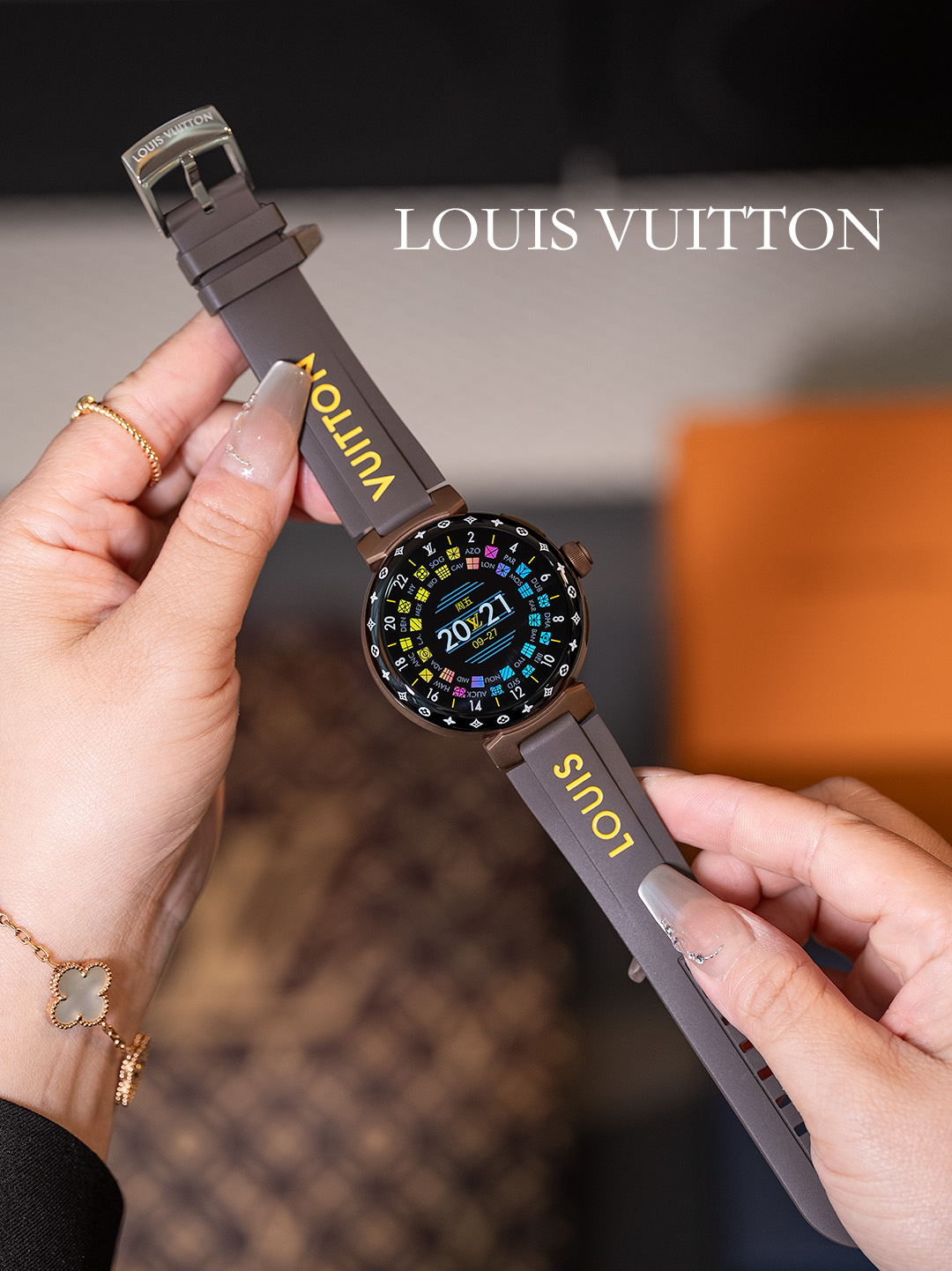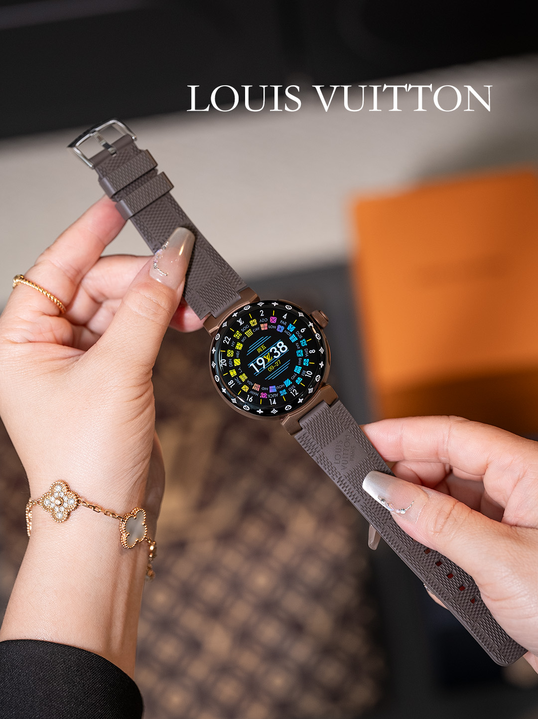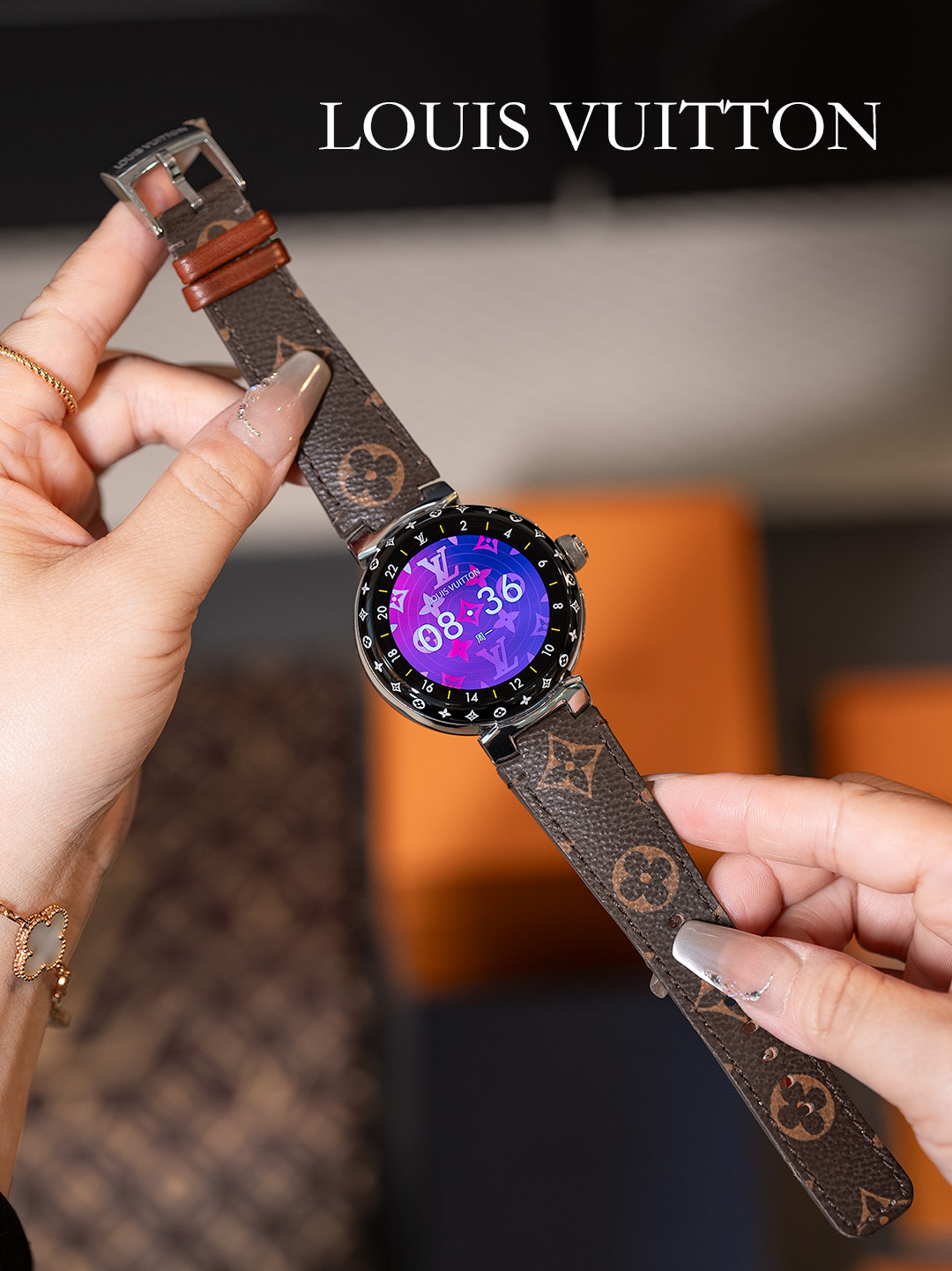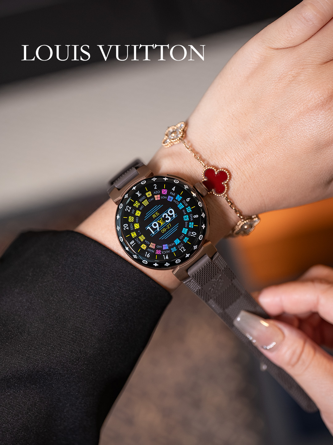 NIGO Louis Vuitton Tambour Horizon Light Up Connected Watch Men's Women's Fashion Accessories Diameter 44mm1.2 Inch Round Amoled Full Touch Screen Resolution 390*390 Sensor Actuator Life Waterproof Smart Watch #nigo81447