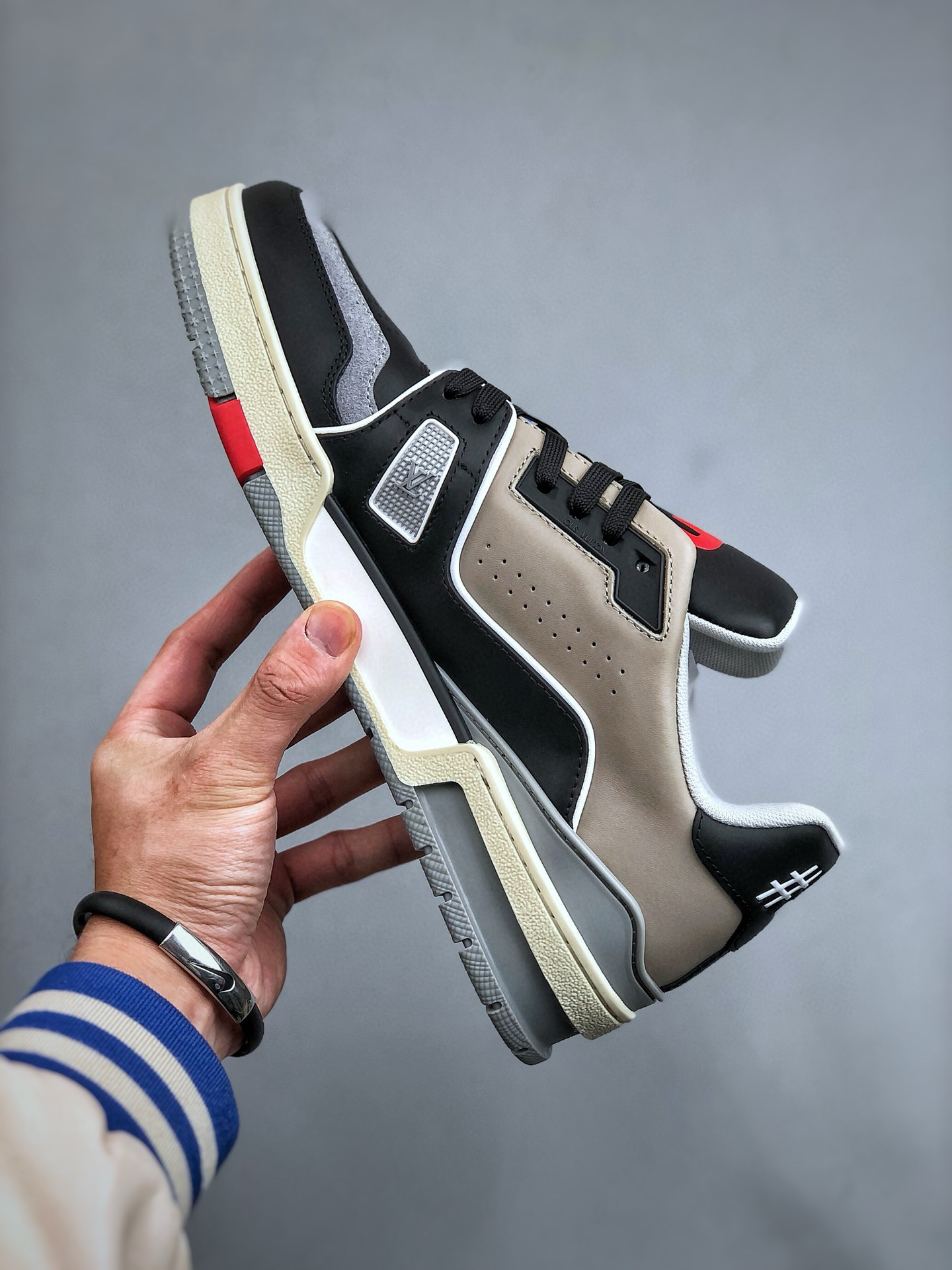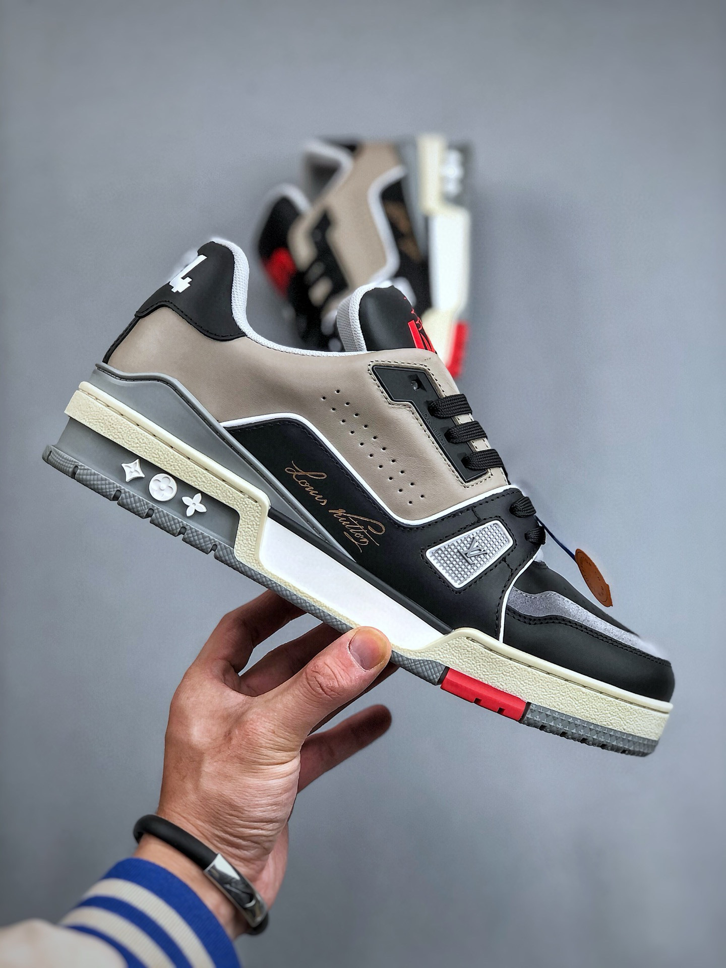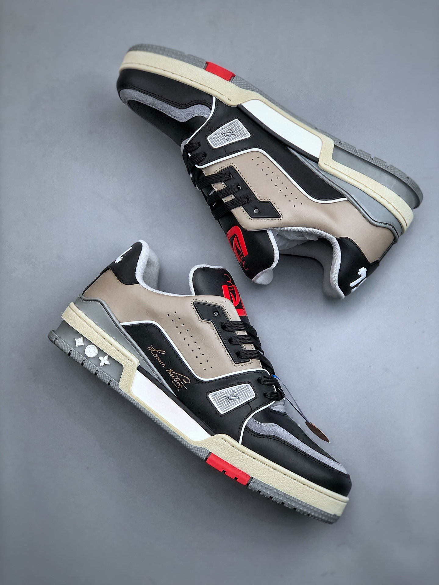 NIGO Louis Vuitton Trainer Men's and Women's Black and White Colorblocking Leather Lace Up Low Top Flat Sneakers #nigo98219
