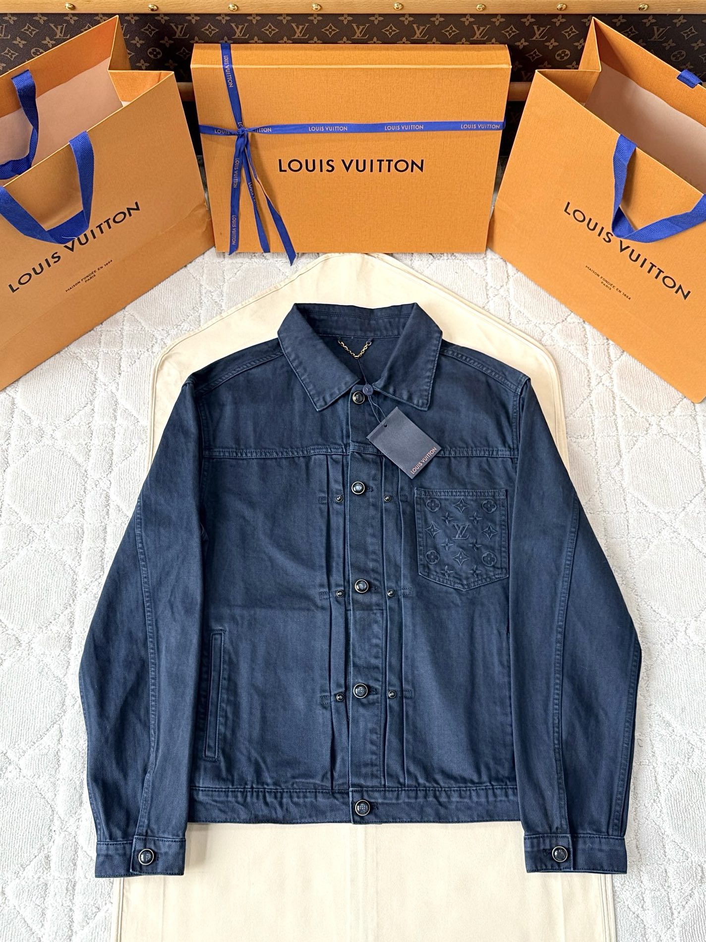 NIGO Louis Vuitton TYPE II Men's Spring/Autumn Solid Colour Embroidered Letter Print Pocket Single-Breasted Long-Sleeved Denim Jacket and Casual Denim Trousers Pants Set Suit #nigo77715