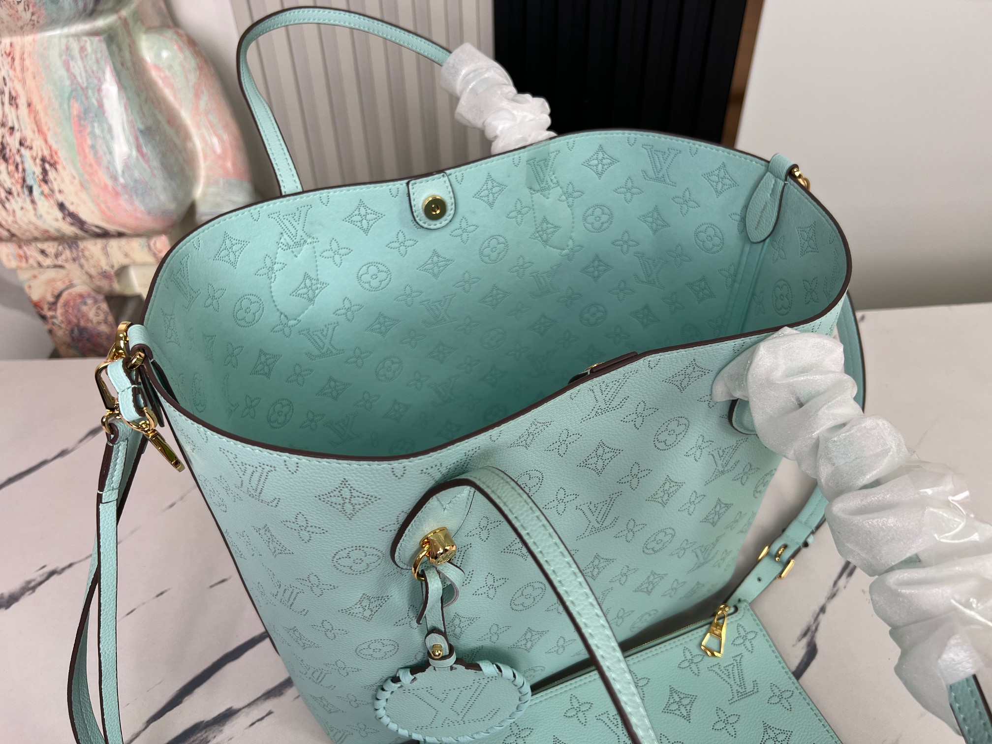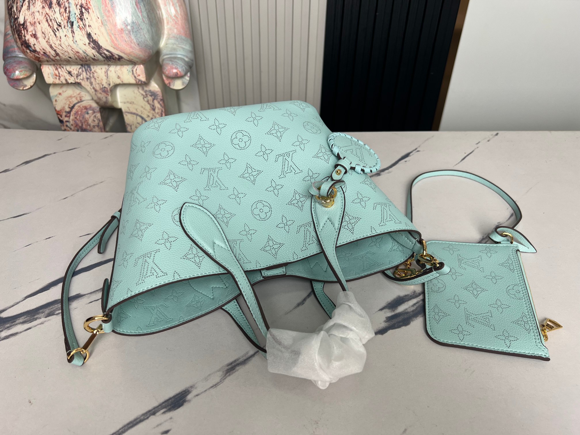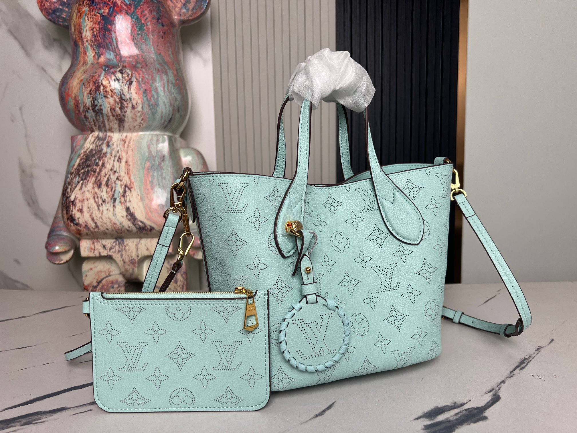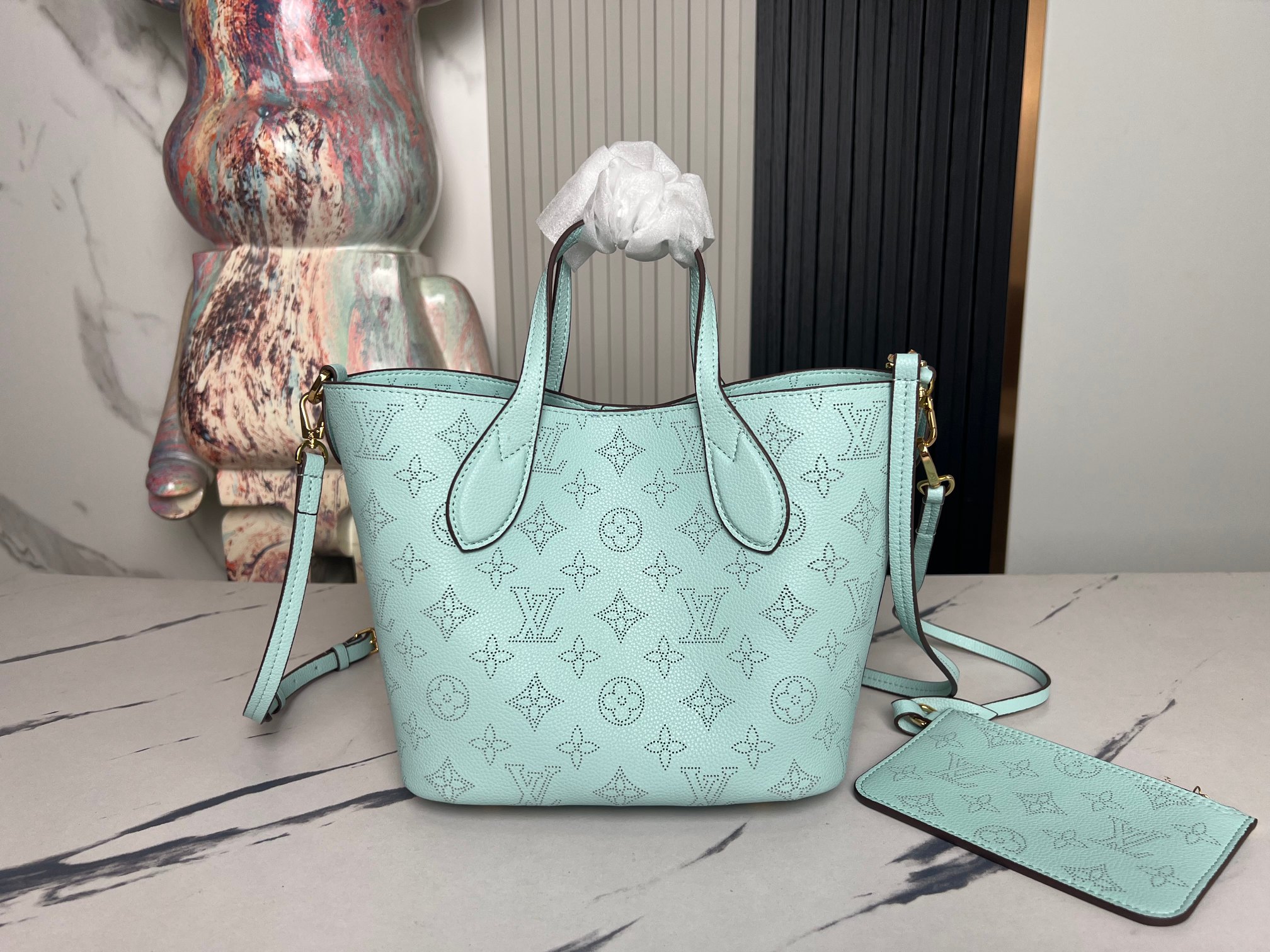 NIGO Louis Vuitton Women's Fashion BLOSSOM Handbag Adjustable Shoulder Strap Perforated Logo Casual Leather Solid Color Bucket Bag #nigo71515
