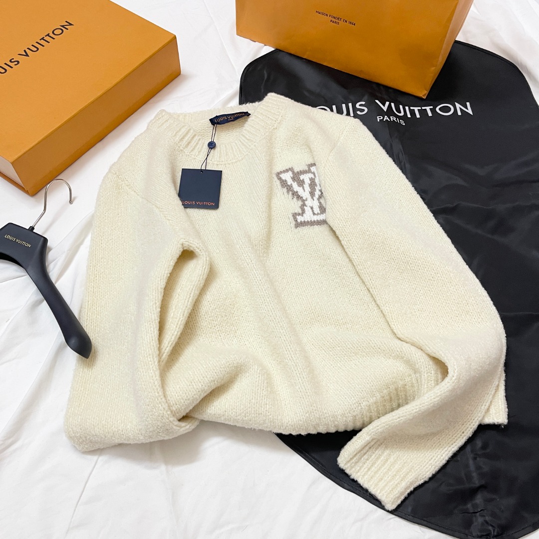 NIGO Louis Vuitton Women's Spring and Autumn Solid Color Letter Applique Crew Neck Knitted Sweater #nigo74948