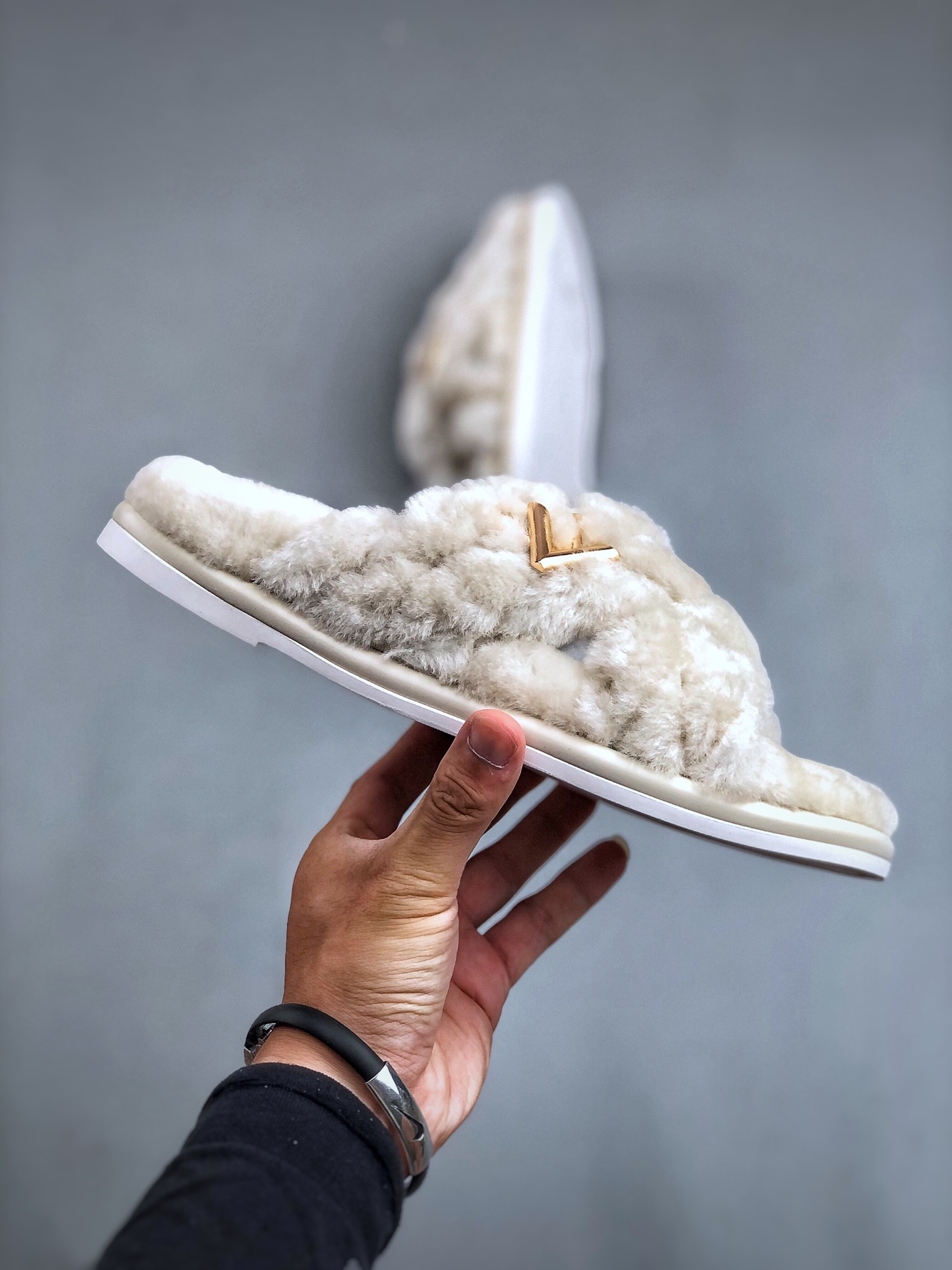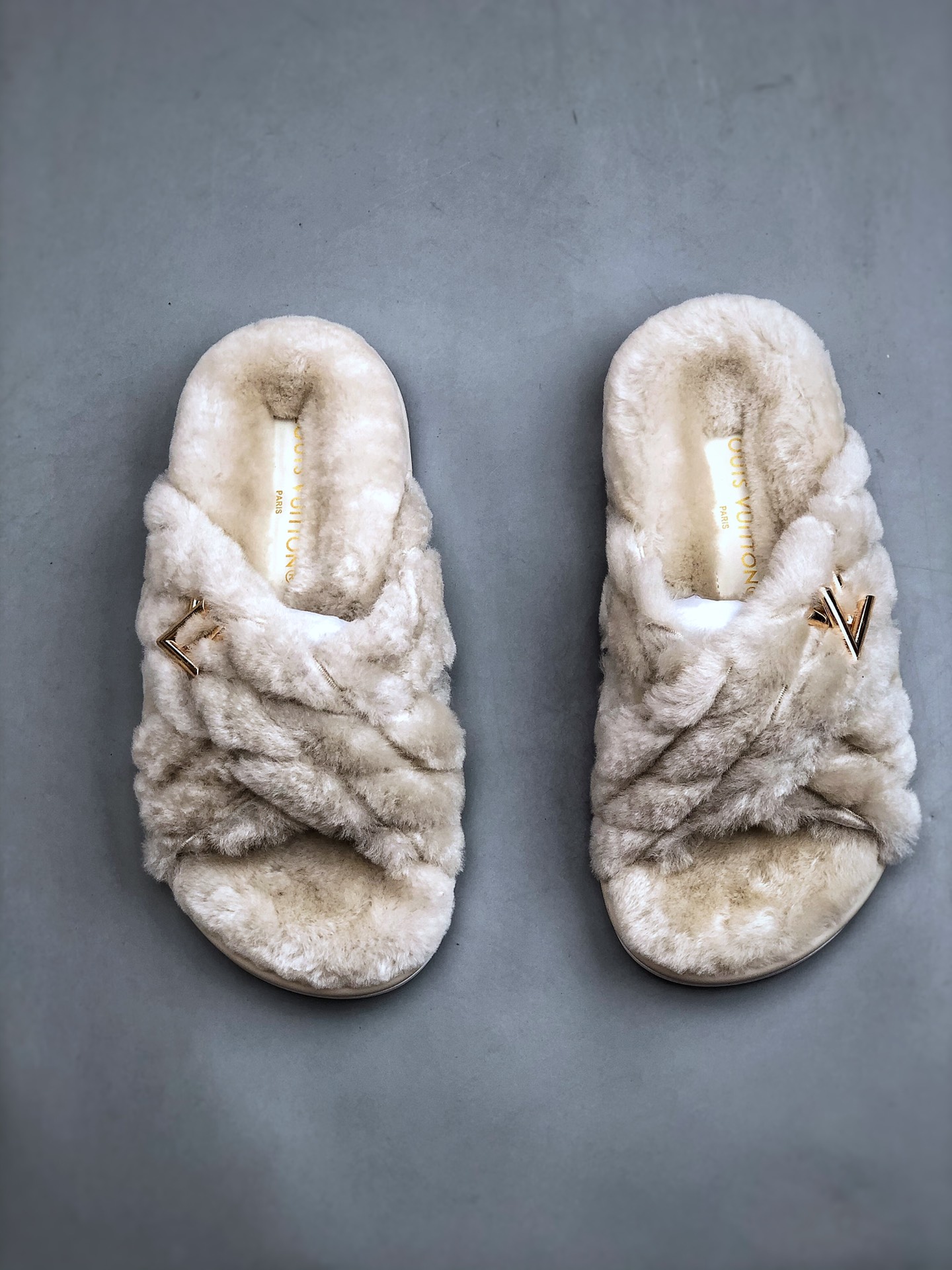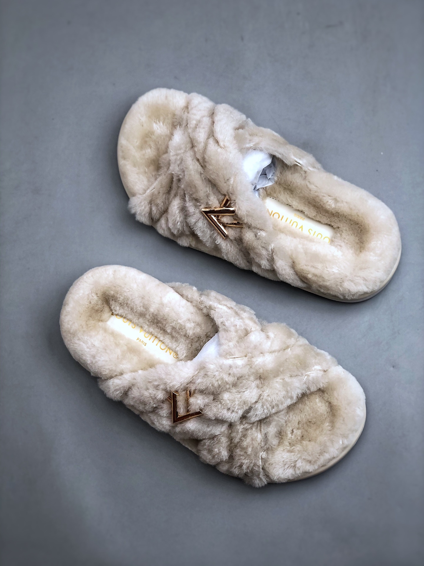 NIGO Louis Vuitton Women's Spring and Autumn Solid Color Wool Leather Upper Letter Metal Decoration Flat Bottom One Slippers Shoes #nigo73215