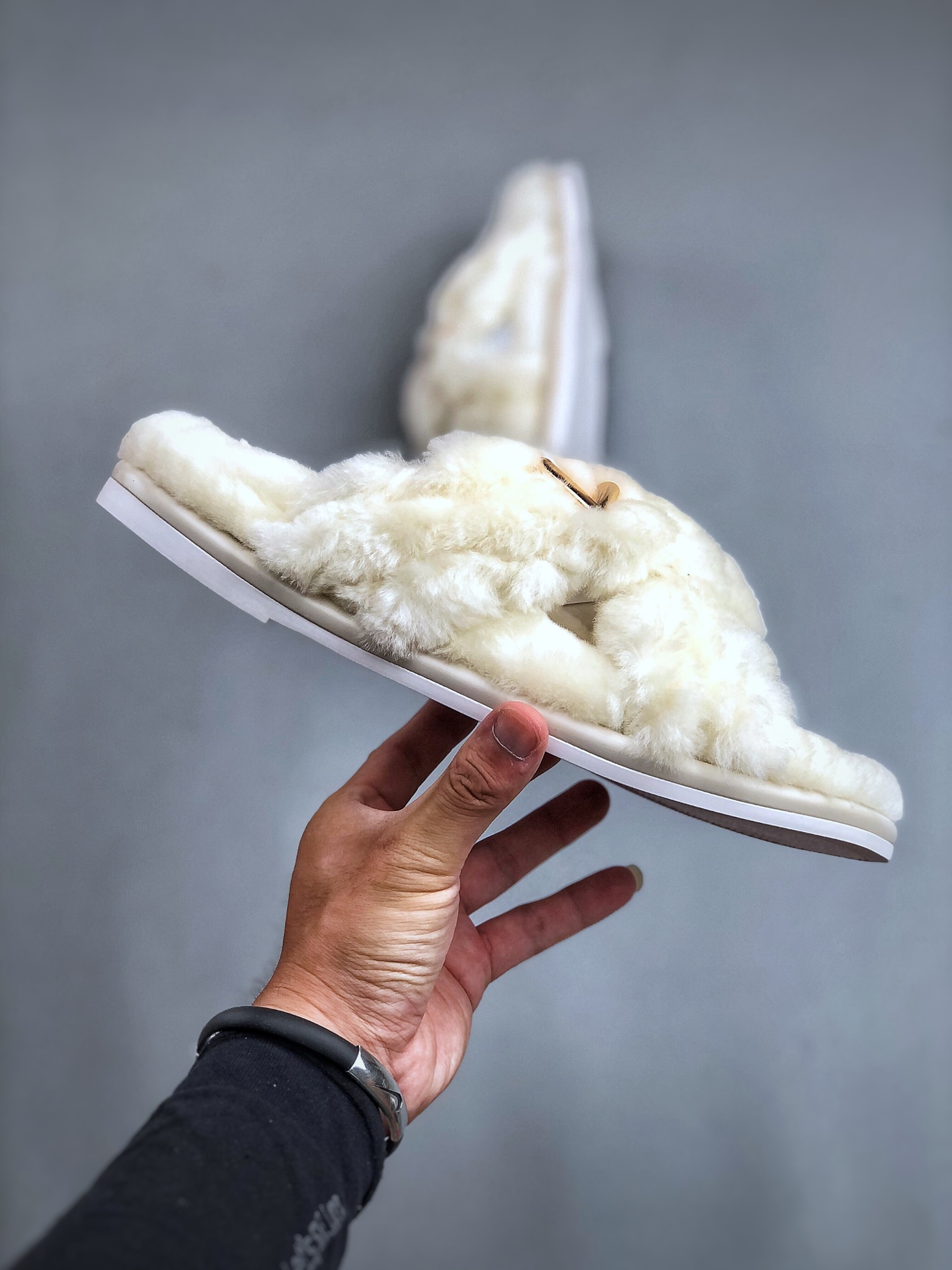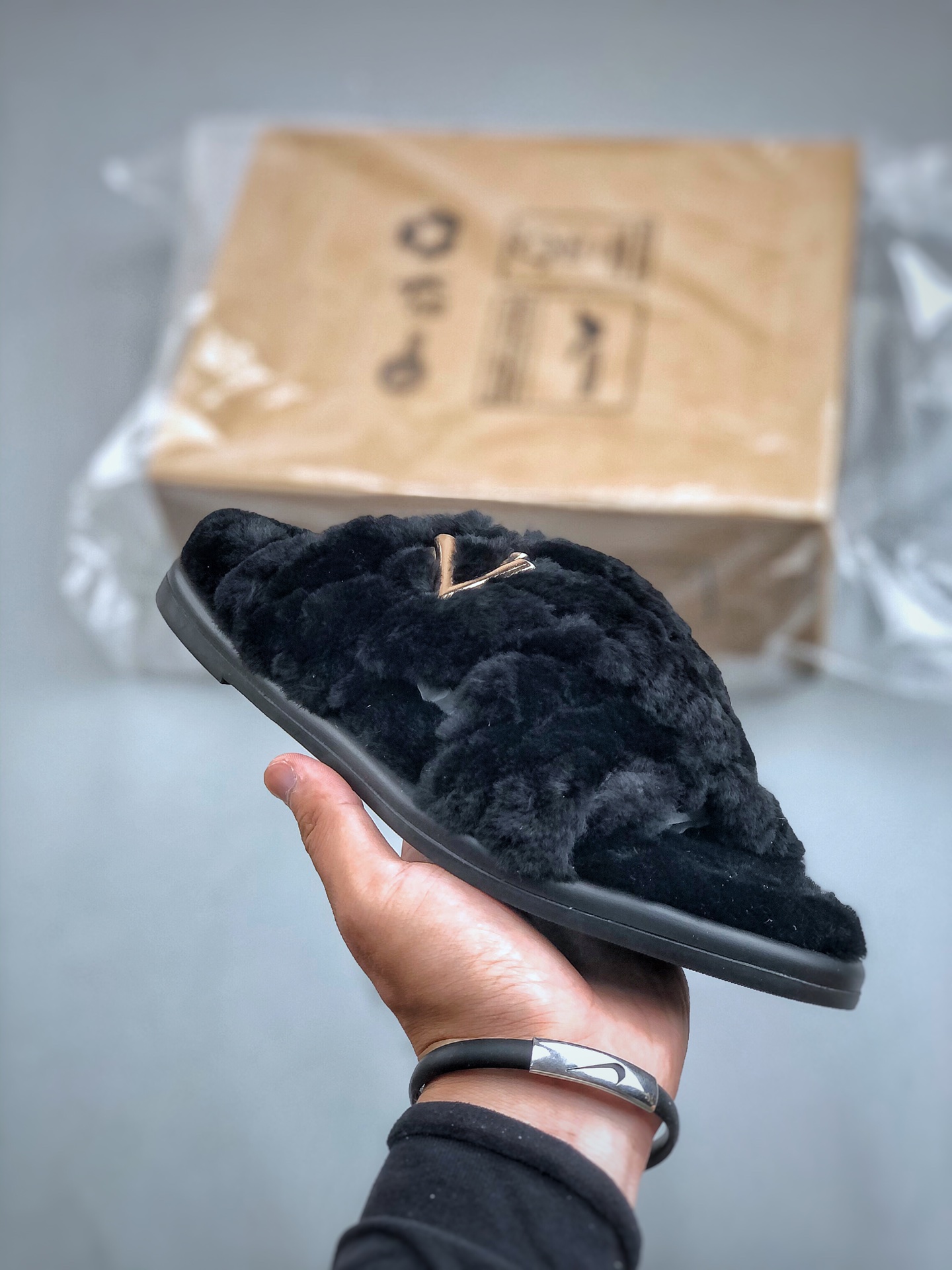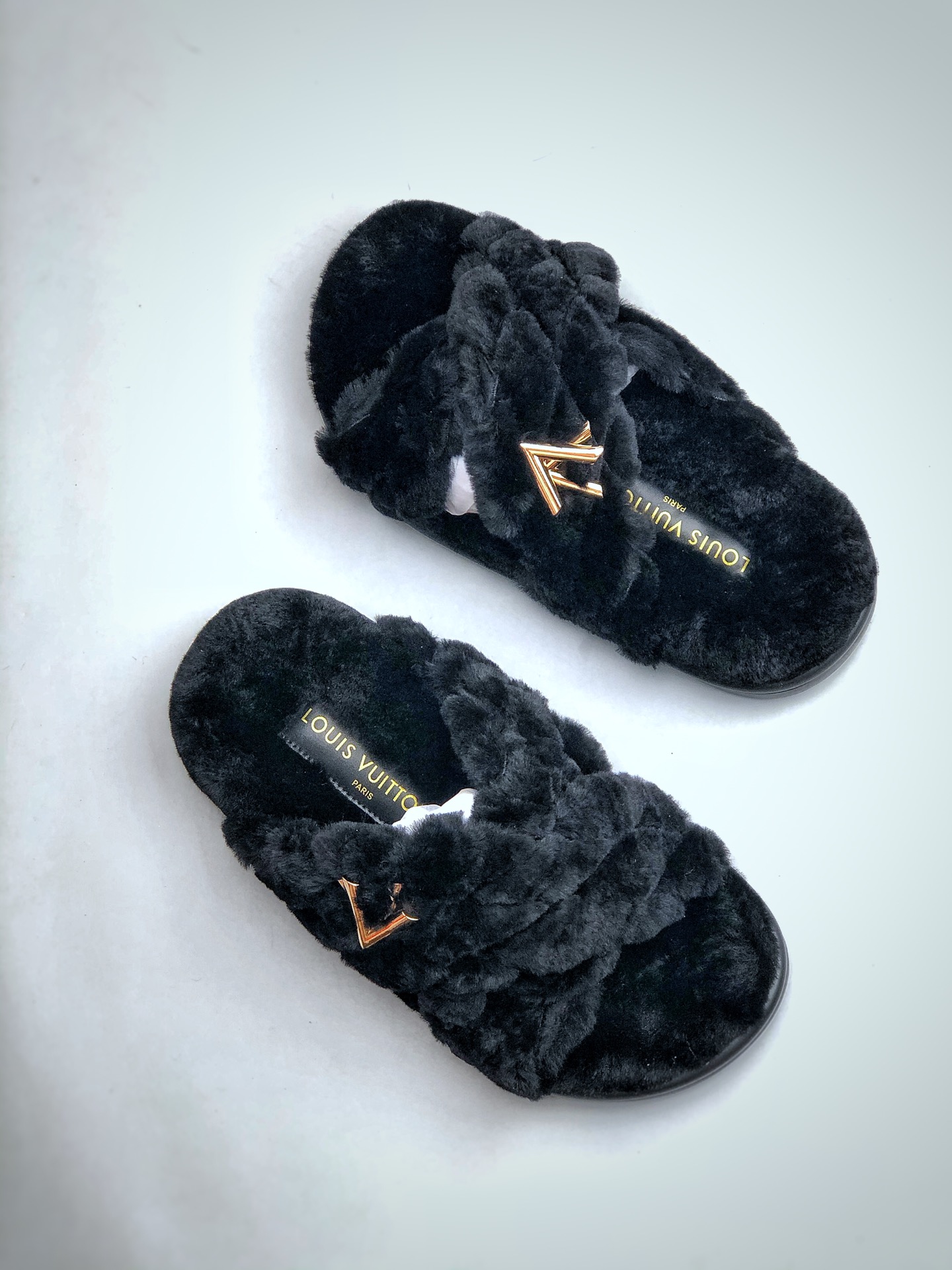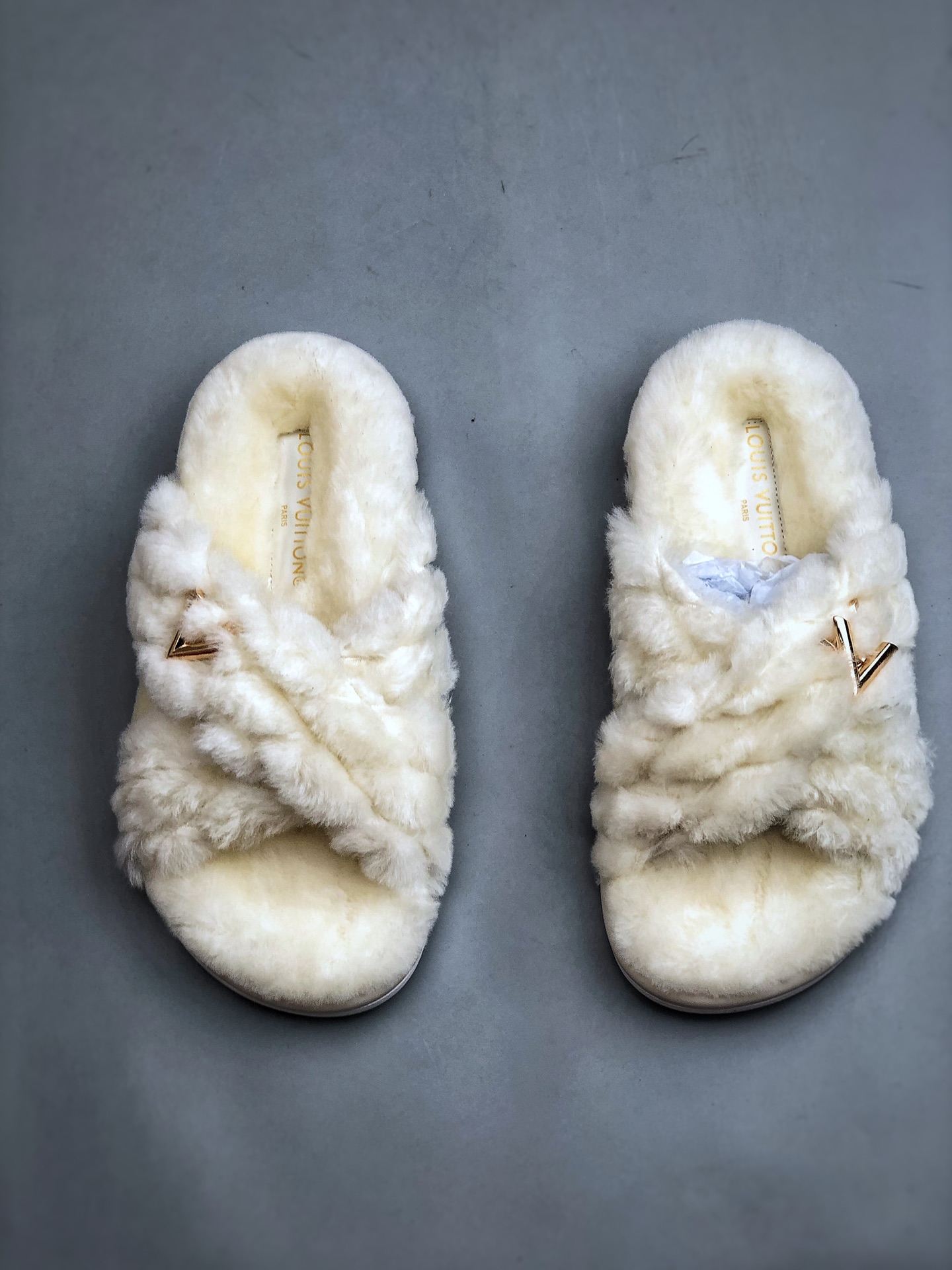 NIGO Louis Vuitton Women's Spring and Autumn Solid Color Wool Leather Upper Letter Metal Decoration Flat Bottom One Slippers Shoes #nigo73215