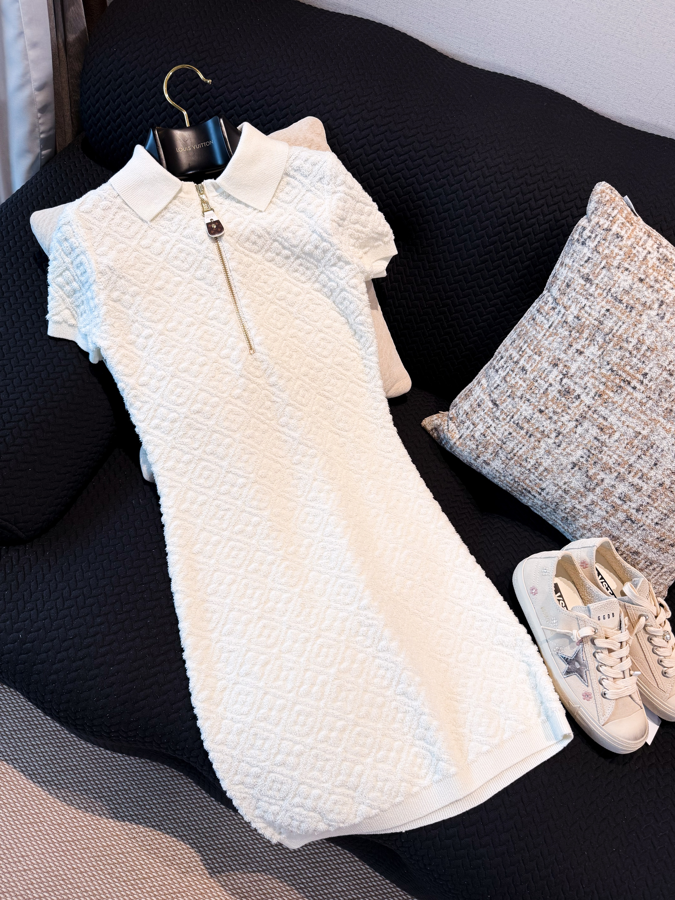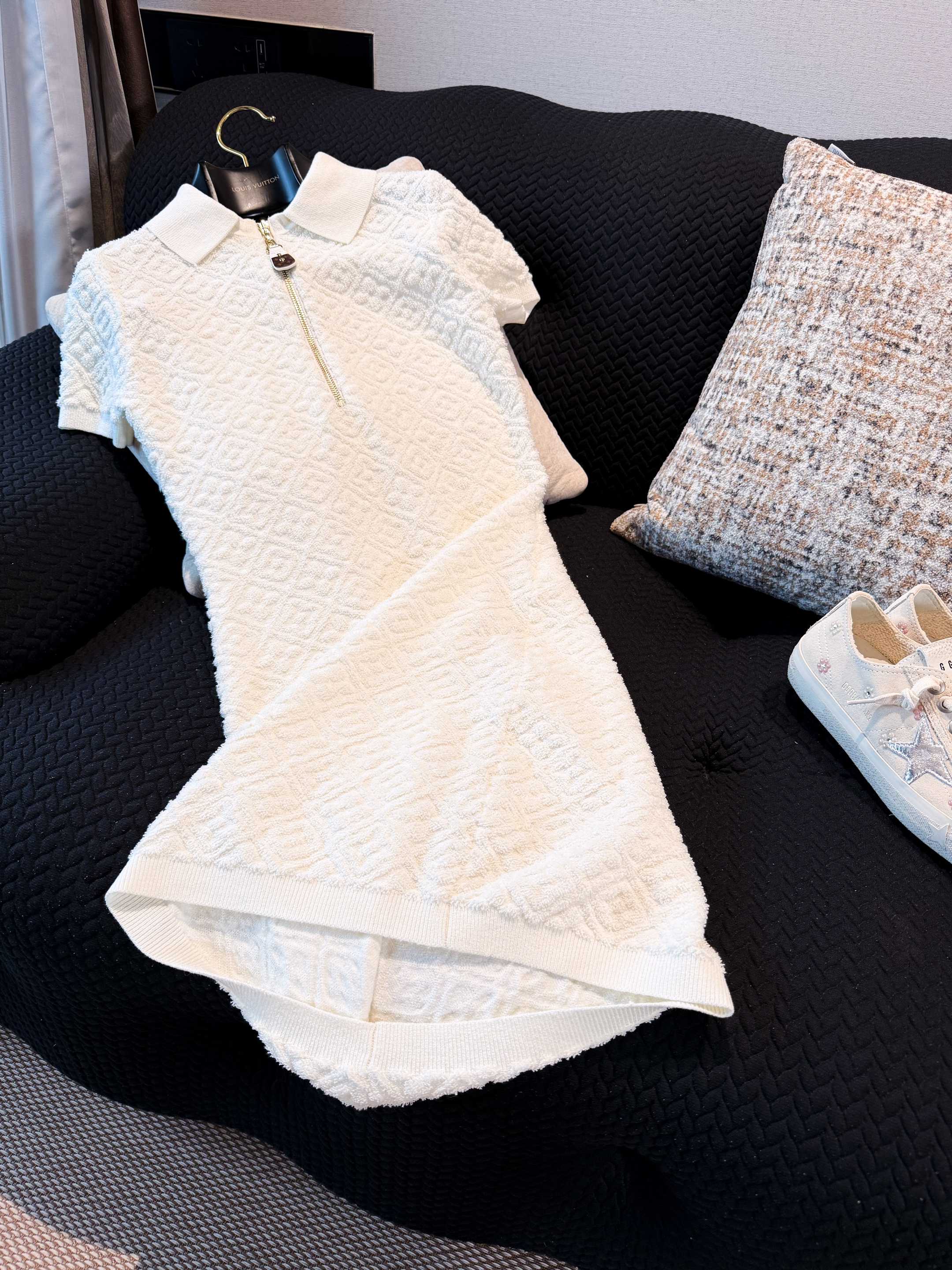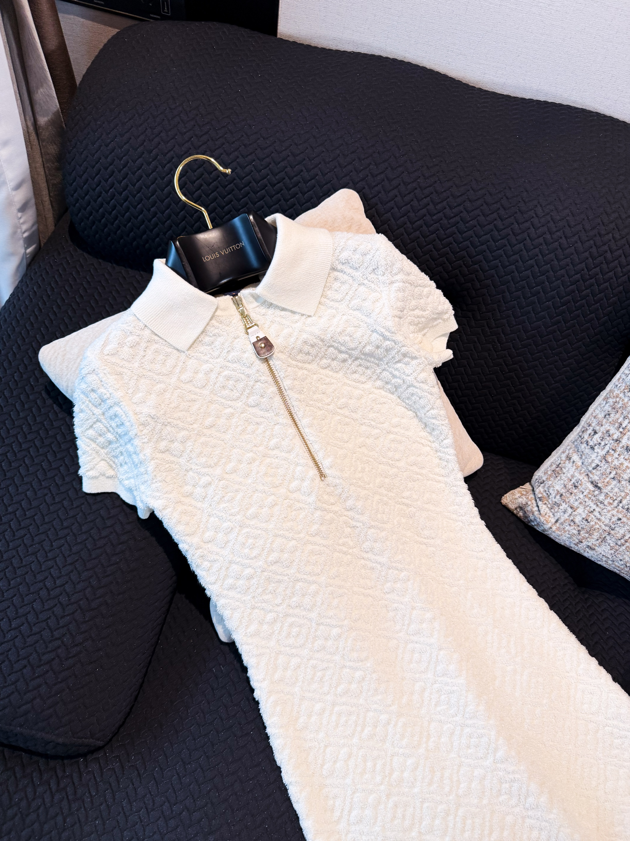 NIGO Louis Vuitton Women's Spring/Summer Embossed Letter Print Solid Color Wool Knit Half-Zip Slim-Fit Short-Sleeve Dress #nigo77361