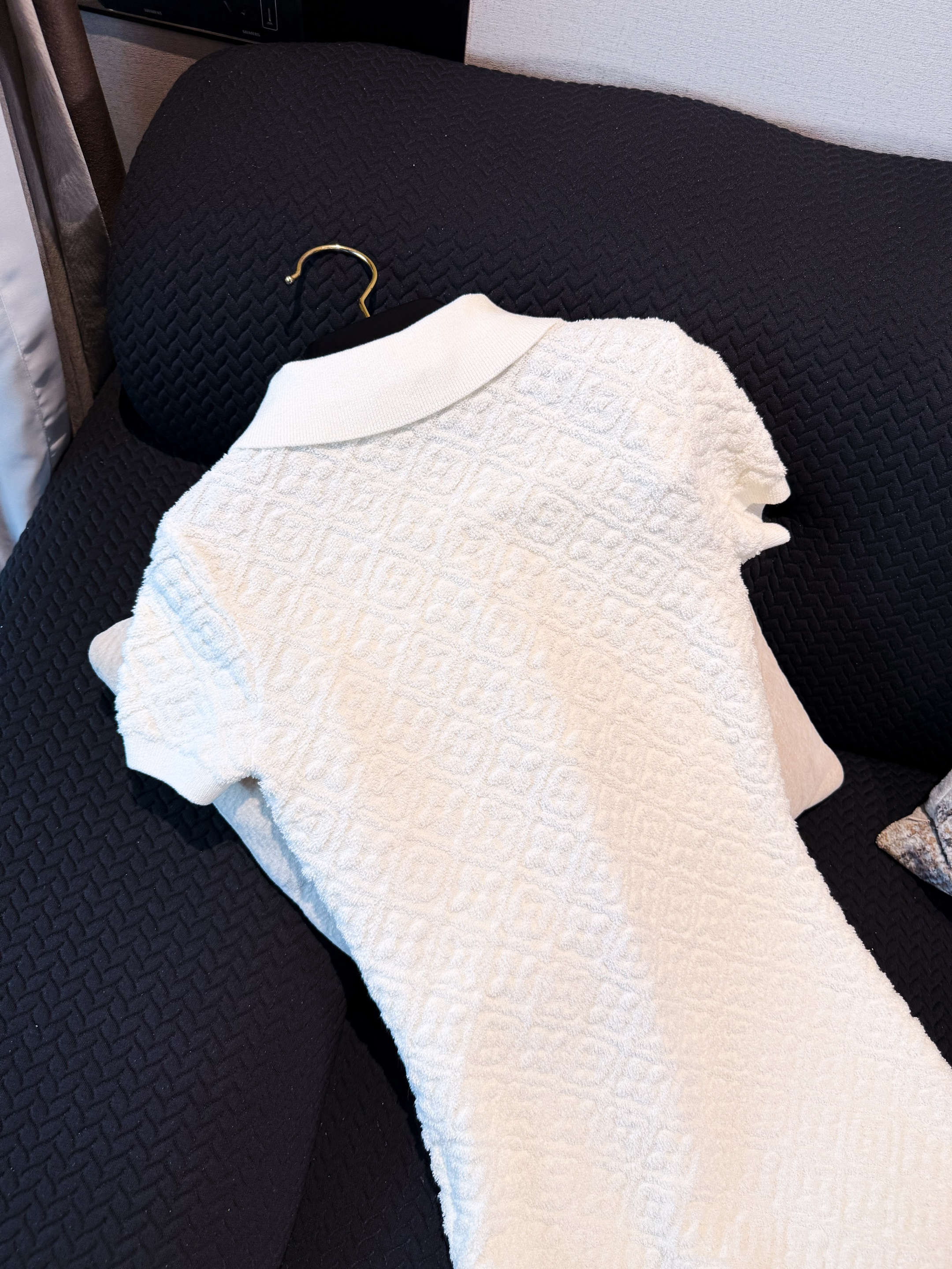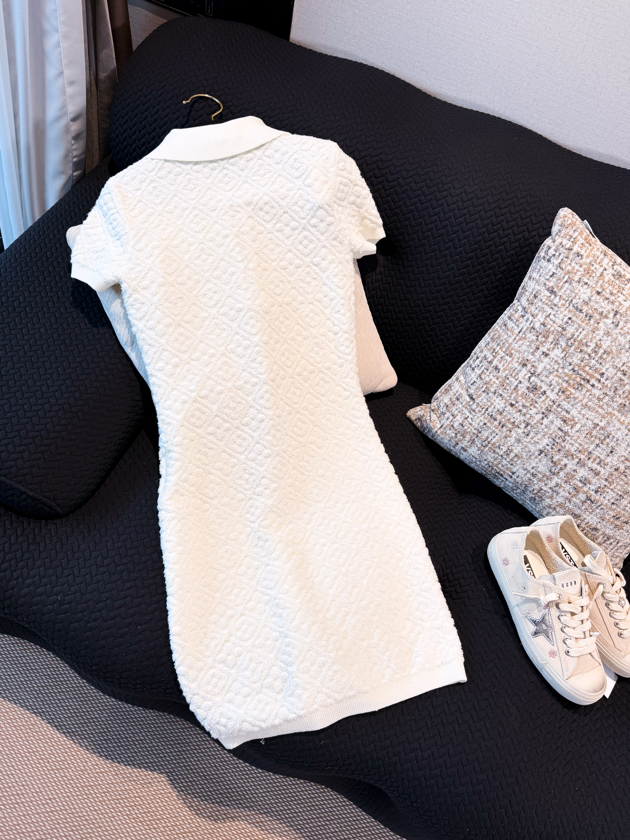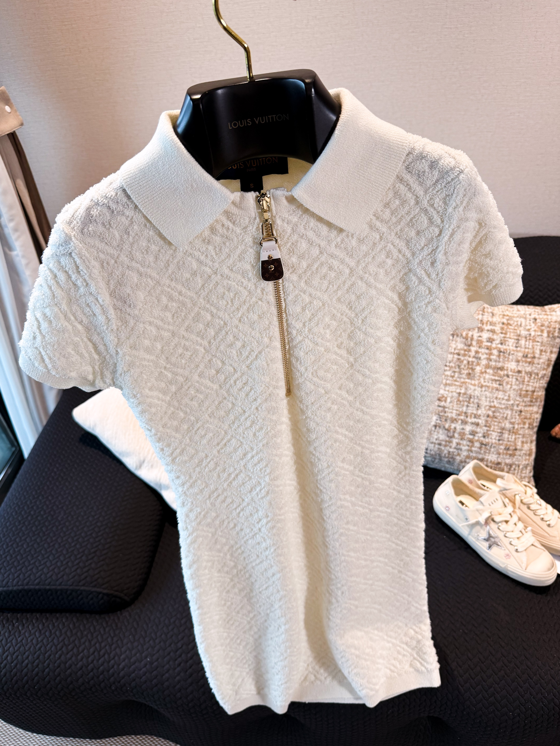 NIGO Louis Vuitton Women's Spring/Summer Embossed Letter Print Solid Color Wool Knit Half-Zip Slim-Fit Short-Sleeve Dress #nigo77361