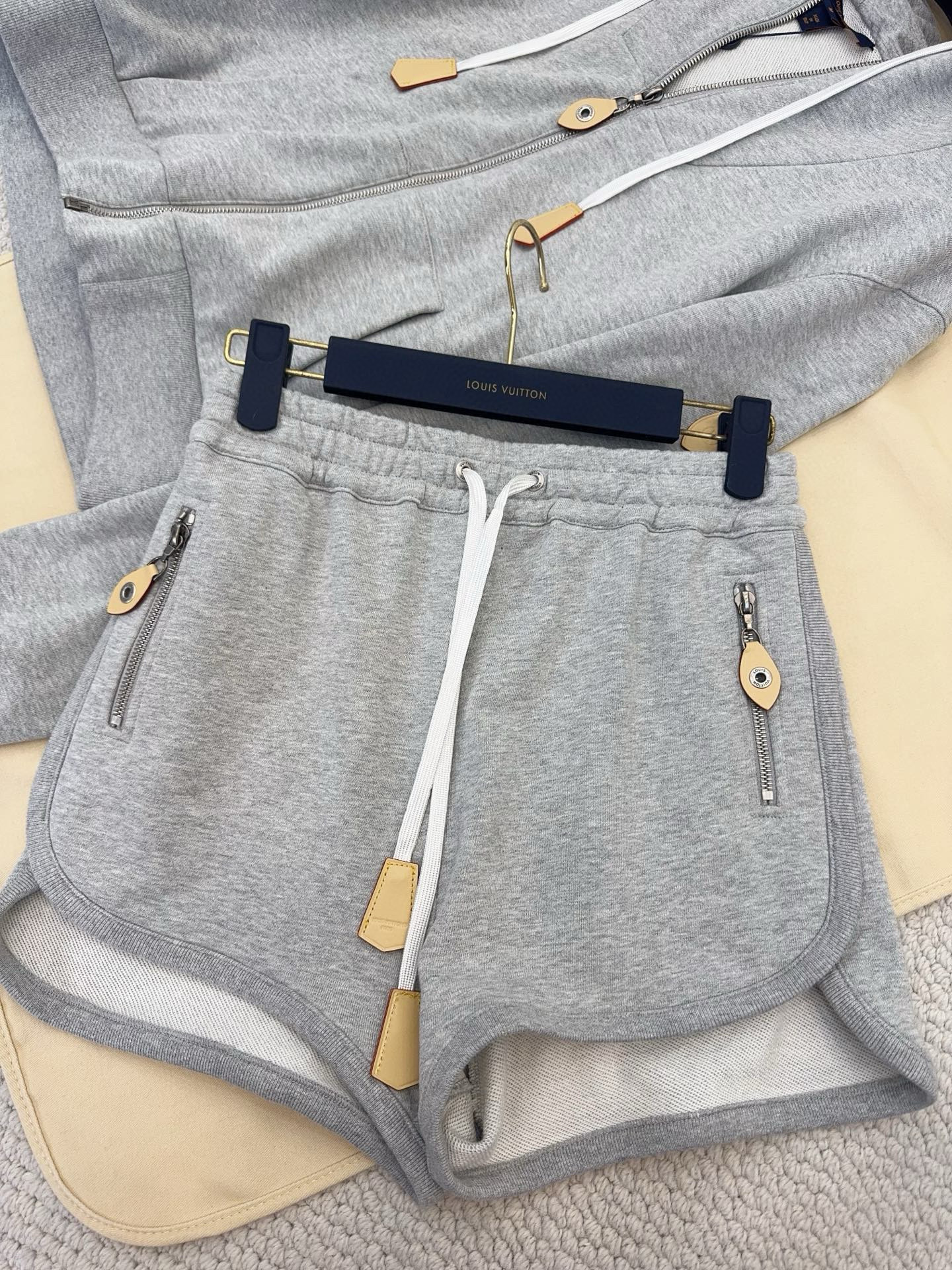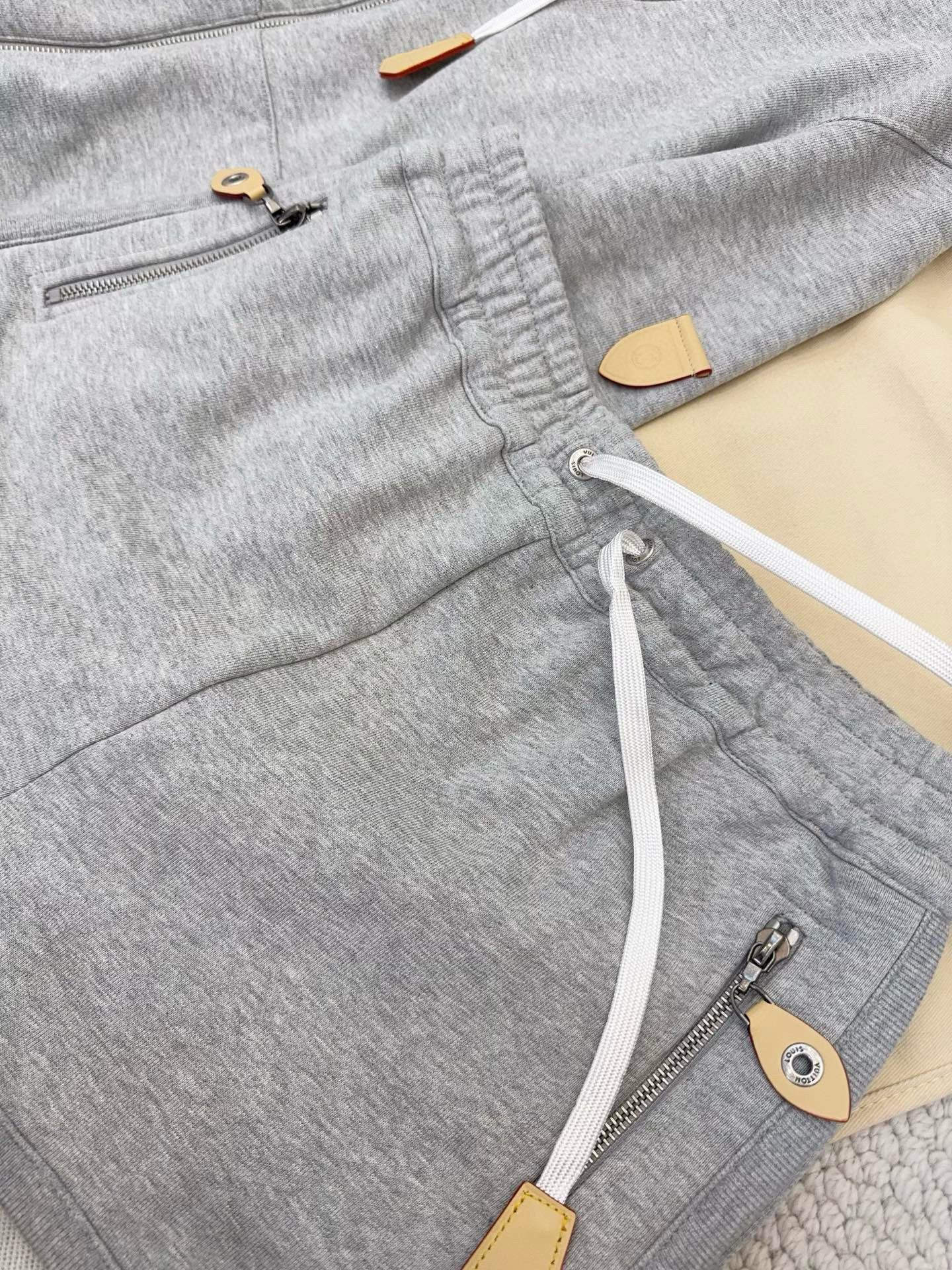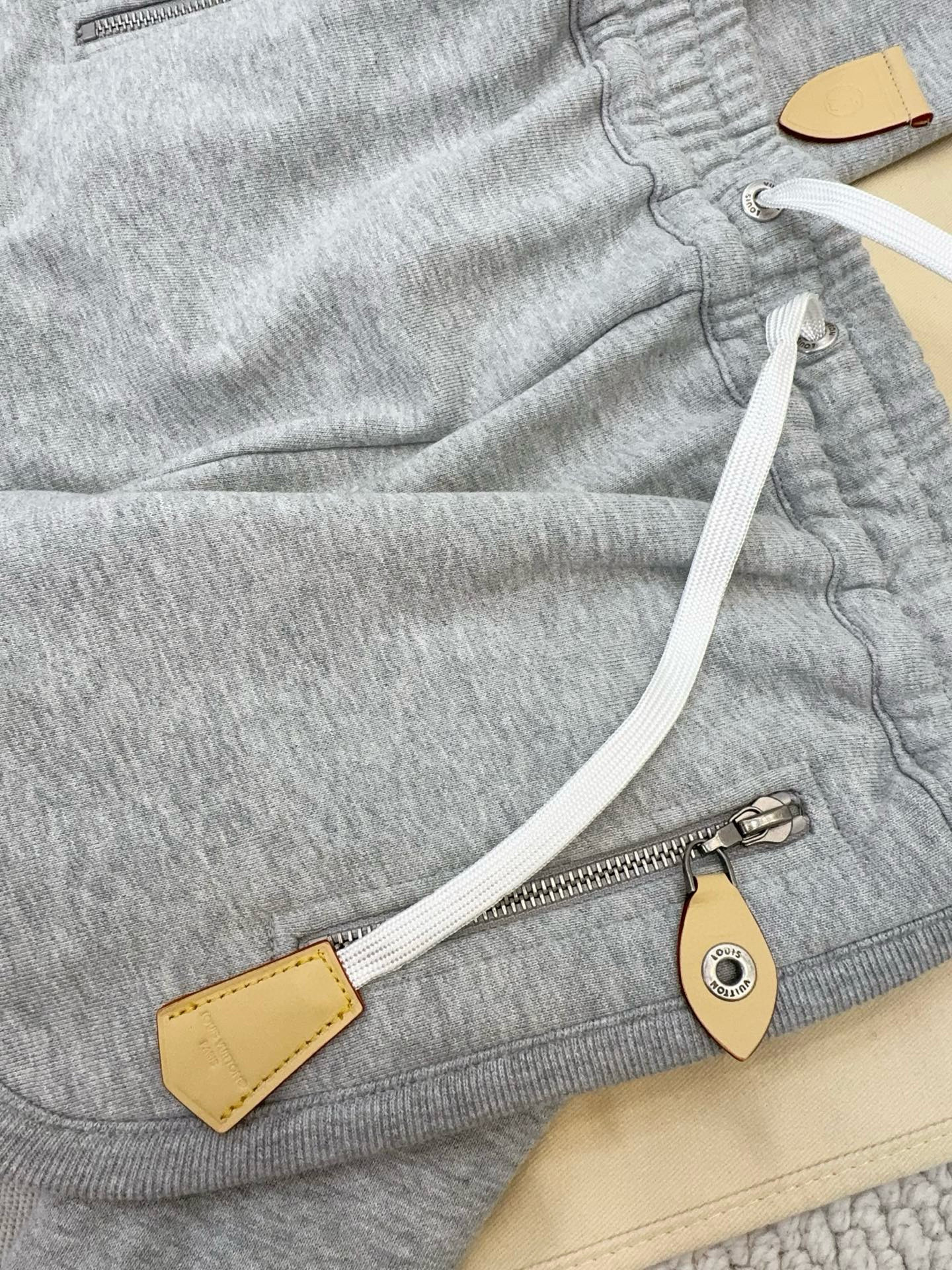 NIGO Louis Vuitton Women's Spring/Summer/Fall Leather-Detailed Zipper Cotton Long-Sleeve Hooded Sweatshirt Casual Solid-Color Drawstring Joggers Shorts Ngvp #nigo2383