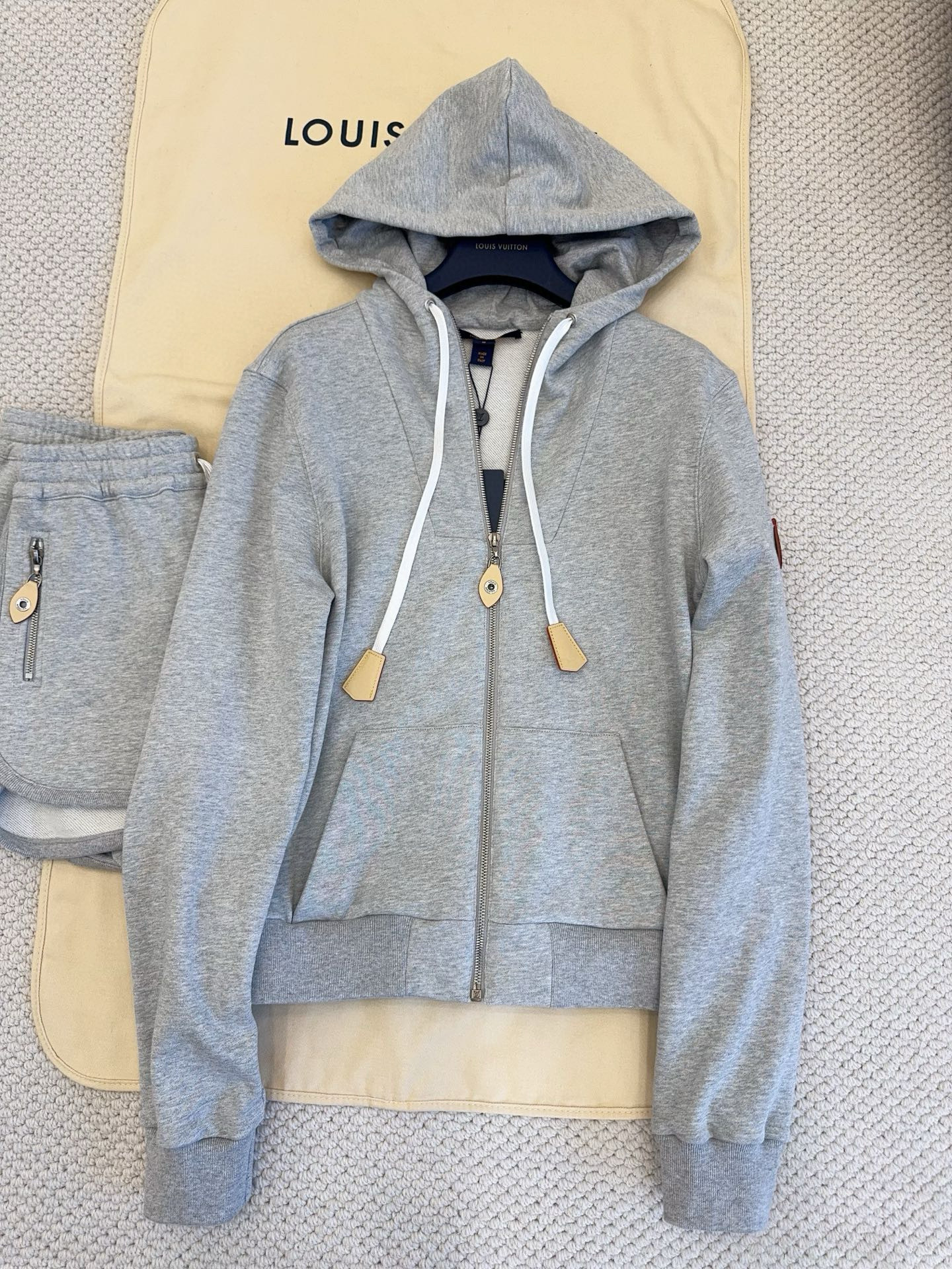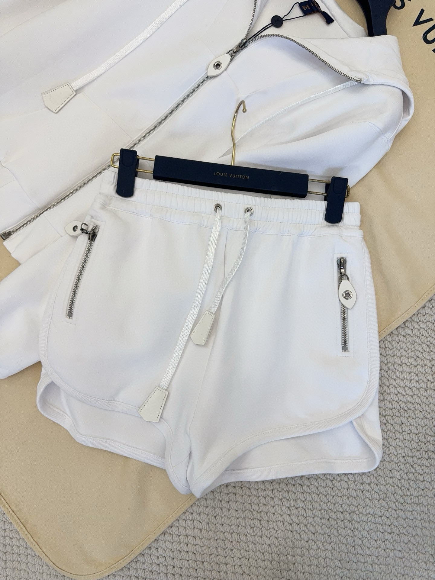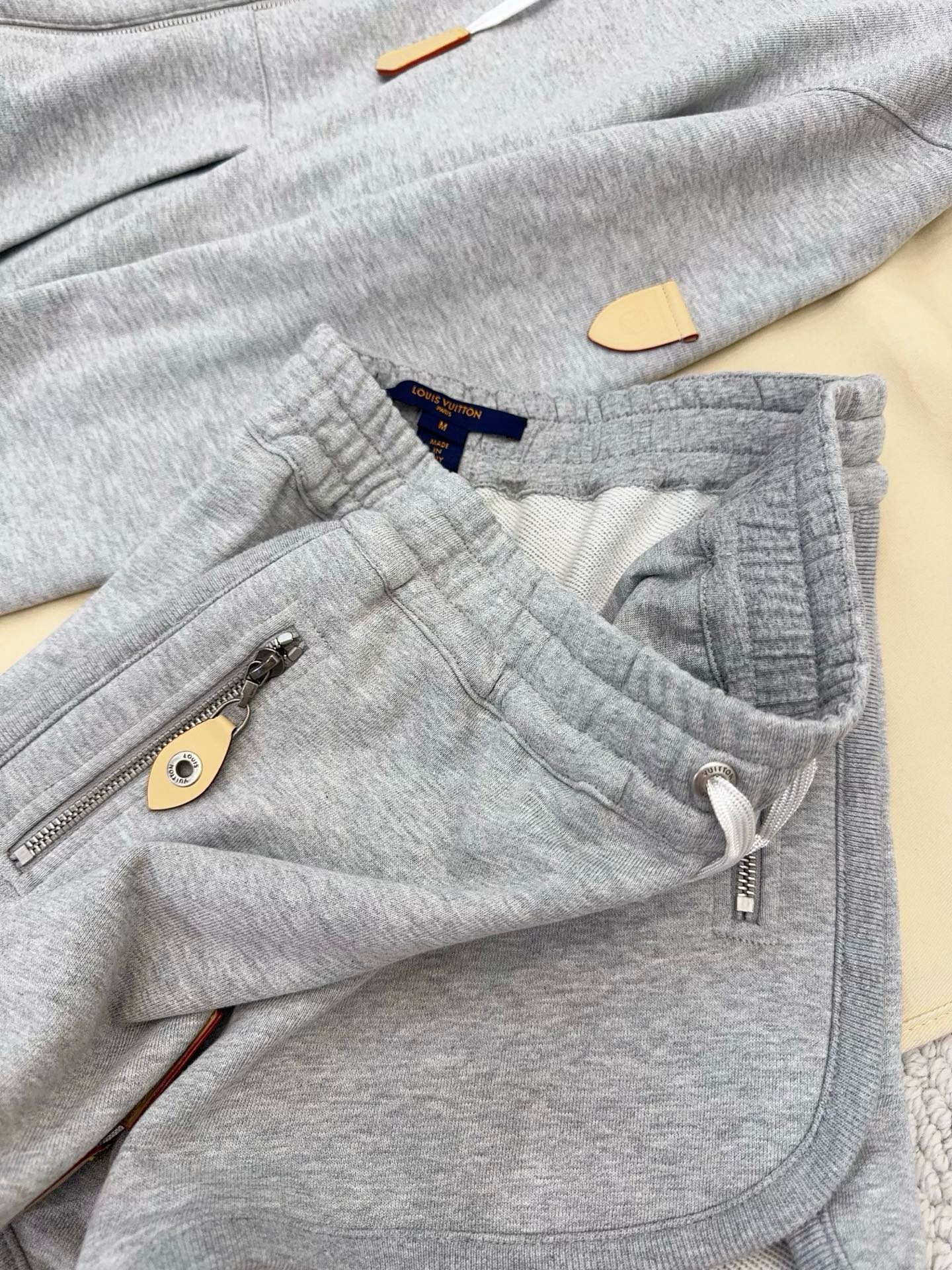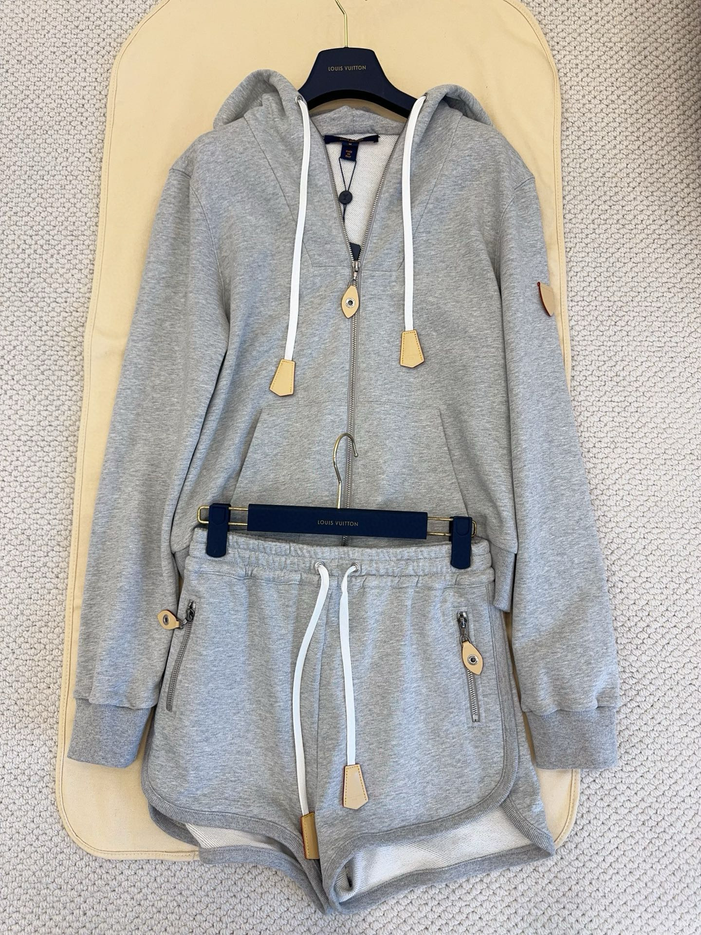 NIGO Louis Vuitton Women's Spring/Summer/Fall Leather-Detailed Zipper Cotton Long-Sleeve Hooded Sweatshirt Casual Solid-Color Drawstring Joggers Shorts Ngvp #nigo2383