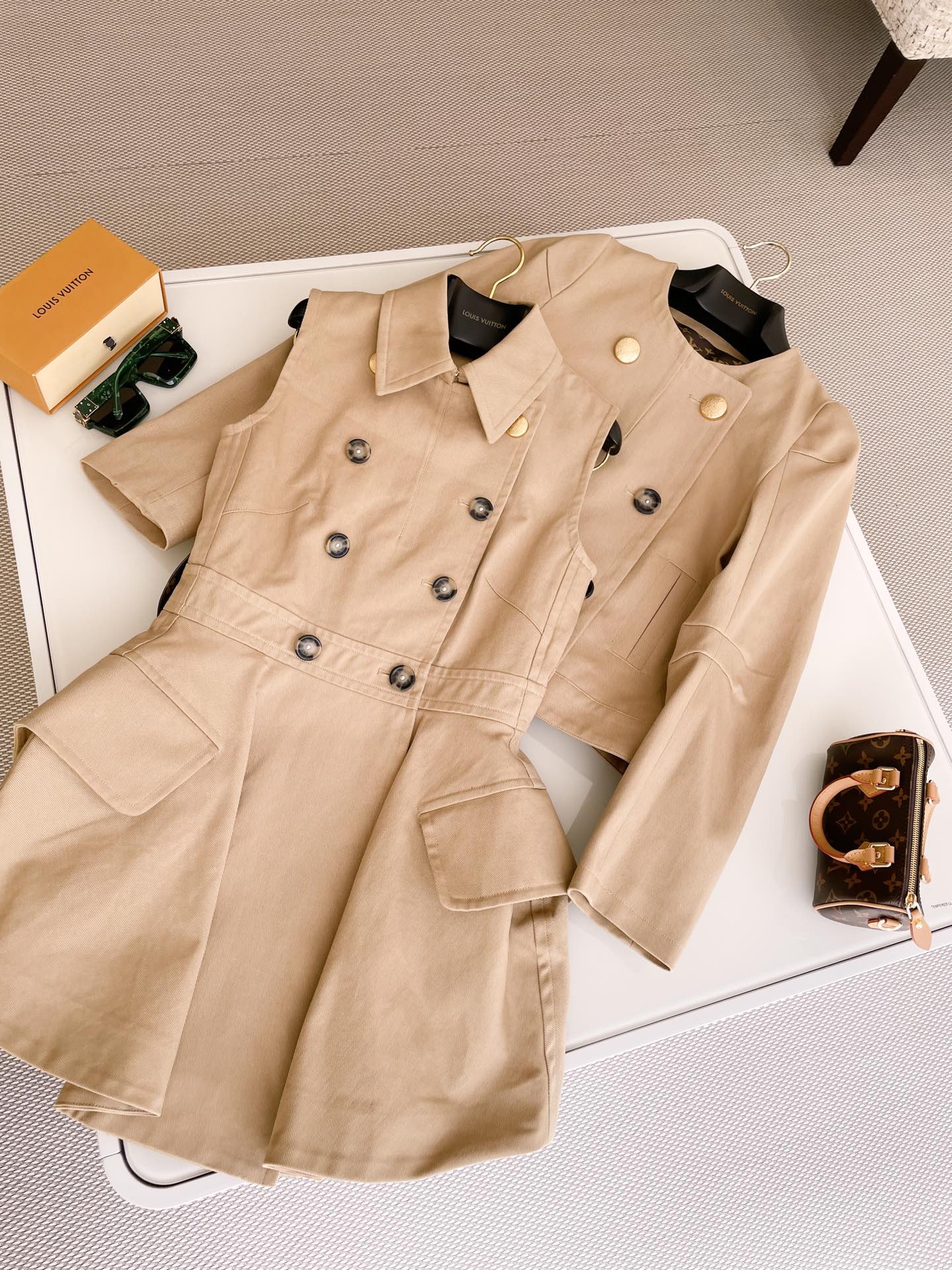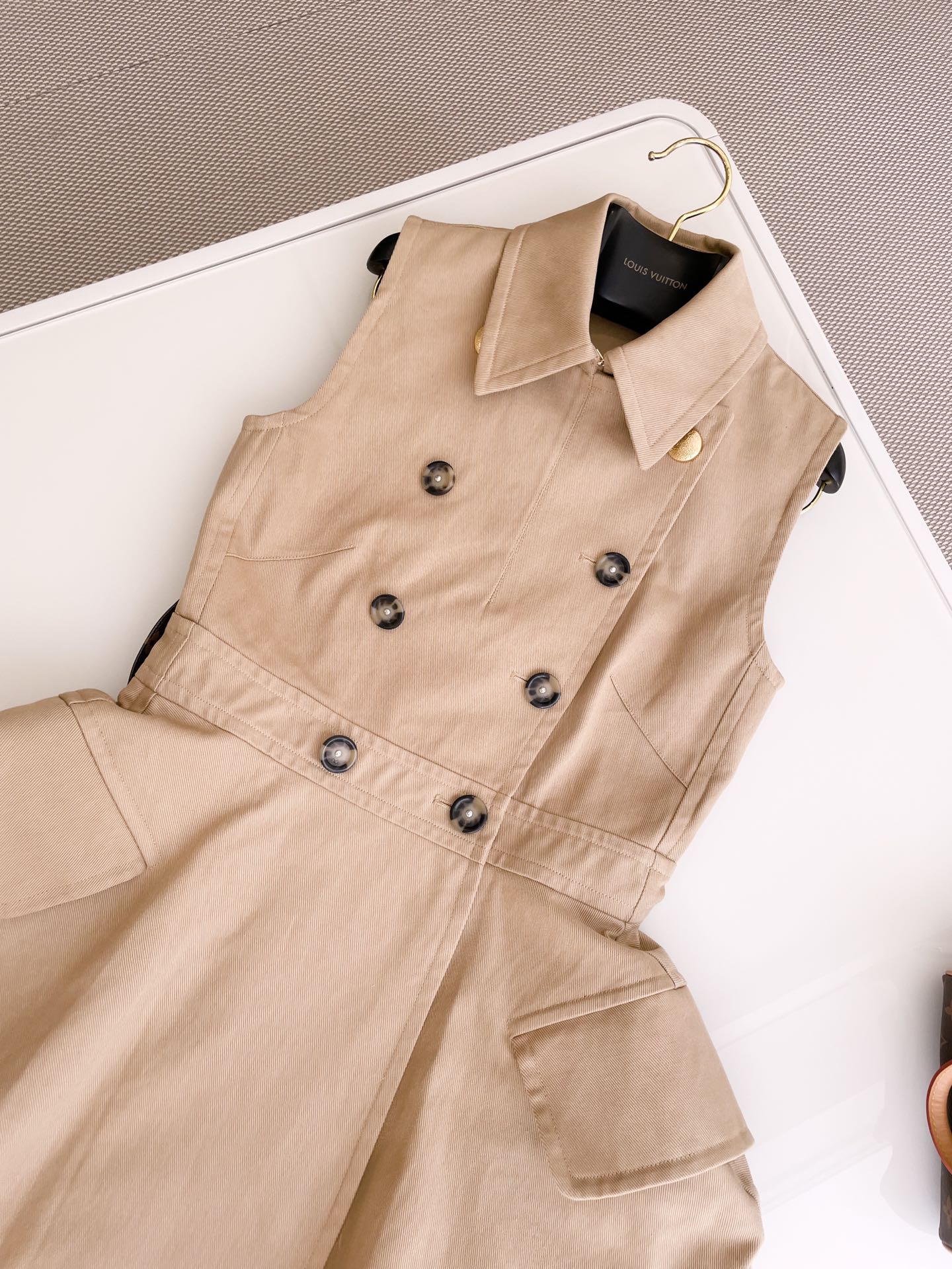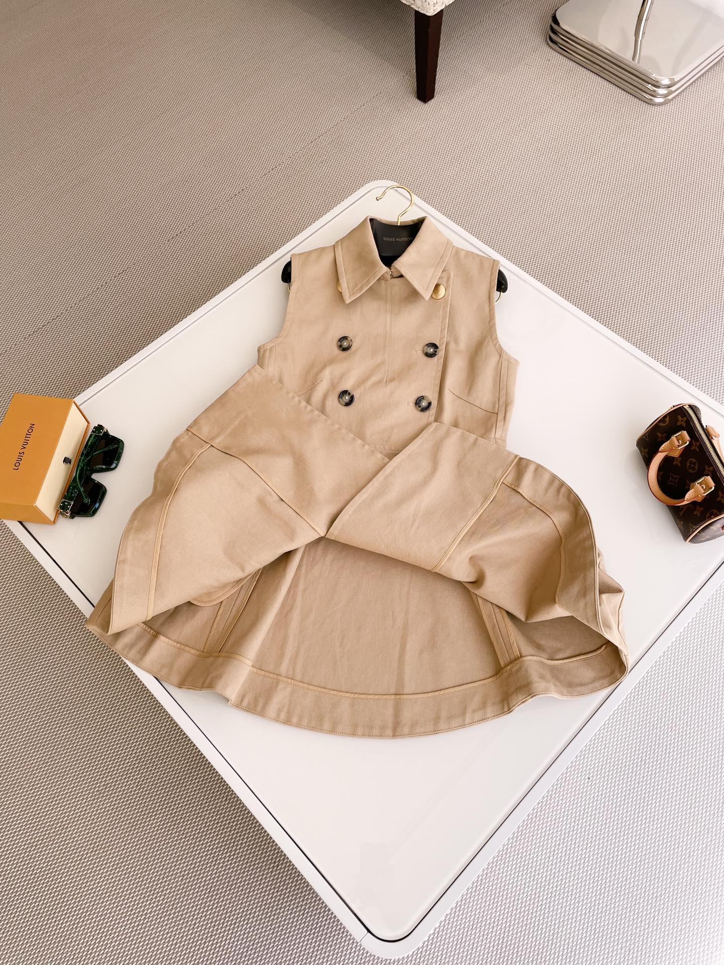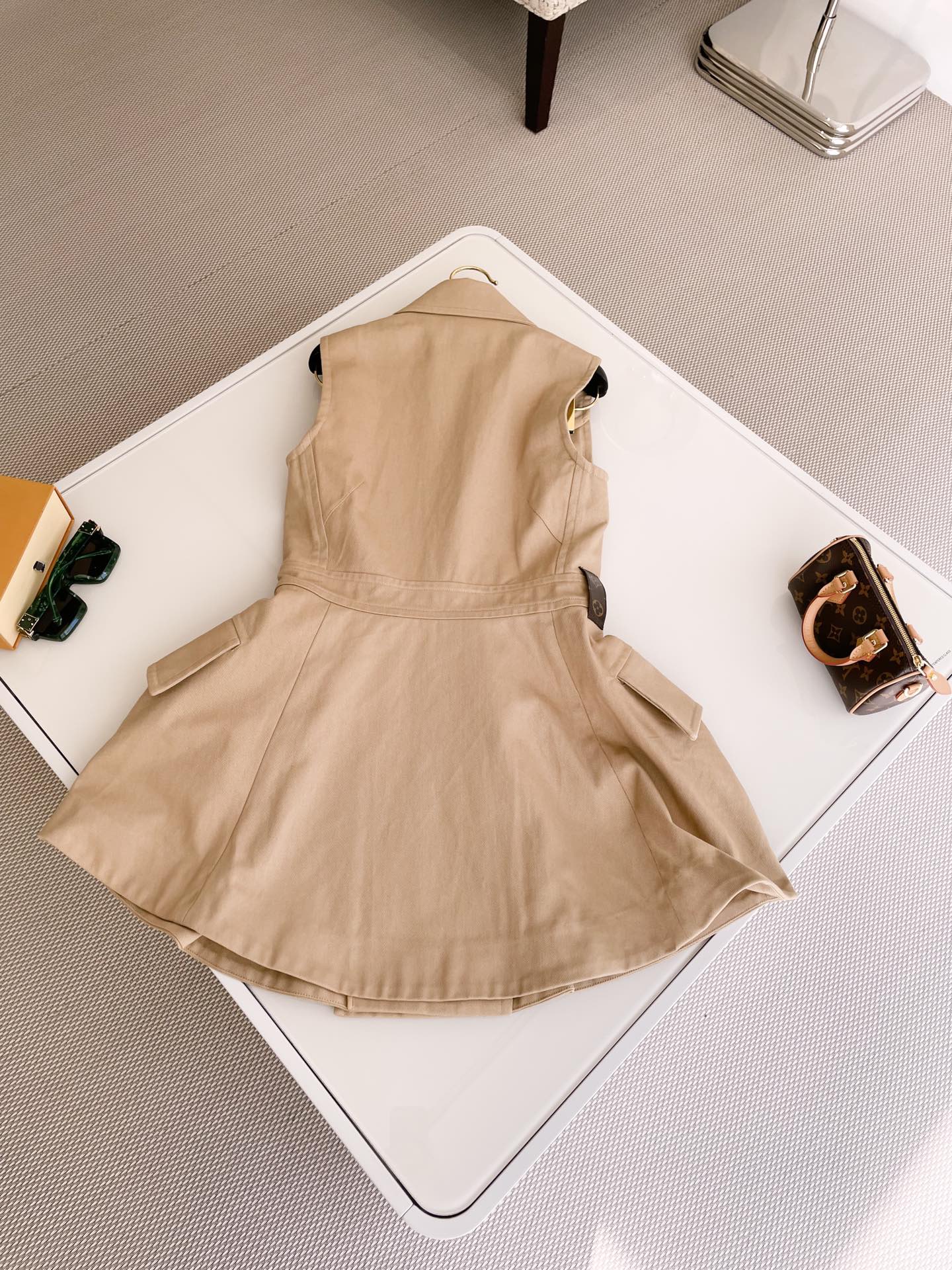 NIGO Louis Vuitton Women's Summer Cotton Solid Color Lapel Double Breasted Short Gabardine Waisted Sleeveless Dresses Ngvp #nigo8836