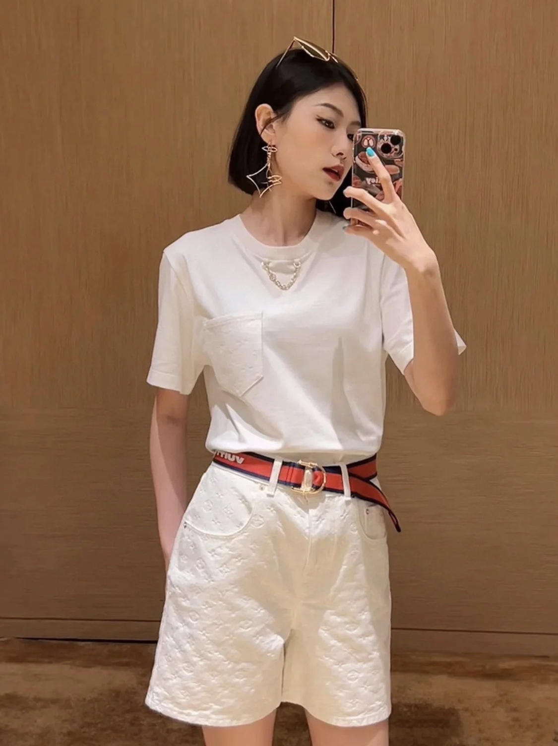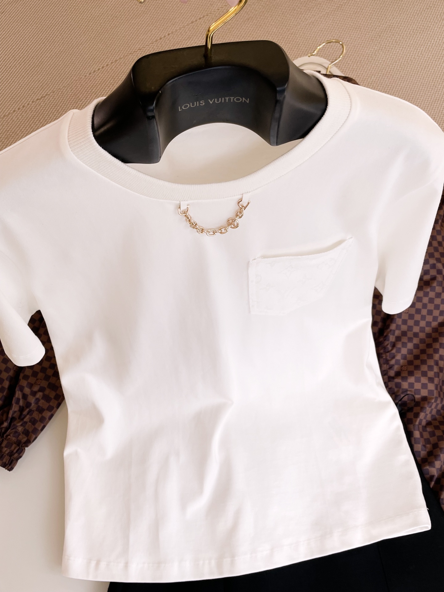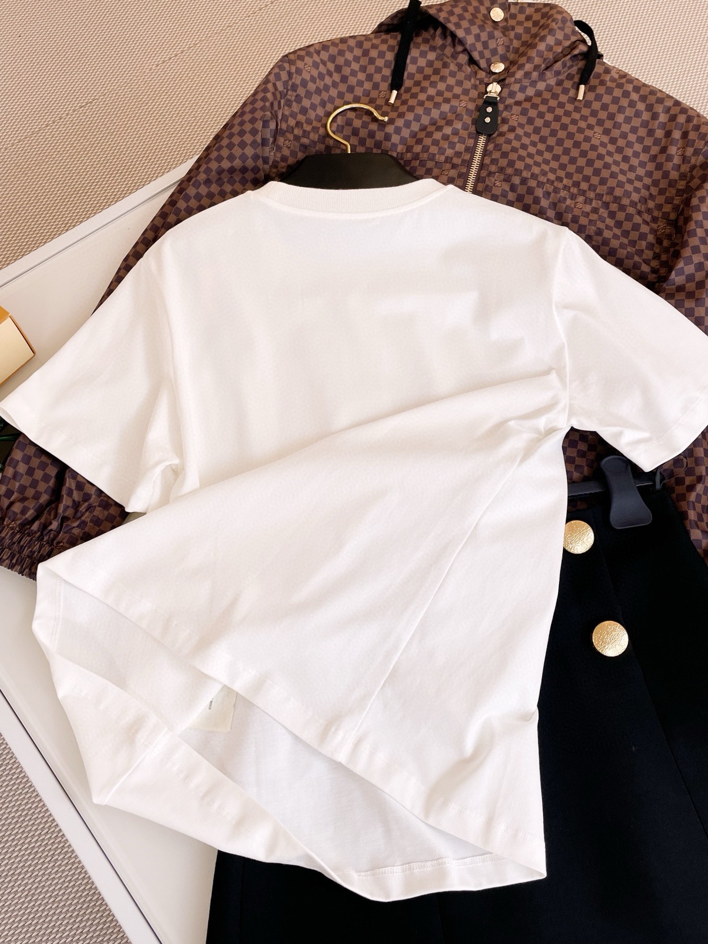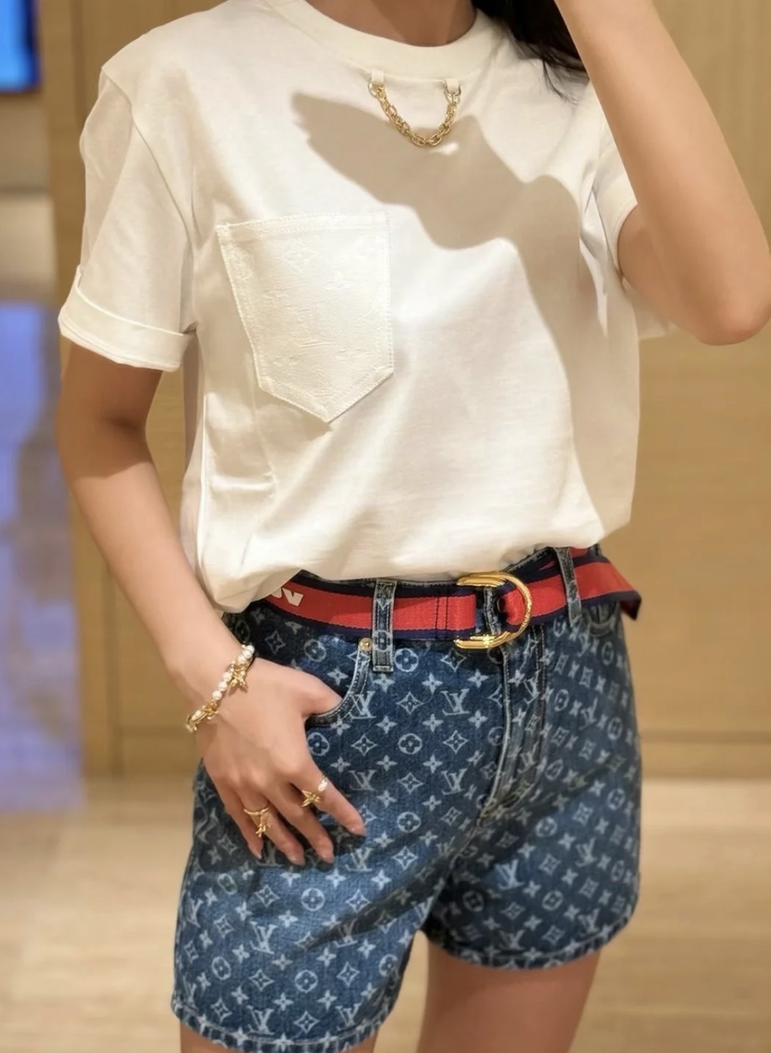 NIGO Louis Vuitton Women's Summer Solid Color Chain Thin Sister Round Neck Cotton Short Sleeve T-Shirt #nigo73177
