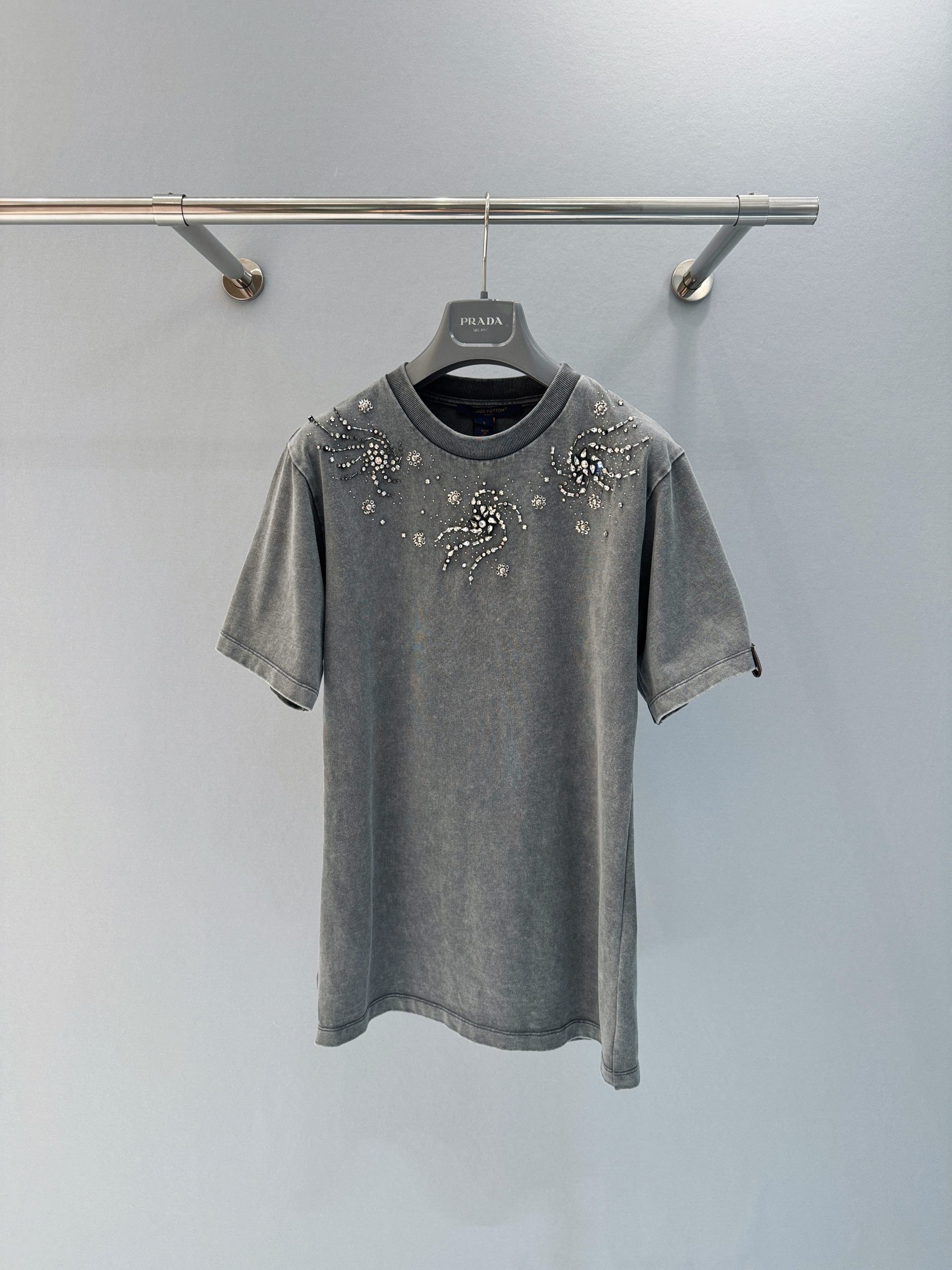 NIGO Louis Vuitton Women's Summer Solid Color Rhinestone Spiral Pattern Round Neck Short Sleeve T-Shirt #nigo77616