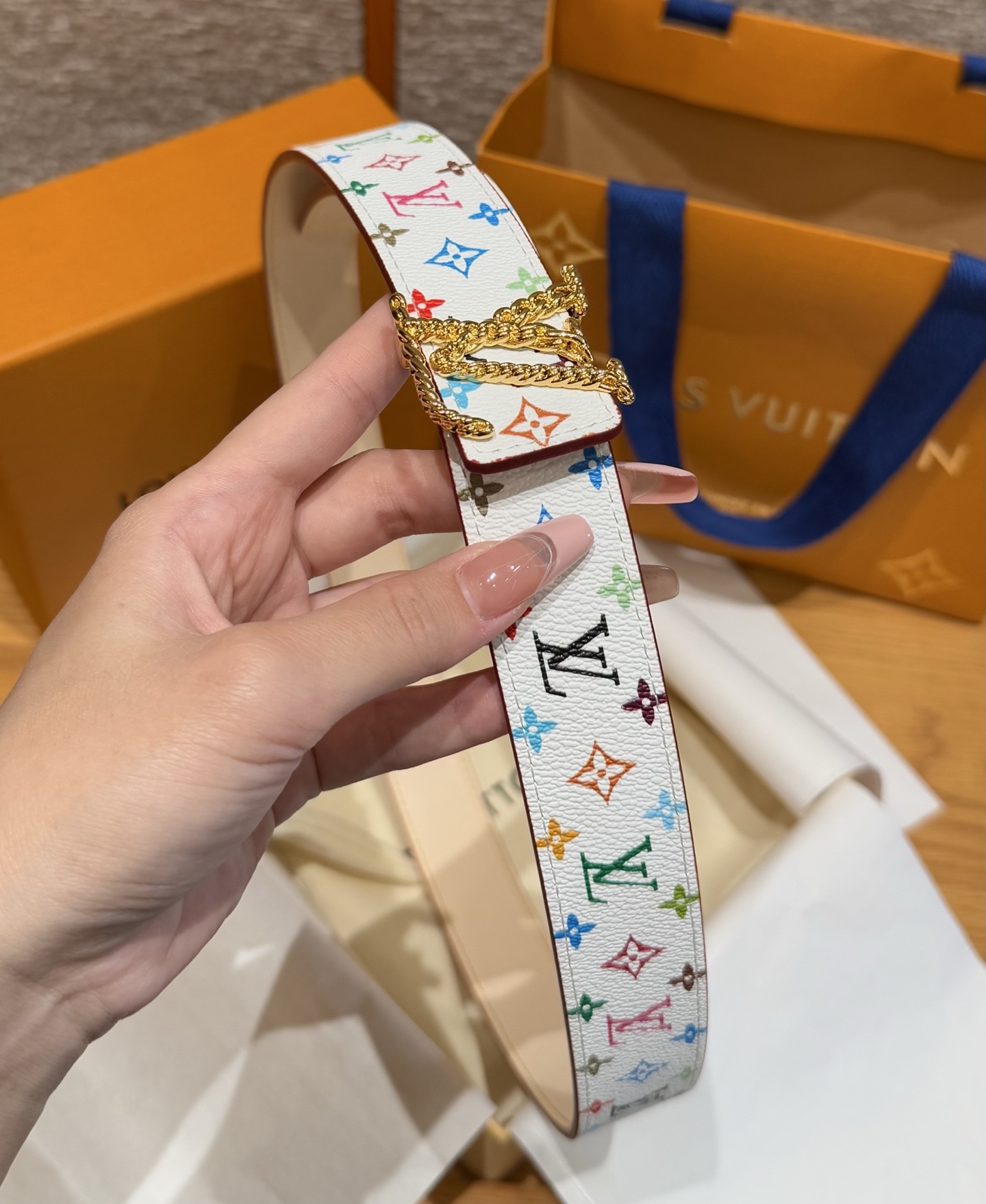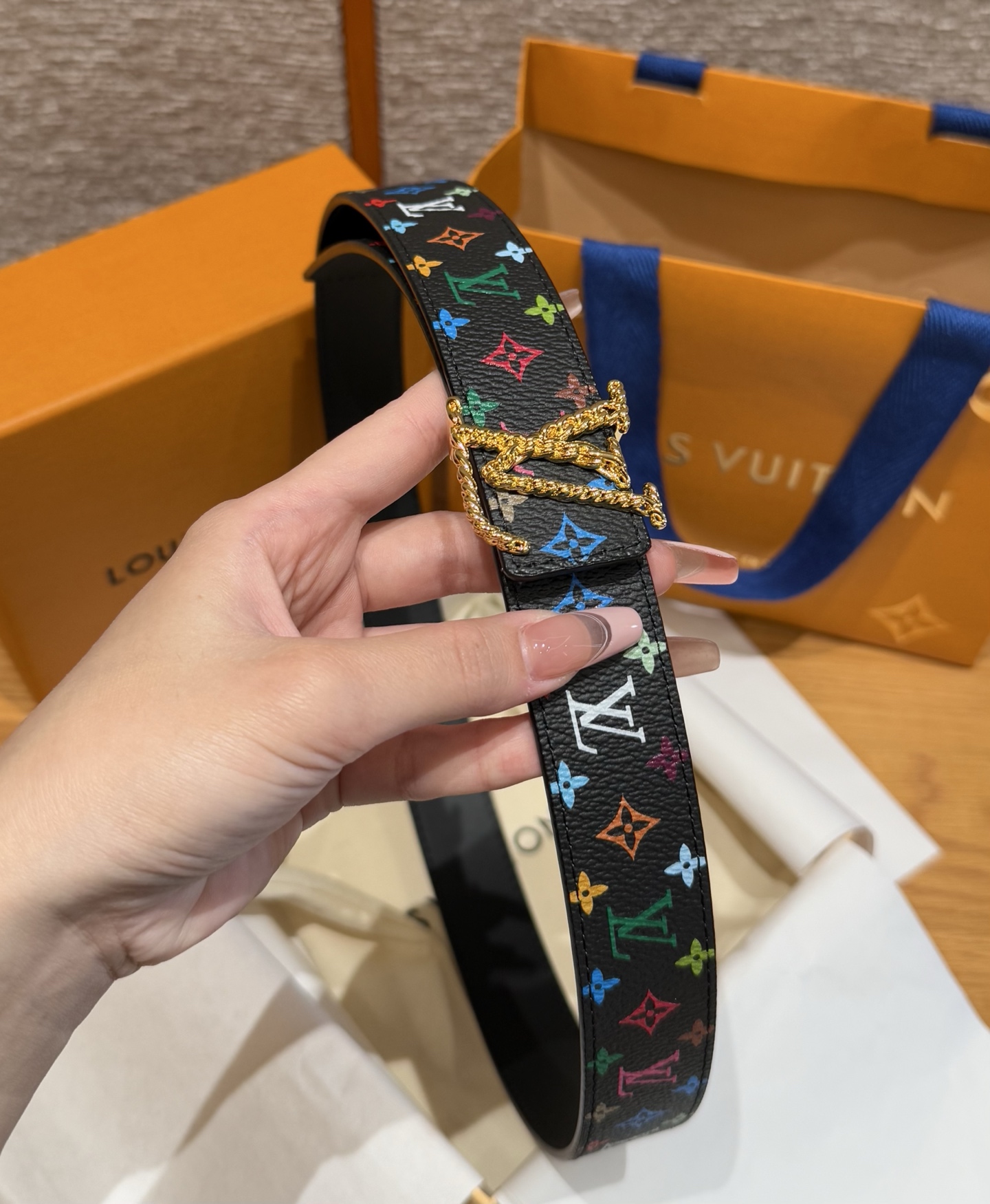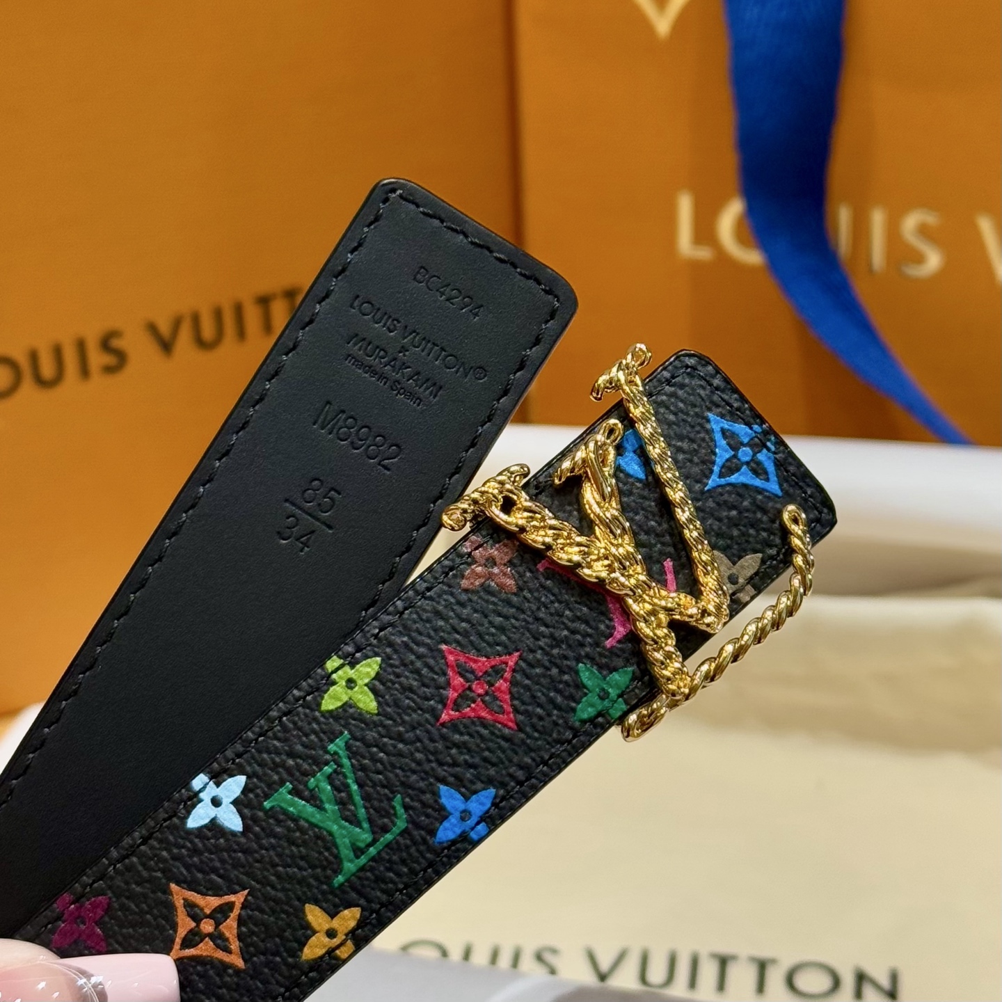 NIGO Louis Vuitton x TM Women's Logo Printed Solid Color Reversible Belt Jewelry Width 3cm Accessories #nigo76326