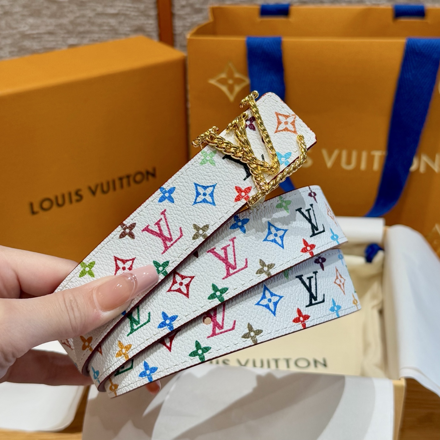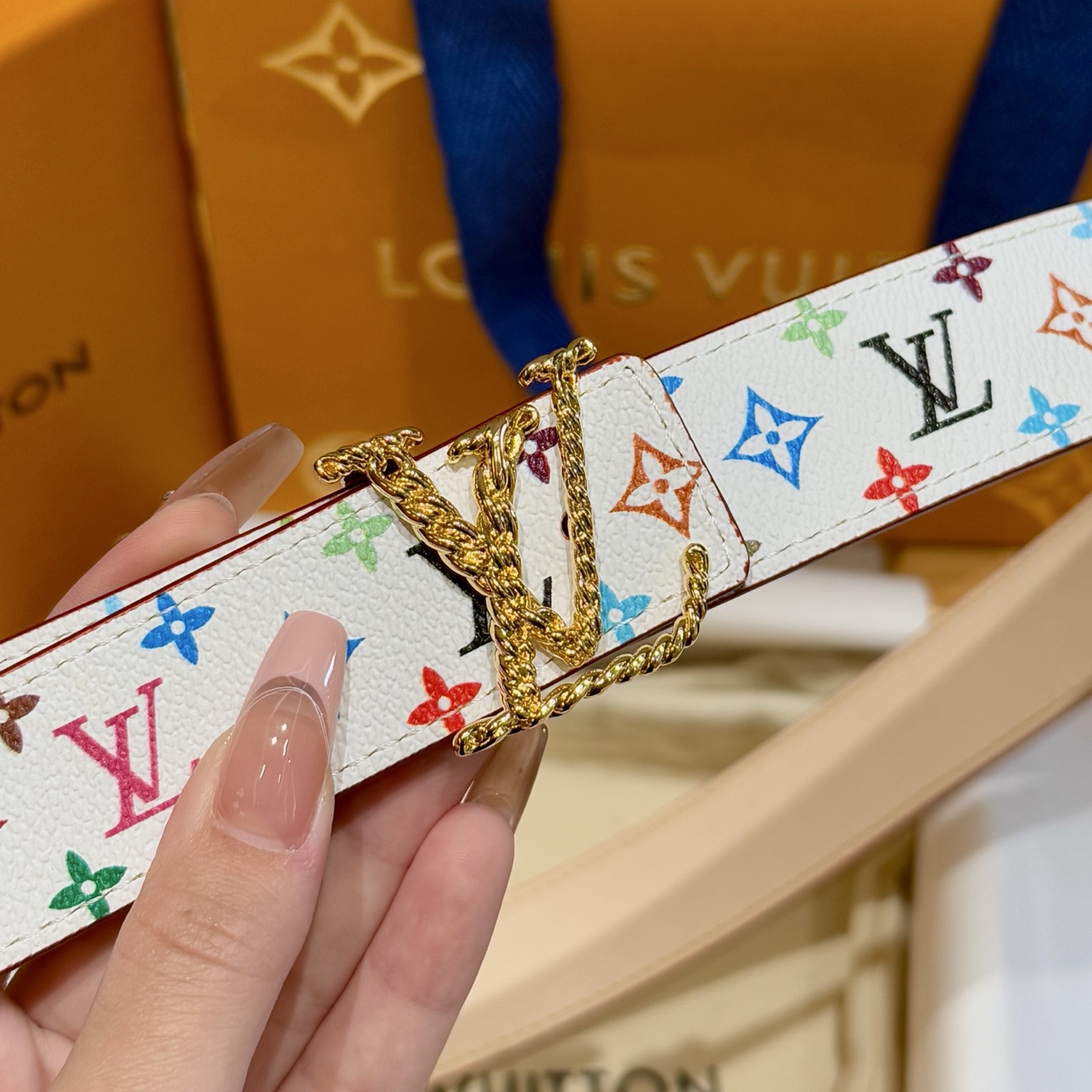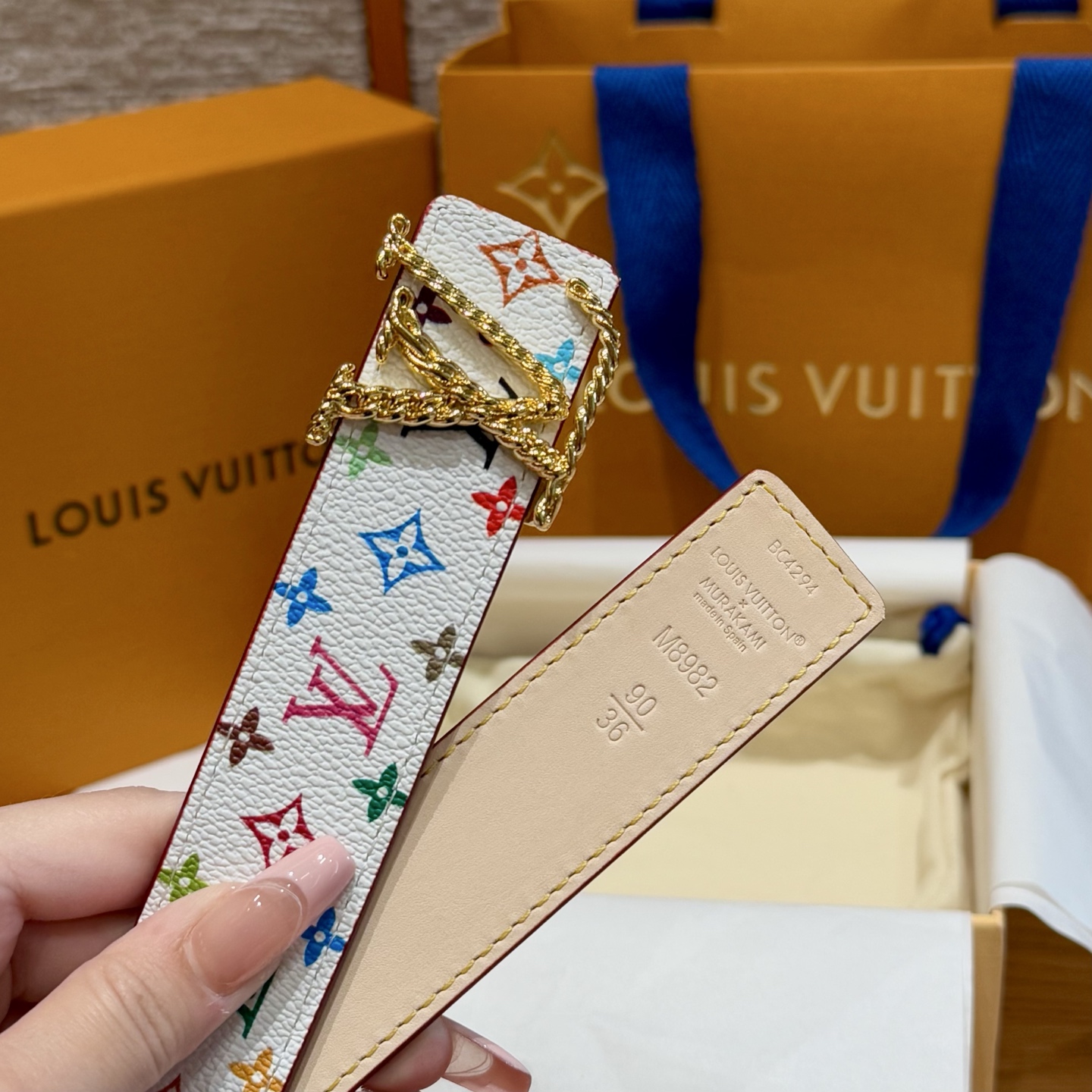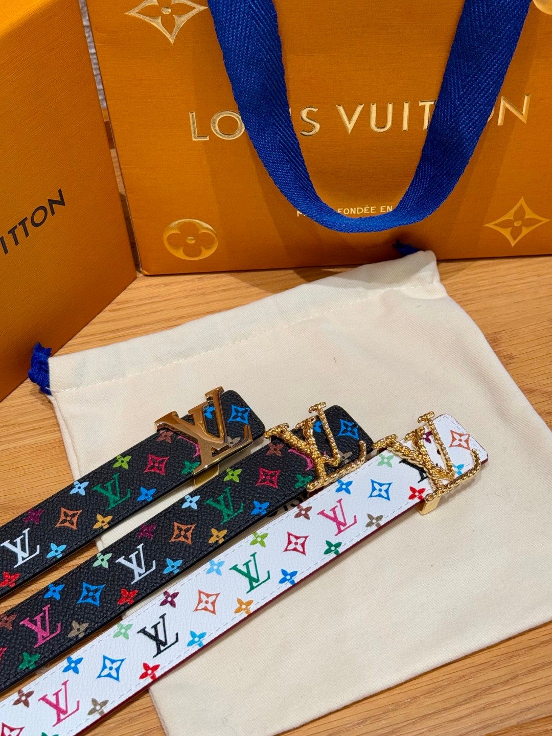 NIGO Louis Vuitton x TM Women's Logo Printed Solid Color Reversible Belt Jewelry Width 3cm Accessories #nigo76326