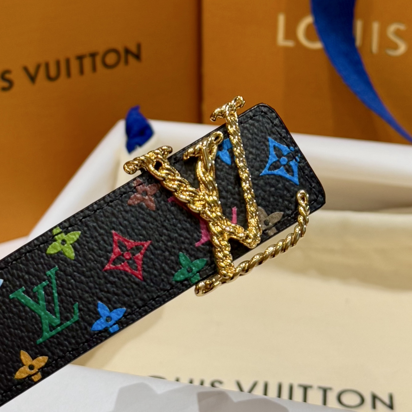 This Louis Vuitton belt showcases the brand's exceptional craftsmanship and attention to detail. this piece combines timeless luxury with modern style.