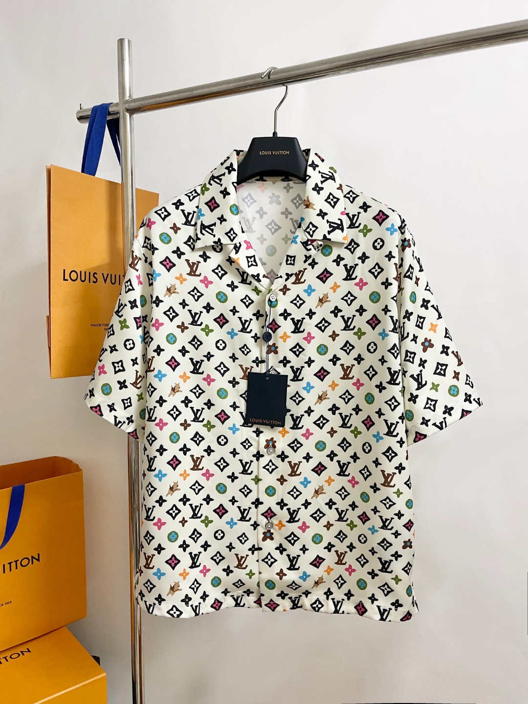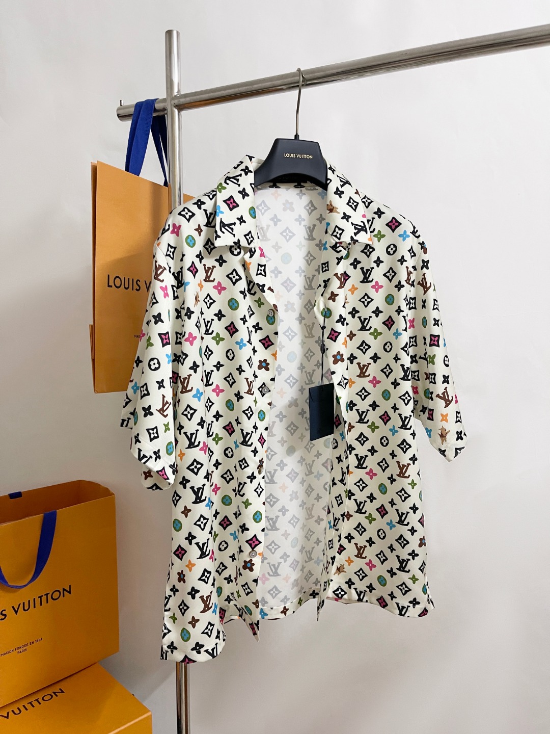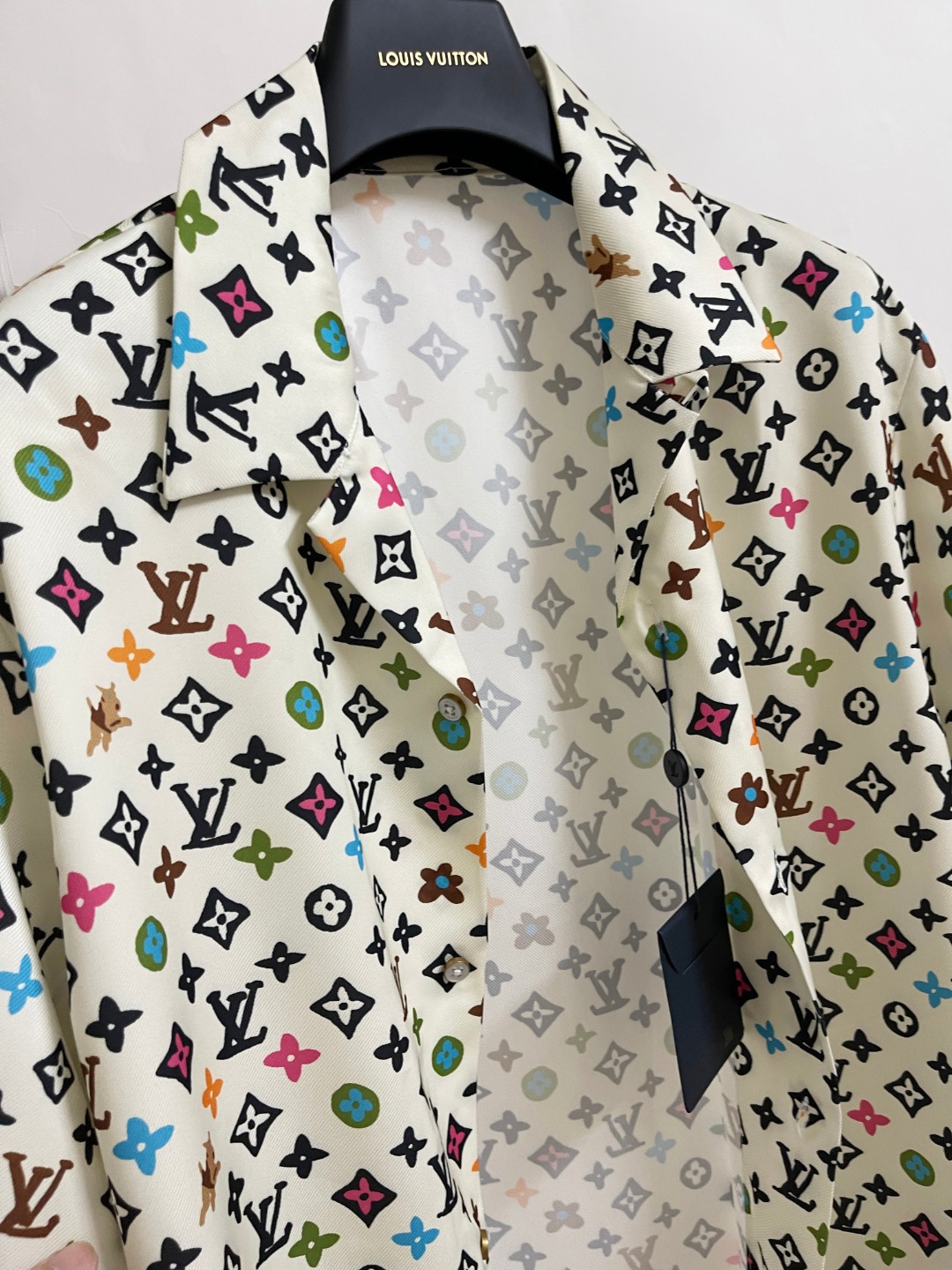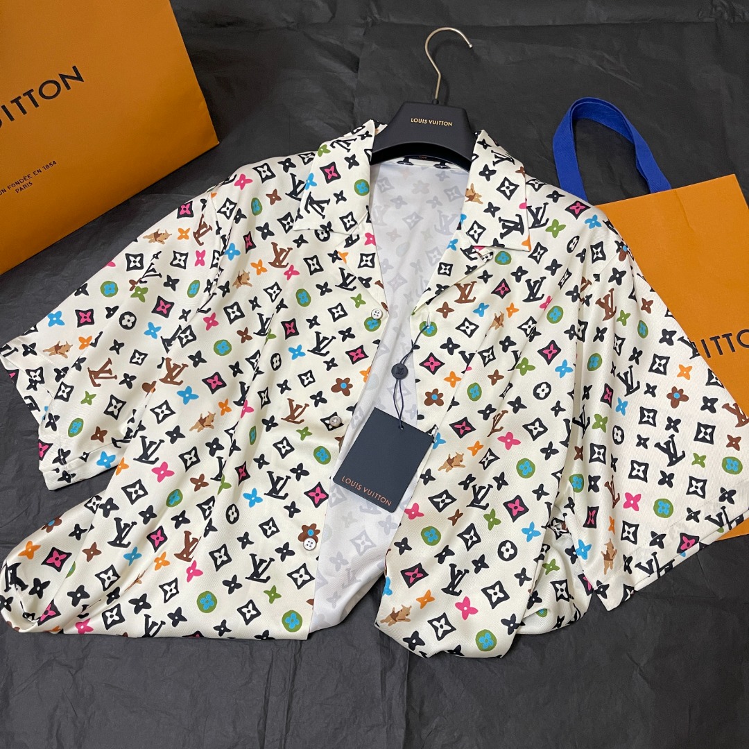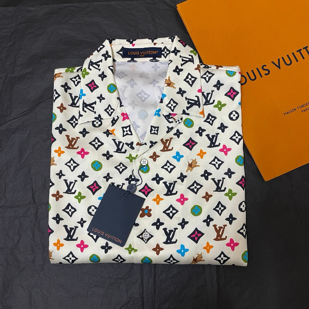NIGO Louis Vuitton x Tyler MONOGRAM Printed Single-Breasted Mulberry Silk Loose Solid Color Summer Short Sleeve Shirt #nigo71978