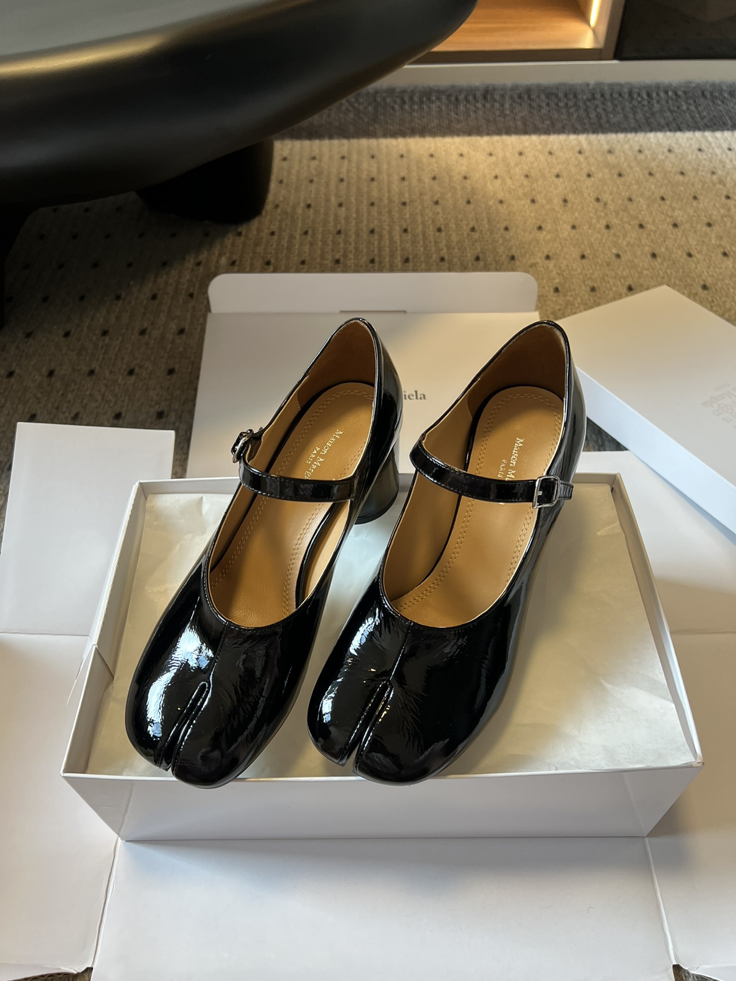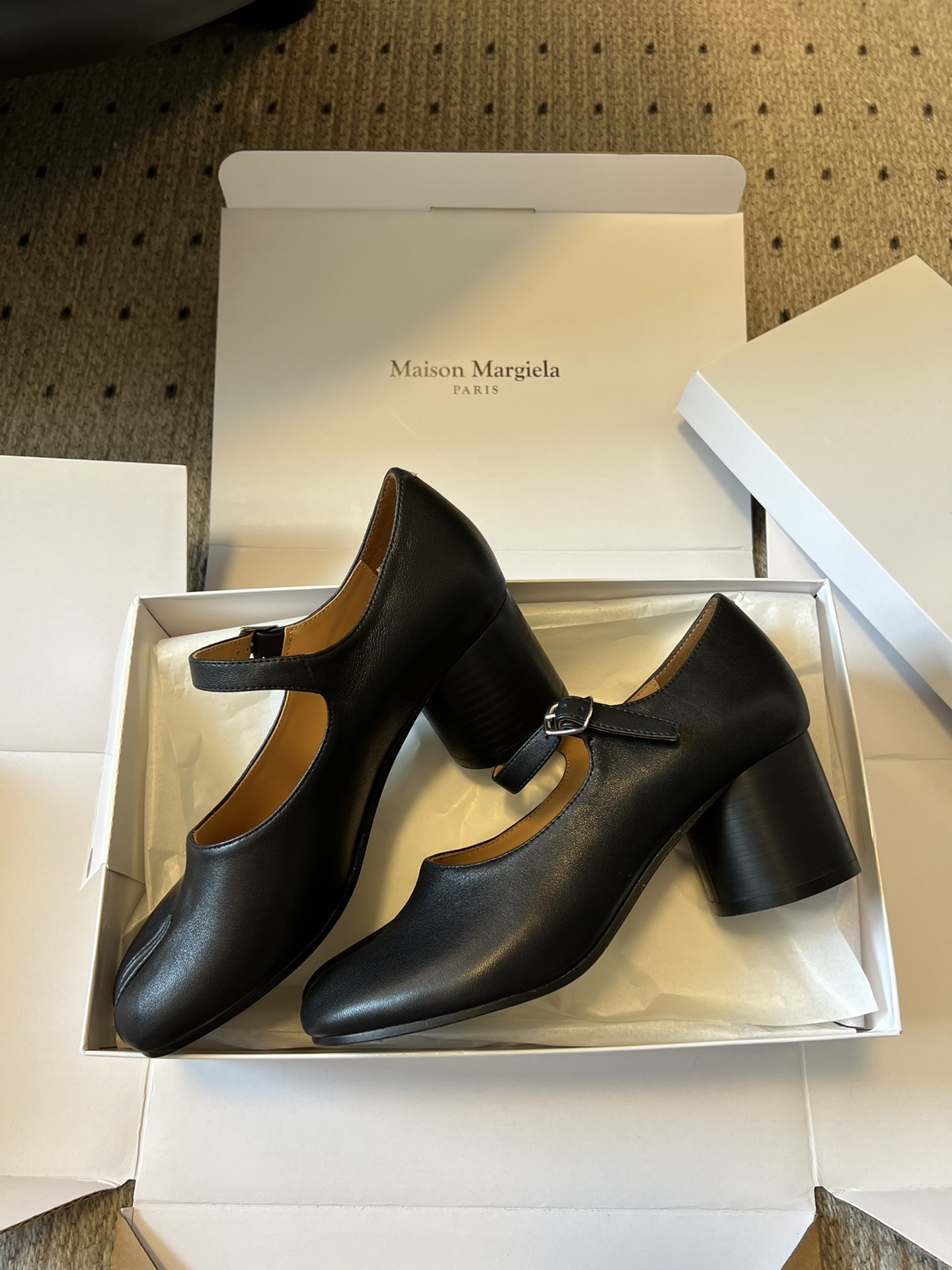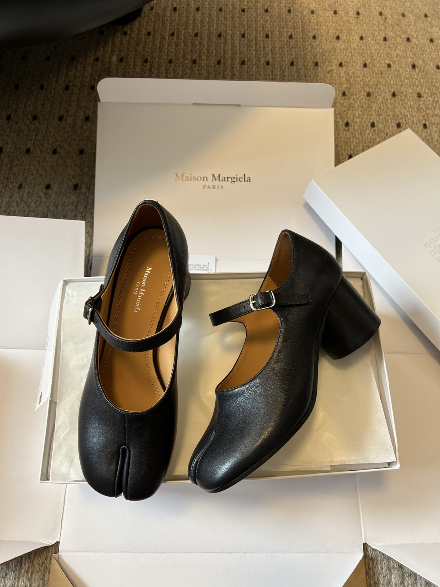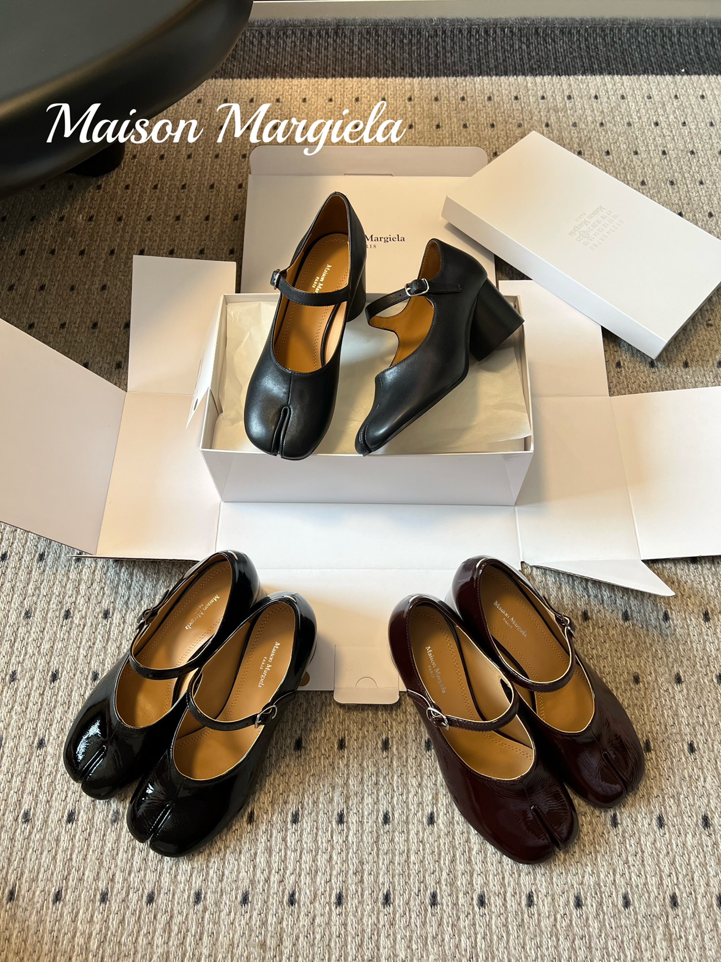 NIGO Maison Margiela Women's Spring/Fall Fashion Classic Round Toe Slip On Solid Color Leather Chunky Heel Mary Jane Split Toe Shoes #nigo78646