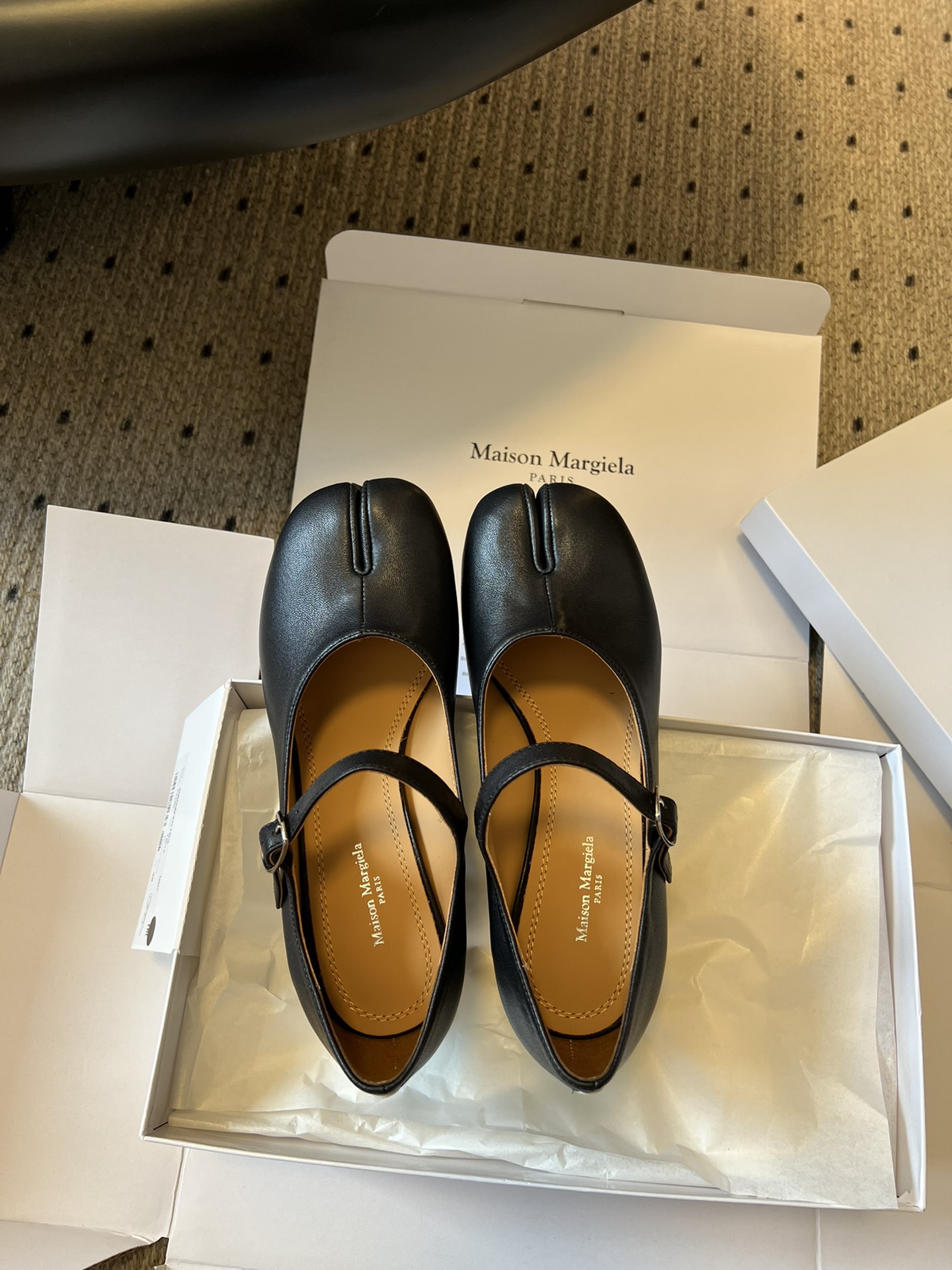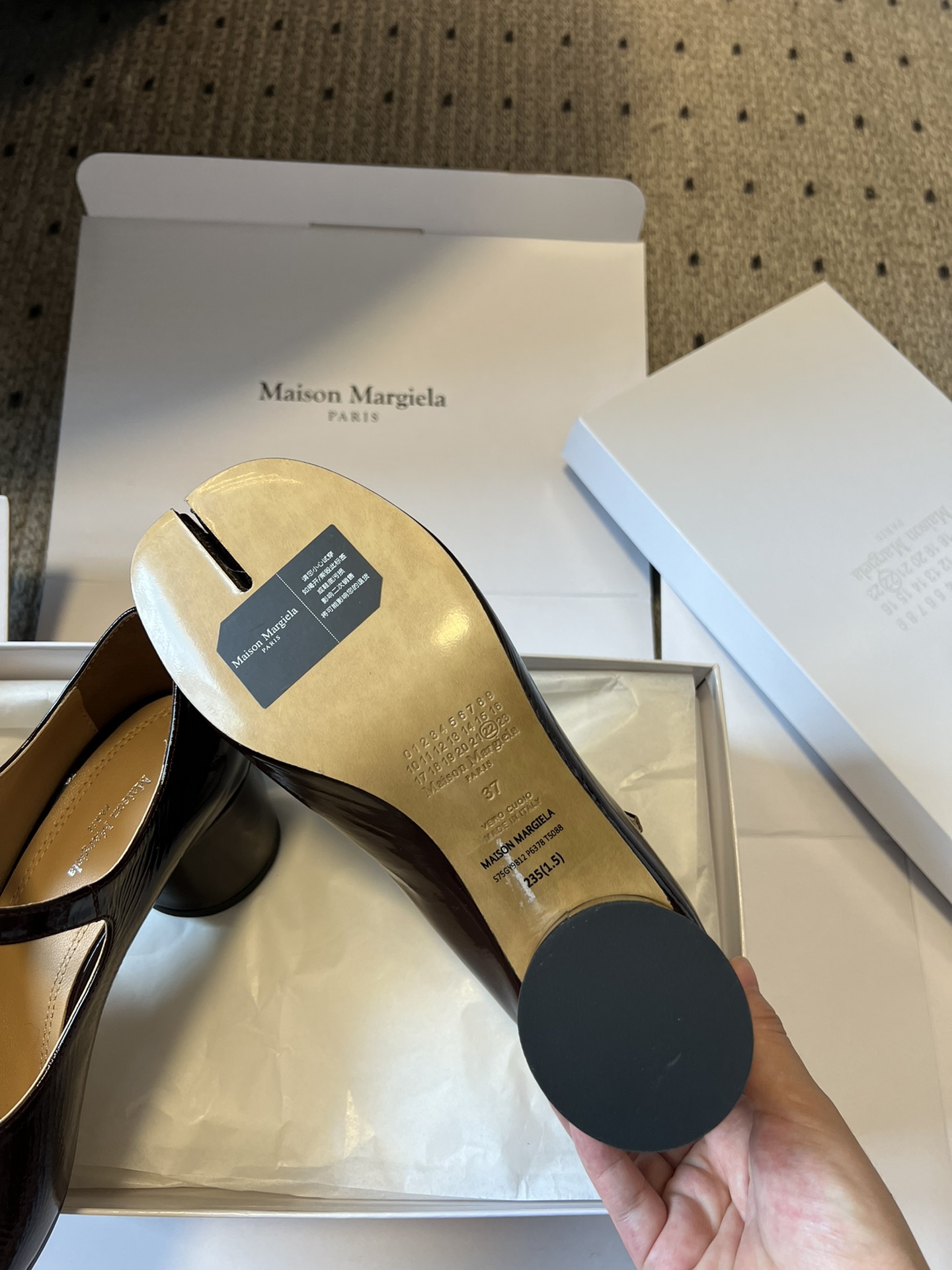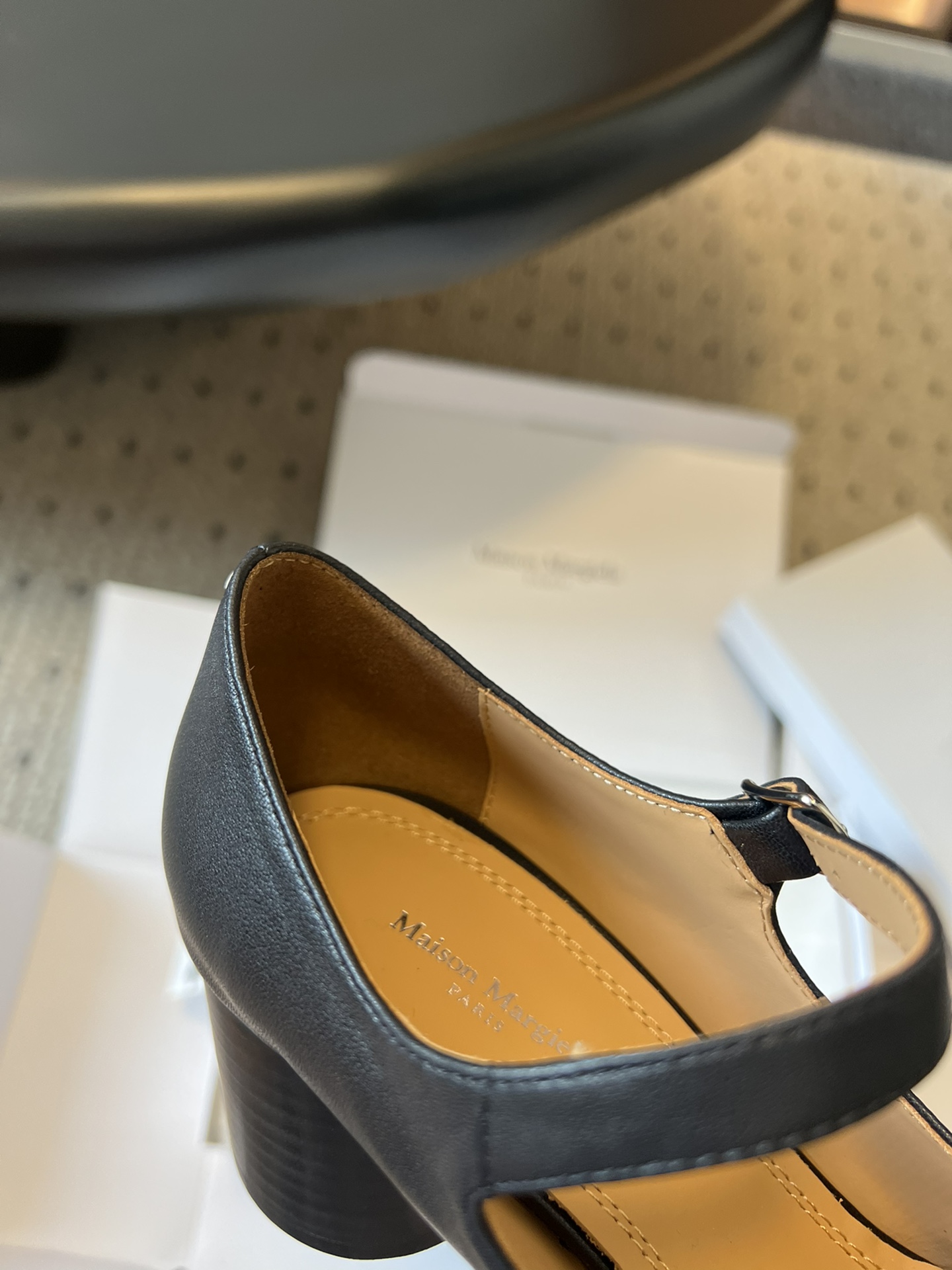 NIGO Maison Margiela Women's Spring/Fall Fashion Classic Round Toe Slip On Solid Color Leather Chunky Heel Mary Jane Split Toe Shoes #nigo78646